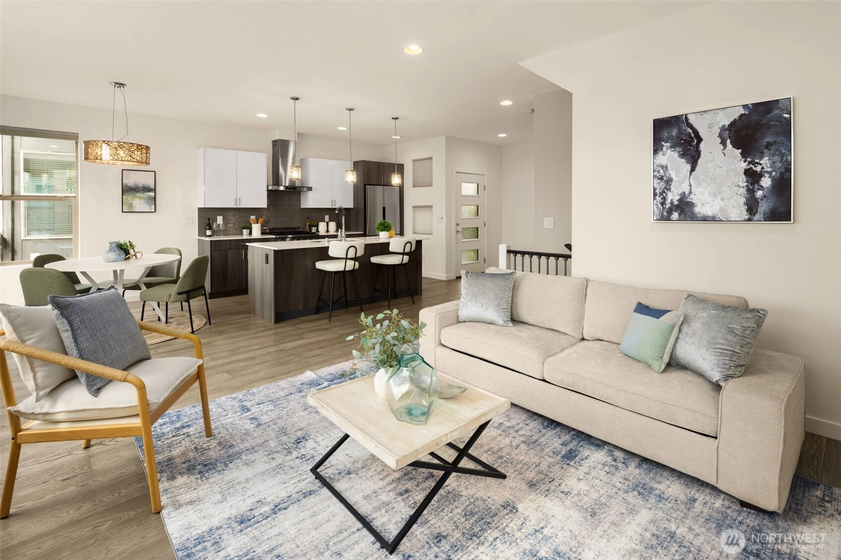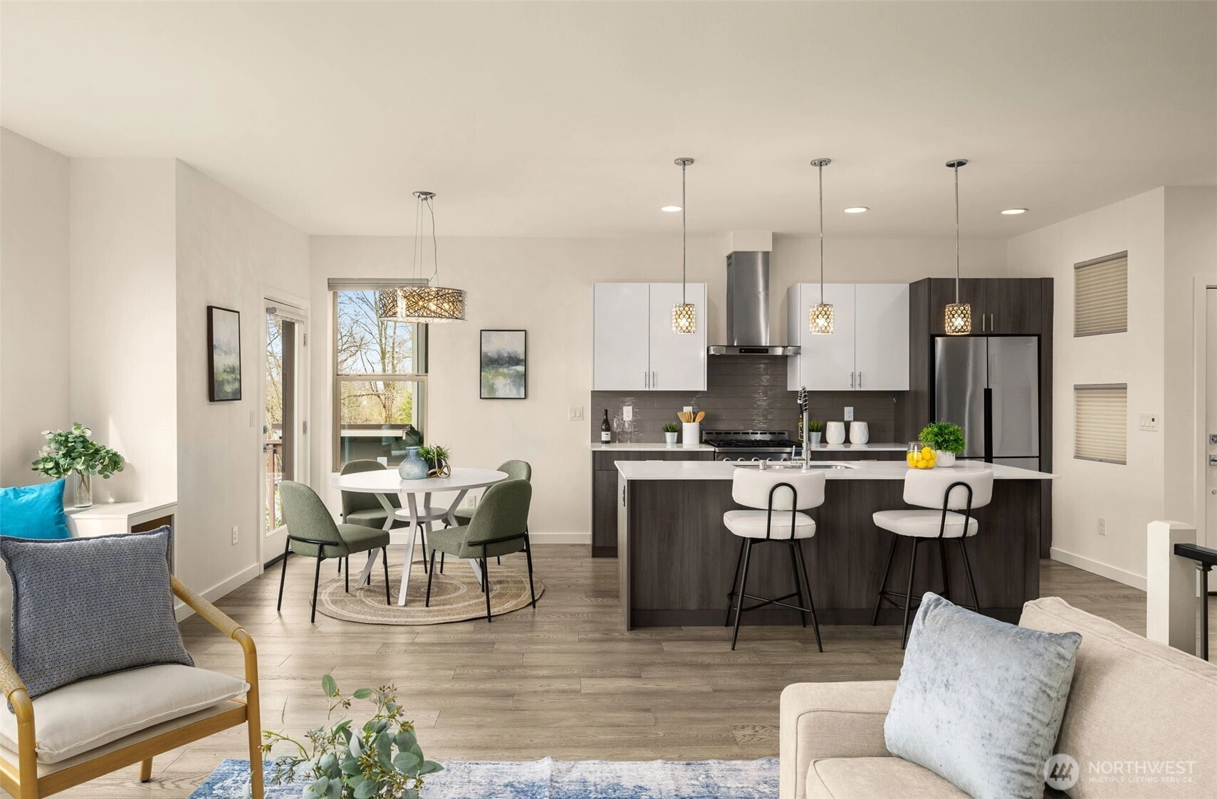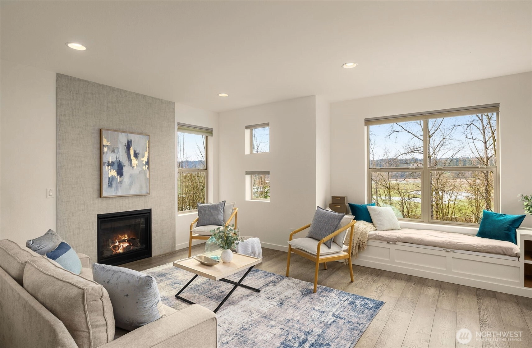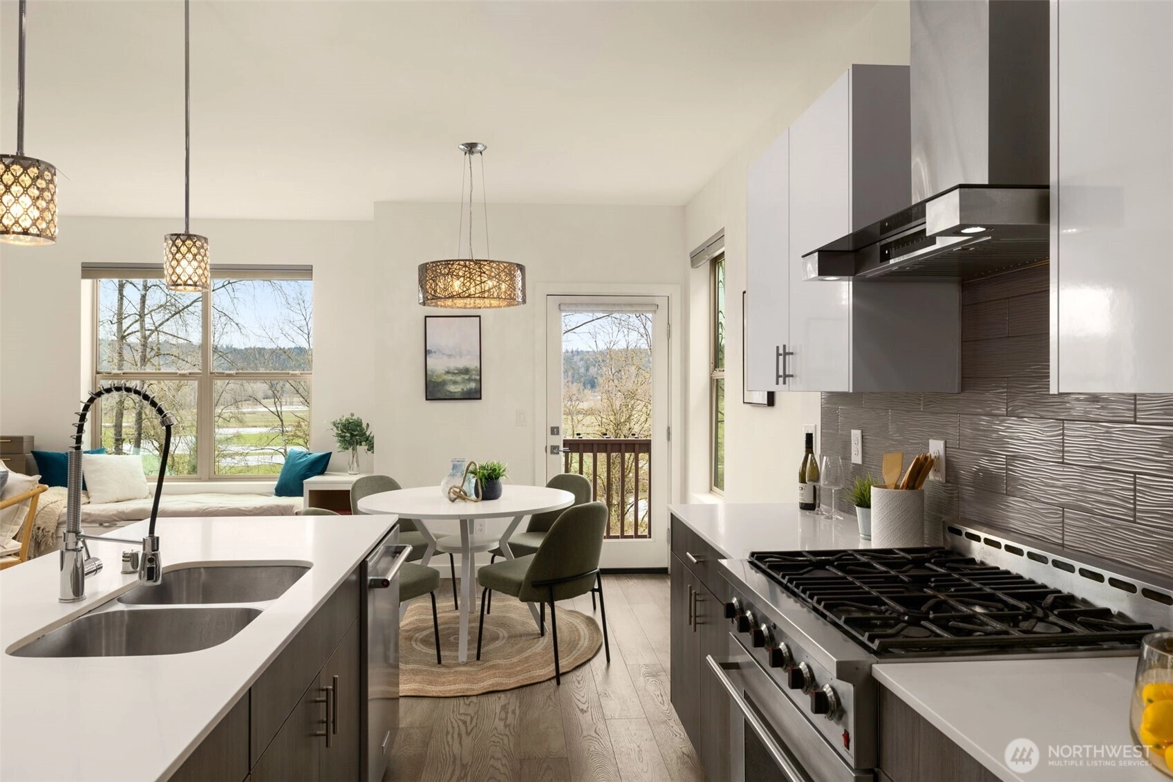 Set in the heart of Cherry Valley Village, this beautifully refreshed home blends modern design with scenic views of the Snoqualmie Valley. Fresh interior paint creates a bright, inviting atmosphere, complementing an open-concept layout with high ceilings, expansive windows, and a covered deck ideal for taking in sunset views. Thoughtfully designed for flexibility, the home features a private lower-level wing with its own living space, bedroom, and full bath. Enjoy close proximity to downtown Duvall, commuter options, and an abundance of nearby trails and parks.