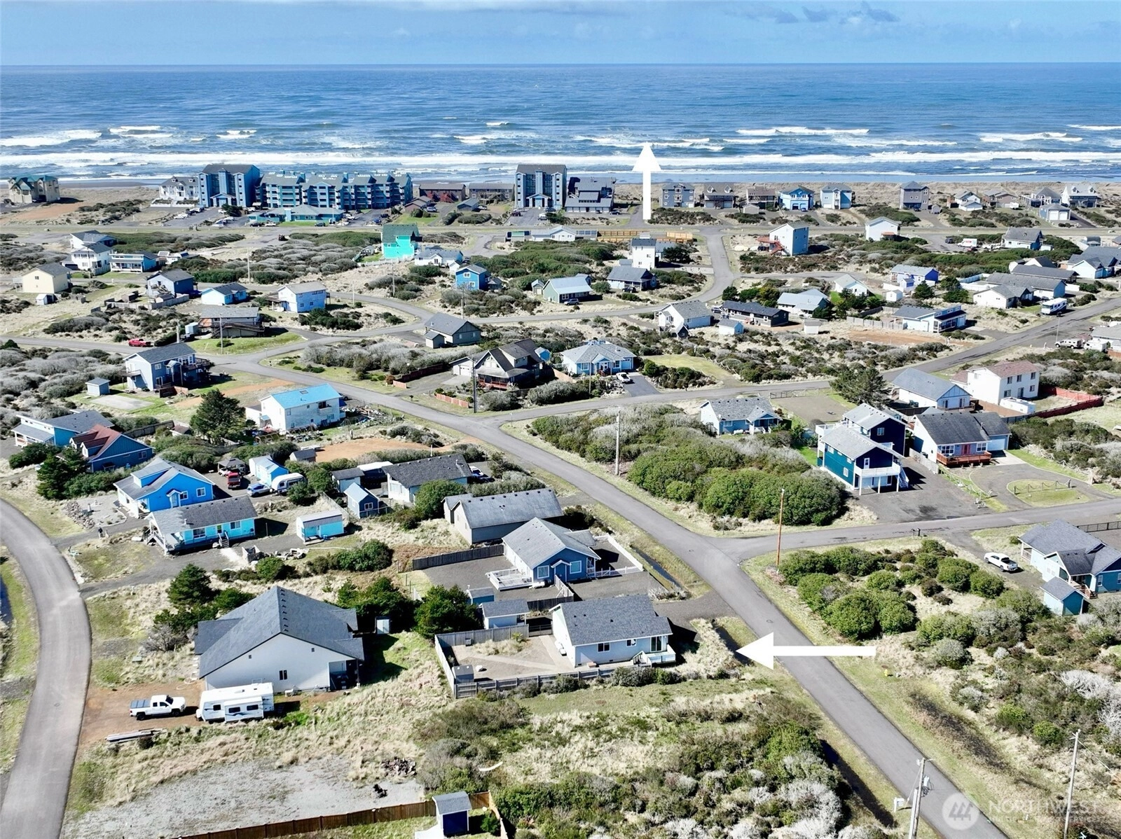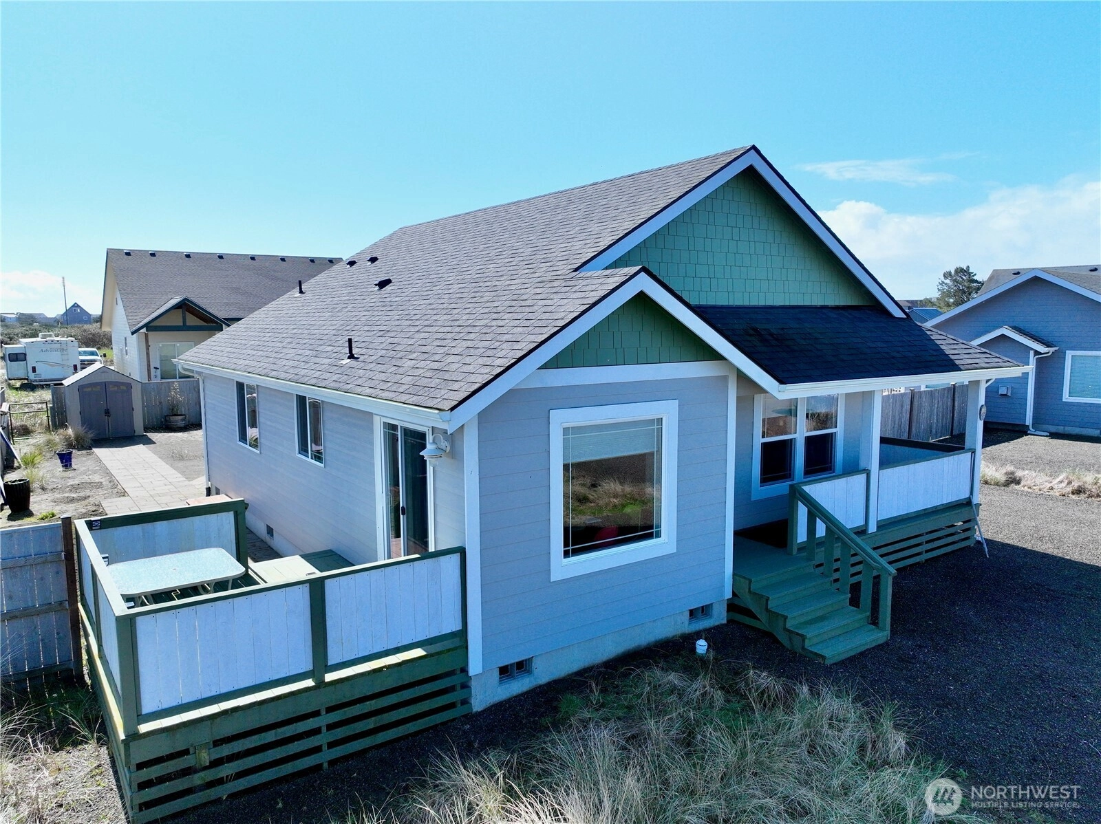Like-new custom bungalow at the North jetty of Ocean Shores, Washington! Fabulous location near ocean beach access and just a short distance to dining, park/pool, or canal front park with boat launch into 23 miles of fresh interconnecting lakes and canals to explore. Low maintenance 7,540 sf parcel with partially fenced back yard and shed for your tools and toys. In this 1,076 sf 2BR 1.75BA plan built by A&J Precision Homes, you are presented with luxurious finishes, premium vinyl waterproof flooring, and quality craftsmanship throughout. Enter into the sun-drenched great room featuring vaulted ceilings and a propane fireplace with custom stone surround and live-edge mantle. The chef’s kitchen is equipped with plenty of prep and storage, a propane cooking stove/oven, stainless appliances and island/breakfast bar. STONE SLAB counters throughout. Primary en-suite with 3/4 bathroom. Mud/utility room with door to the side driveway. A second sunny bedroom and full bathroom off of the hallway complete the plan. Propane tankless hot water. H2O filter system. Hot/Cold exterior spigot. 10x12 Shed with electricity. In the ocean Shores community club-enjoy the Bayshore clubhouse and several club-owned parks scattered about the city. In addition, there are many more city-owned parks around town, including waterfront spaces with ball fields, cabanas, fishing docks and boat launches into lakes and canals. Start making beach memories in this beautiful jetty residence today!