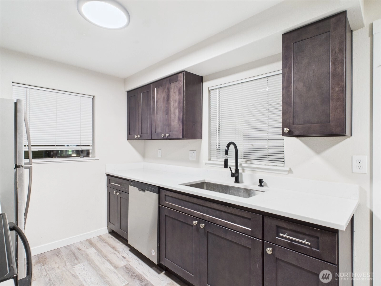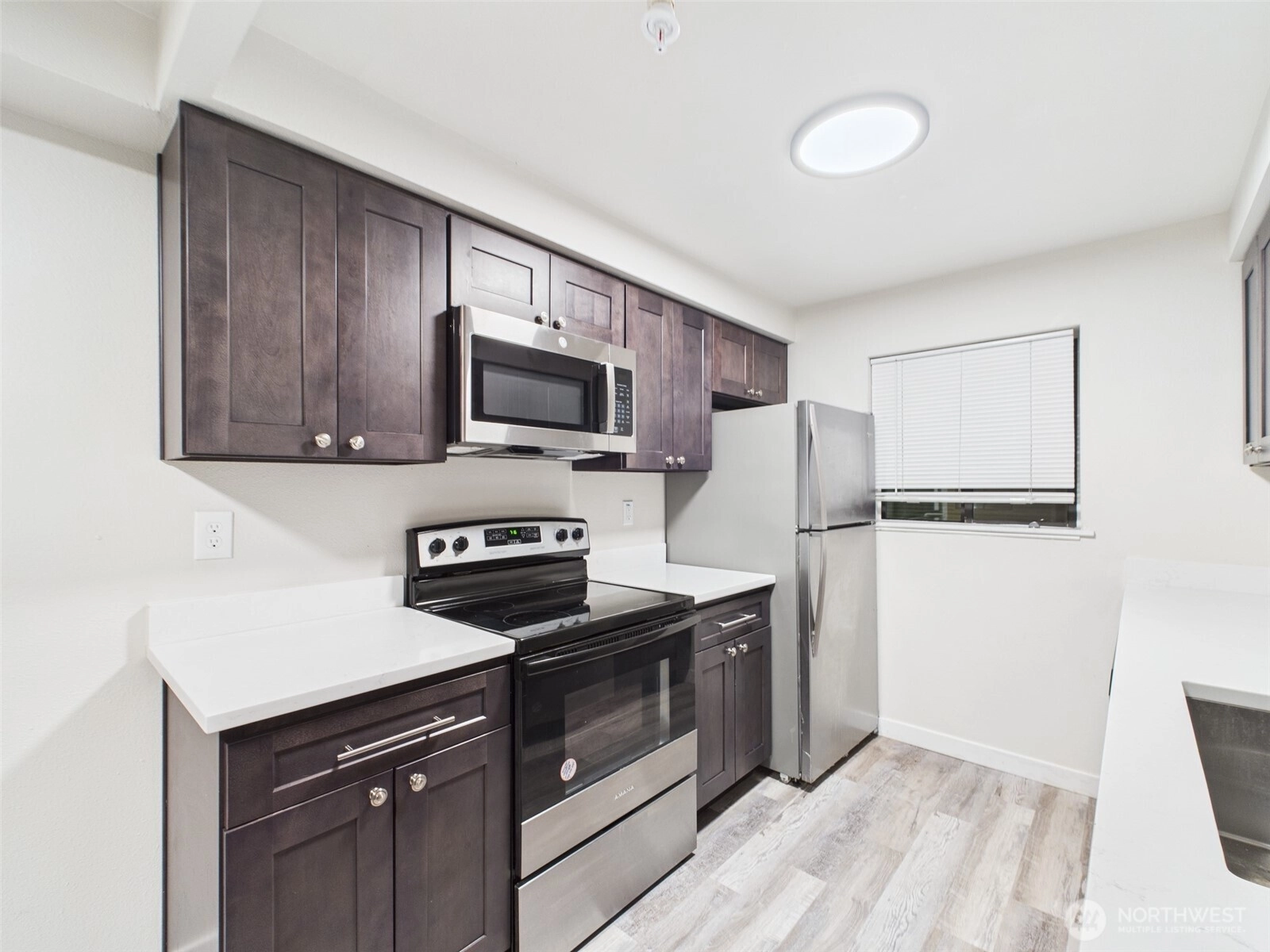 QUALIFIED BUYERS MAY RECEIVE UP TO A 1% LENDER CREDIT THAT CAN BE APPLIED TOWARD A RATE BUYDOWN OR CLOSING COSTS, SUBJECT TO LOAN APPROVAL AND PROGRAM GUIDELINES. remodeled 3 bed 2 bath condo showcasing sweeping views of Puget Sound and the Olympic Mountains. The spacious living room offers a cozy wood-burning fireplace and a picture window framing stunning water views, flowing seamlessly into the updated kitchen with soft-close cabinetry, stainless steel appliances, and quartz countertops. The primary suite includes an updated full bath for added comfort and privacy. Enjoy breathtaking sunsets from the expansive west-facing balcony deck. Additional features include a private storage shed and two-car two-car tandem parking. Ideally located just minutes from Redondo Beach and boardwalk, approx 15 minutes to Sea-Tac, with easy access to bus lines, shopping, dining and more.