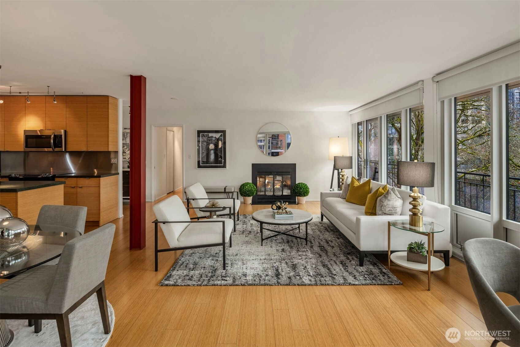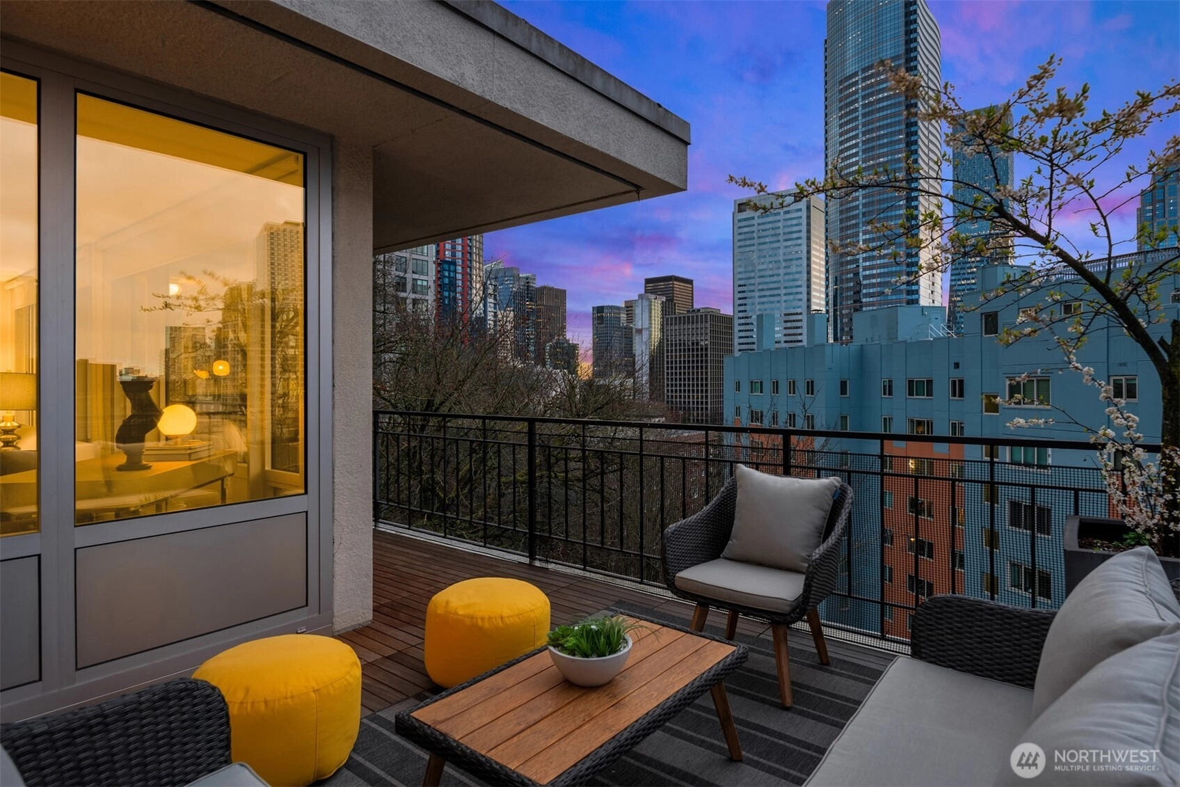 Exquisite mid-century penthouse condo in one of city’s most historic buildings. Expansive windows frame captivating views of skyline. Design elements offer sophisticated urban living with period touches. Open design layout ensures a seamless flow of space while maximizing natural light. Bamboo hardwoods + stylish fireplace add character. Totally rejuvenated kitchen sets stage for culinary excellence with newer stainless appliances, quartz counters + custom cabinets. Laundry area with pantry storage + wine fridge. Expand entertainment options with large, enclosed sunroom + wraparound deck. Primary bedroom has ensuite, walk-in closet + deck access. Parking + easy access to downtown, Cap Hill.