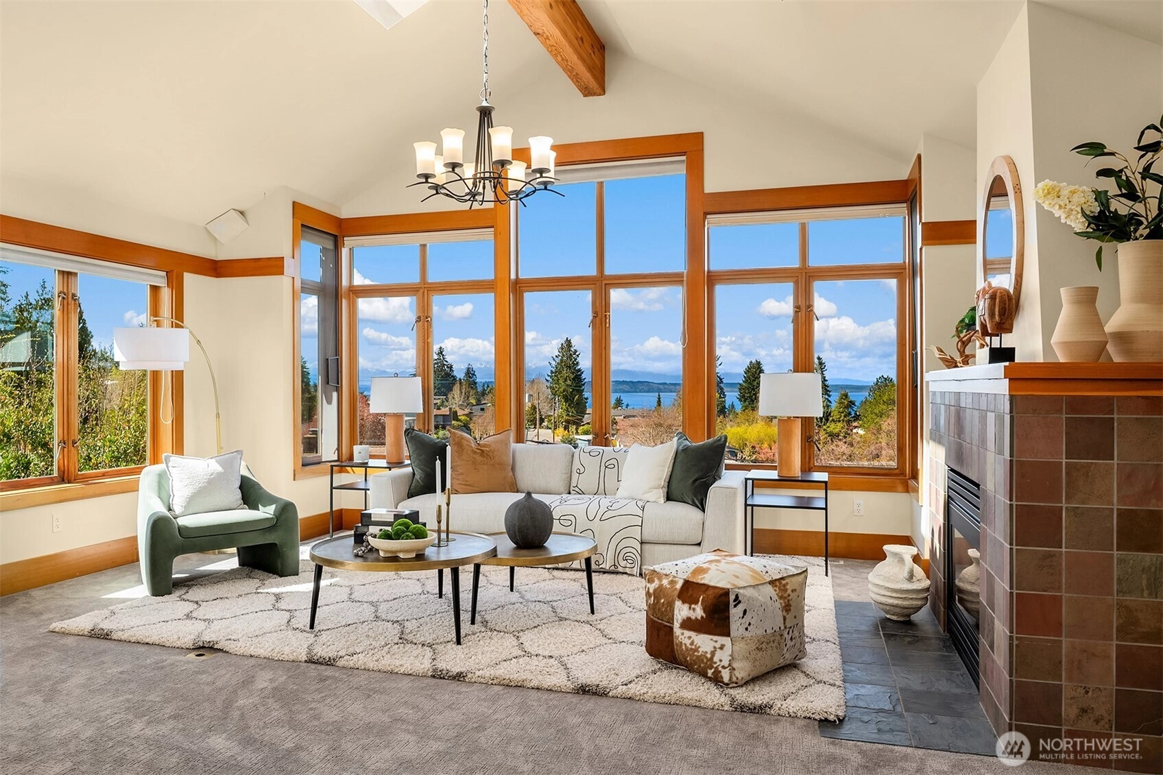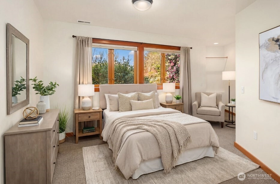 Introducing 1105 Daley Place, a stately Northwest contemporary home in the coveted Edmonds Bowl with sweeping, unobstructed views of Puget Sound and the Olympic Mountains. Framed by soaring 13-foot ceilings and refined architectural detailing, the home is designed for both presence and livability, with a seamless flow from the great room and kitchen to a main-floor primary suite and expansive view deck, as well as a rooftop deck offering panoramic vistas. Oak hardwood floors, abundant VG Fir finishes, and craftsman-inspired stair detailing introduce warmth and texture, balancing the home’s strong architectural lines. The lower level expands the living experience with a generous family room, flexible bedrooms or office spaces, and a 704-square-foot attached one-bedroom ADU with private access—well suited for guests or extended living space. Built in 1999, the home includes a 2-car garage and approximately $185,000 in thoughtful upgrades completed within the past two years. Below, the property reveals a rare and tranquil landscape: a private creek and a curated, Zen-inspired native garden designed for year-round beauty and ecological harmony. Layers of texture, seasonal color, and the gentle sound of flowing water create a setting that feels removed from the everyday. This is more than a view home. It is a sanctuary above the Bowl—architecturally distinctive, deeply connected to nature, and truly a work of art.