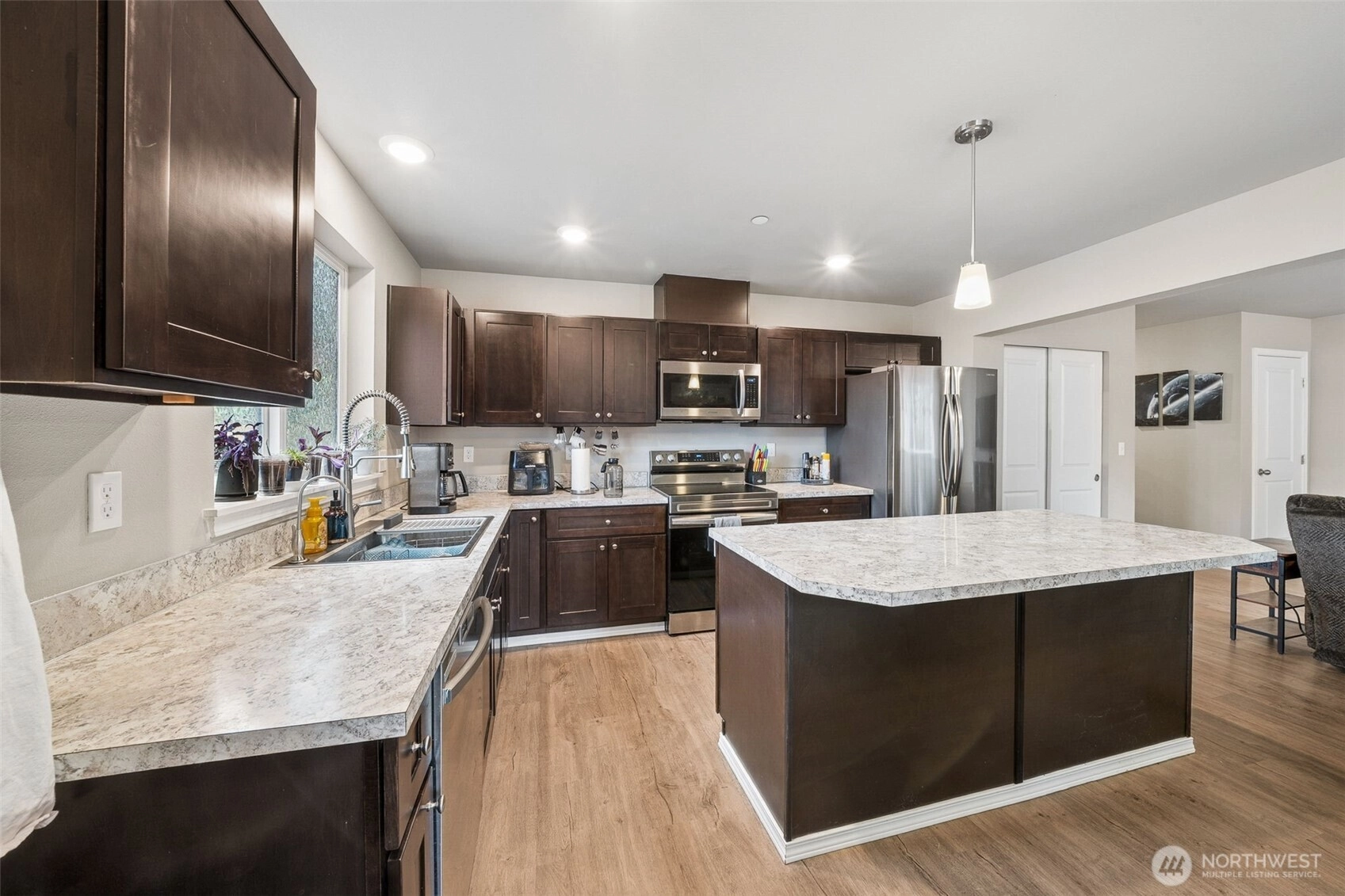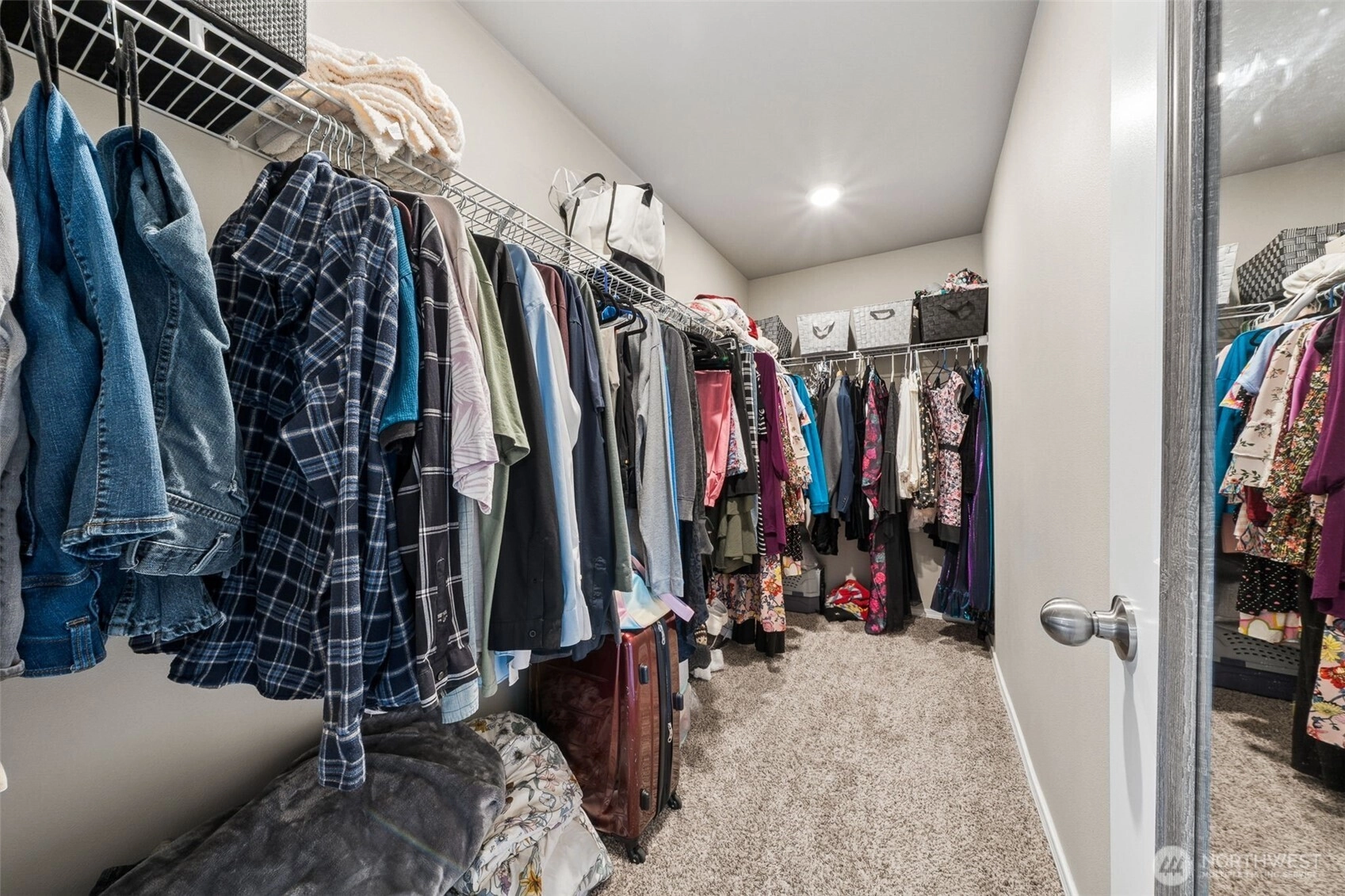 Beautiful home on large lot on dead end street. Featuring 3 large bedrooms, primary suite with double door entry & 4 piece bath plus large walk-in closet. Home is very bright with lots of light & is an open floor plan. Enjoy the elegant stainless steel appliances in kitchen. Step out the back sliding door to a private backyard. Small greenbelt in back for added privacy plus plenty of space for a garden area. Upper level features the 3 large bedrooms and an over-sized laundry room complete with counter to make doing the laundry much easier! Home also offers solar panels that will help with electricity cost and in the garage there is a Tesla charging station for your electric car! Plenty of room for RV parking too. This community is close to shopping, schools, and JBLM. Enjoy the large community park too!