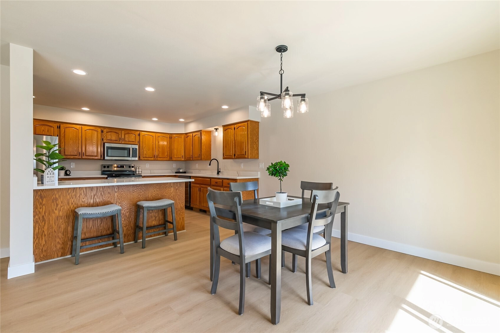 Beautifully remodeled 2+ bedroom, 2 bath condo offering 1,749 sq. ft. of single-level living that feels like a standalone home. Features include an attached 2-car garage, private patio with territorial views, and a spacious open-concept layout. Enjoy a stunning new kitchen with quartz countertops, stainless appliances, and eat-in peninsula. All-new LVP flooring, carpet, and coordinated LED lighting throughout. The primary suite impresses with a large walk-in closet, dual vanity, and custom tile tub surround. Versatile den/office could serve as a 3rd bedroom. Prime Lynden location near schools and Edaleen—exceptional value! Lender credit up to $10,000 for using preferred lender!