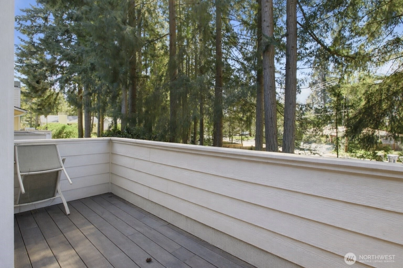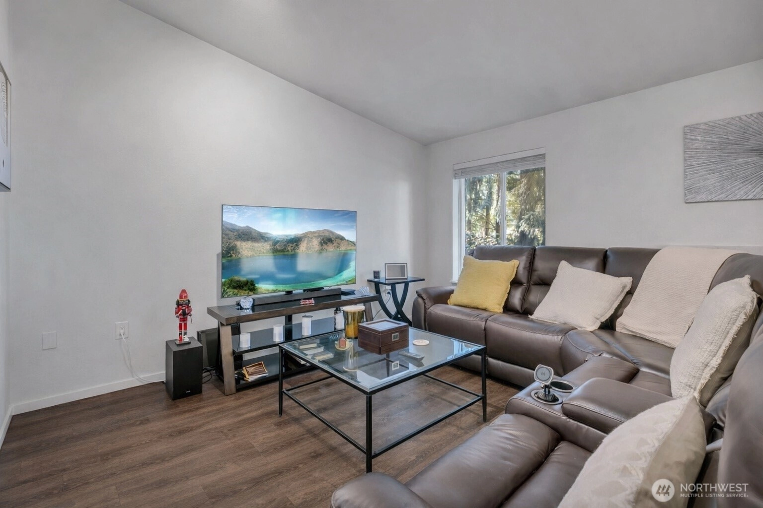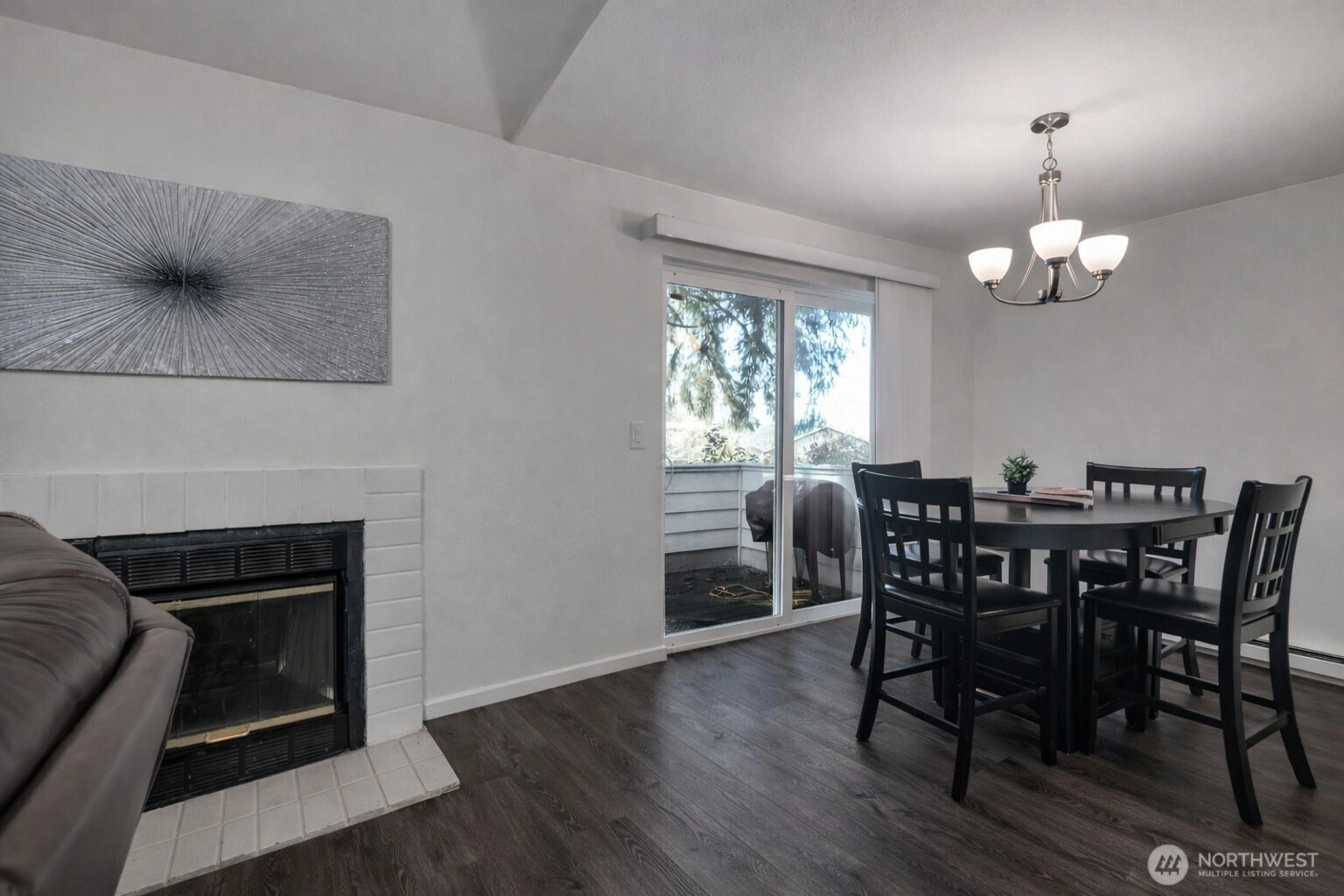LOCATION, LOCATION, LOCATION!! Elevated living in the heart of University Place! This top-floor, quiet corner-unit condo offers 2 bedrooms, 2 baths, and 2 parking spaces (1-car garage + additional reserved space). Vaulted ceilings and abundant natural light create a bright, open feel, overlooking trees that enhance the peaceful setting and mountain views. Renovated in 2019 with updated flooring, fresh paint, lighting, appliances, and a remodeled bath. Recent exterior updates include new paint, roof (2023), and double-pane windows for improved efficiency and noise reduction. The open-concept layout features a stainless steel kitchen (refrigerator included) flowing into the living and dining area with a cozy wood-burning fireplace. Enjoy your private deck—perfect for relaxing or entertaining while taking in scenic surroundings. Single-level living with both bedrooms and baths on the main floor, plus in-unit laundry with washer/dryer included. Parking includes one space in a common garage and one uncovered space. HOA covers water, sewer, garbage, and common area maintenance for low-maintenance living. Located less than 5 minutes to Chambers Bay Golf Course & Park with waterfront trails, playgrounds, picnic areas, and stunning views. Close to dining, shopping, top-rated University Place schools, Tacoma, and JBLM—an exceptional opportunity!