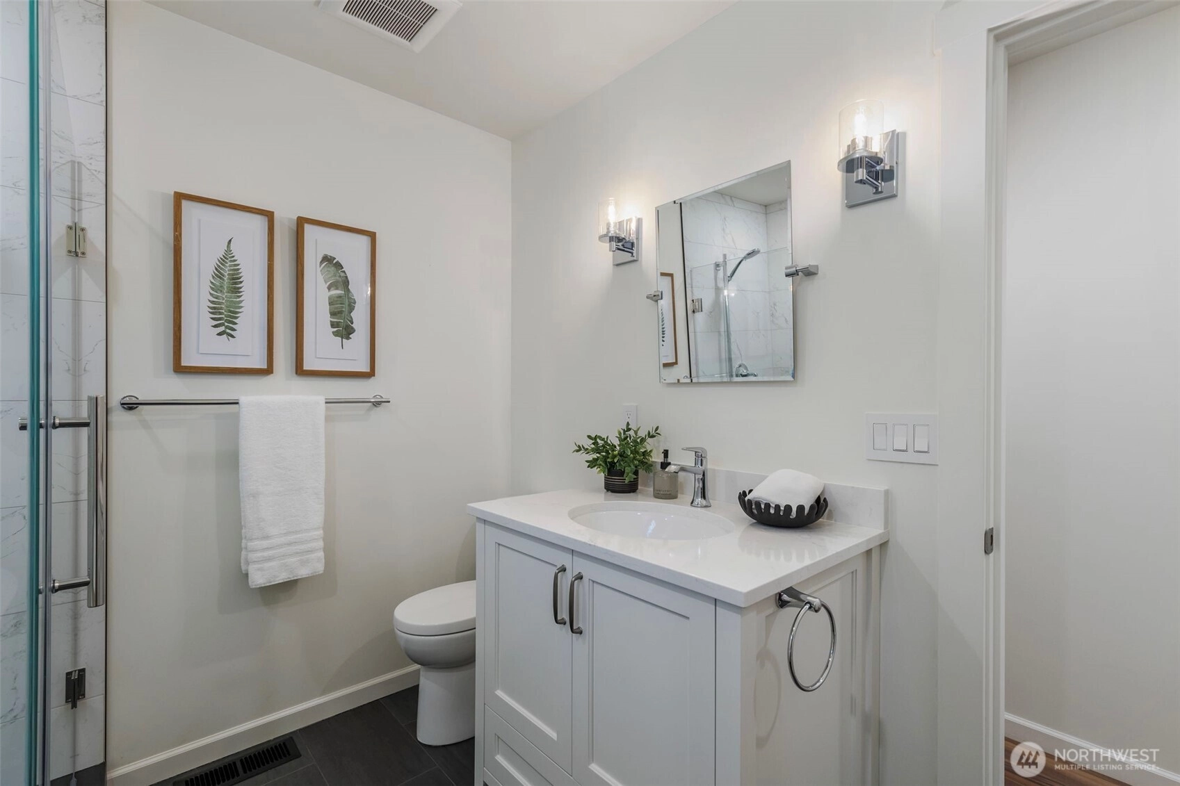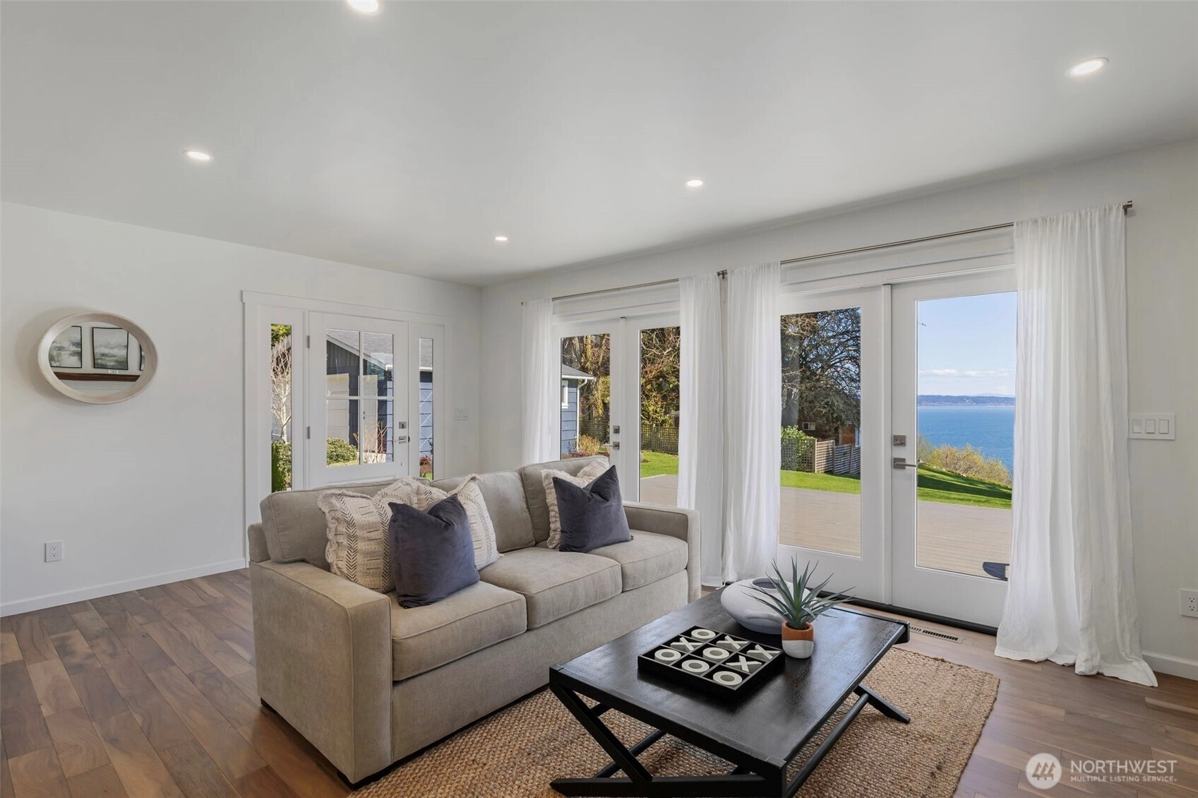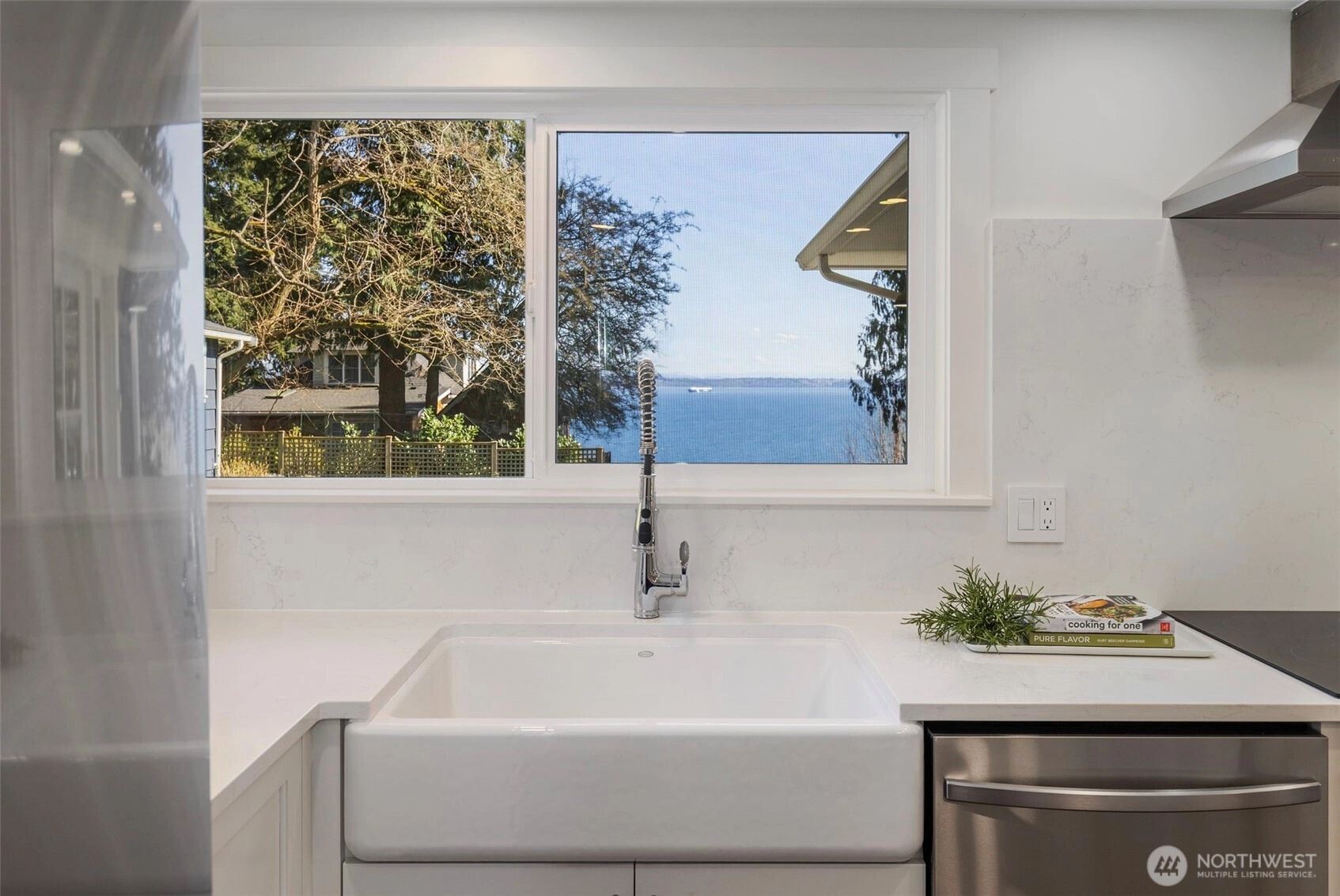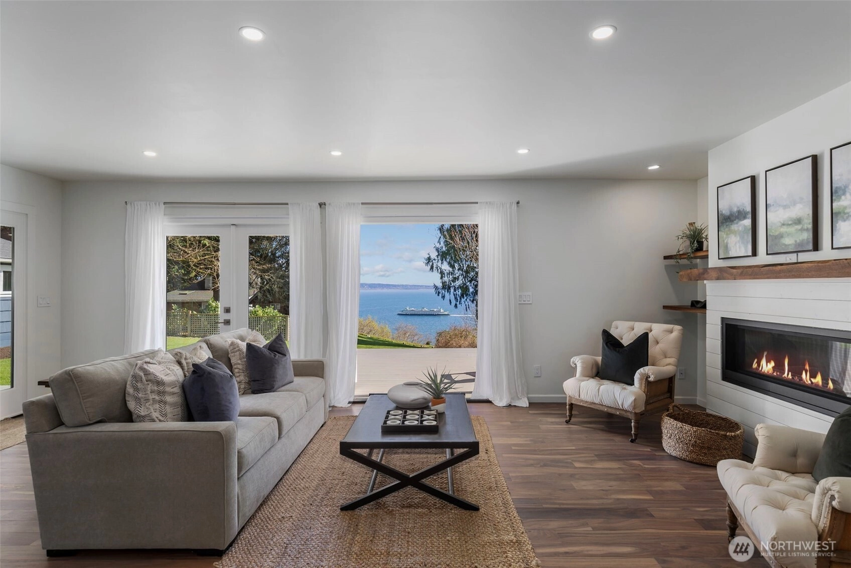 High above the shoreline, where the horizon stretches to the Cascades, this enchanting Kingston retreat offers a front-row seat to Mt. Rainier and Puget Sound. From sunrises over the peaks to sailboats and ferries crossing the water, every day here unfolds like a work of art. Located just moments from the Kingston Ferry Terminal, this private sanctuary offers the perfect blend of coastal tranquility and an easy commute to Edmonds or Seattle. Impeccably renovated to the studs in 2019/2020, the home features all-new electrical, plumbing, windows, and flooring. Loads of natural light and designed to allow the breeze to cool in the summer. The kitchen boasts Samsung appliances, walk-in pantry, matching custom cabinetry and easy-access deep drawers. The Primary Suite is a private sanctuary featuring a walk-in closet and an en-suite with custom cabinets and a spacious shower. A classic slipper bath anchors the main bathroom, while the rest of the home offers flexible spaces for guests or a home office. For the active Washington lifestyle, the mudroom features a custom dog bath with Kohler fixtures and hot/cold water—perfect for sandy paws or muddy hiking boots. Abundant storage throughout and a fully finished daylight lower level offer endless possibilities. Outside, generous grounds and fresh salt air create a sanctuary just minutes from the Fast Ferry and the charm of downtown Kingston. Modern luxury meets Pacific Northwest soul. Tell your Broker you want to see this today!
