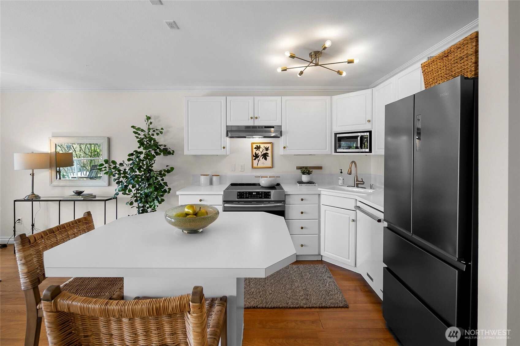 Tucked along the shoreline in Madison Park, Canterbury Shores is the kind of address insiders whisper about; fully refreshed, quietly exceptional, and offering a level of waterfront living that rarely surfaces at this price point. Here, mornings begin with coffee on your west-facing balcony overlooking Lake Washington and the University skyline, and afternoons slip easily into dockside lounging or sun-soaked afternoons by the pool. It lives like a private resort, yet sits just moments from the heart of the village-fresh flowers from Bert’s, a quick espresso, or dinner with friends all within an easy stroll. Inside, the home is open and light-filled with thoughtful updates and seamless indoor-outdoor flow. The building itself has already done the heavy lifting, and has been comprehensively renovated (no assessments here!) with a strong, well-managed HOA, offering residents a gym, lounge, onsite management. Eagles overhead, water at your feet, and the city within reach, this is Madison Park at its most understated and compelling. Includes dedicated parking, in-unit laundry, generous storage, and effortless access to both Seattle and Bellevue.