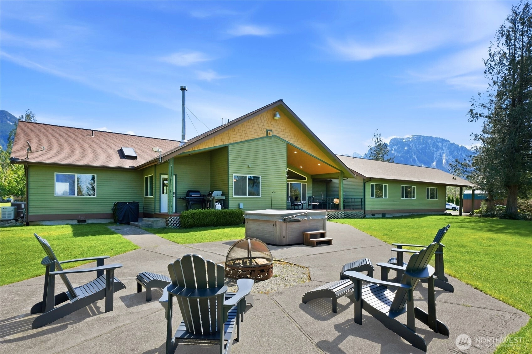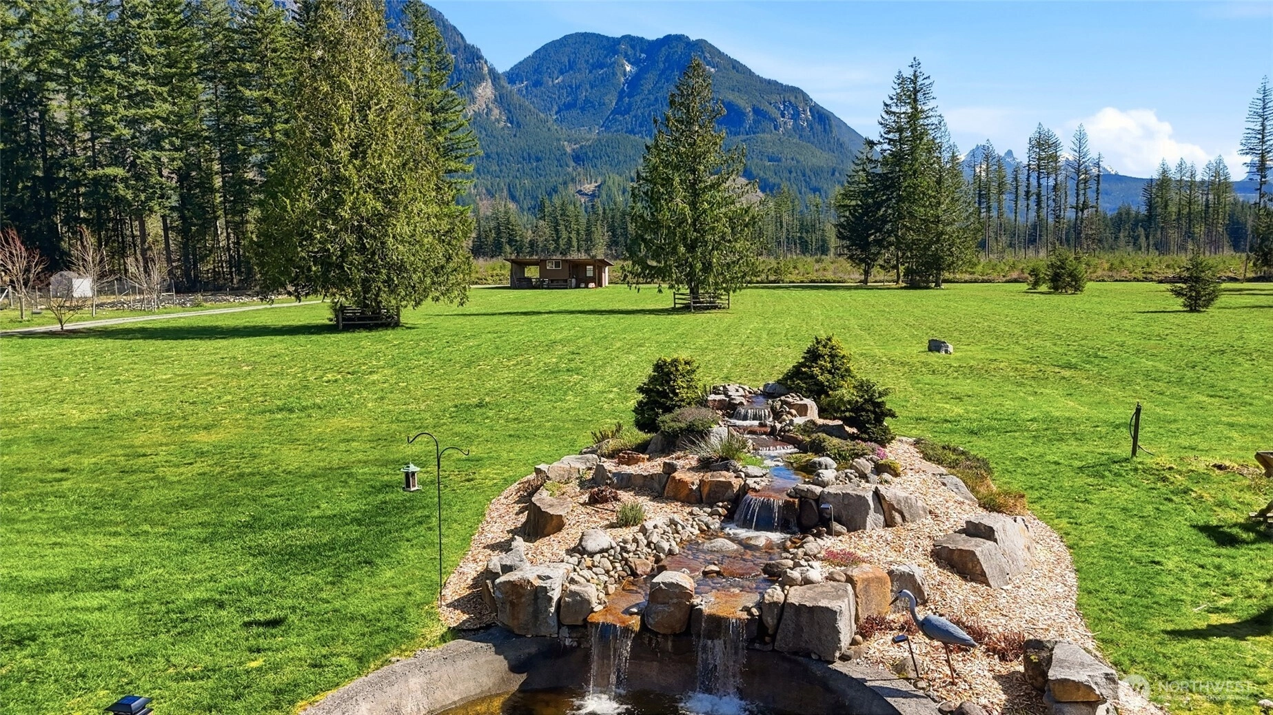 Discover your dream sanctuary in this exquisite 5-acre estate at the foot of the Cascade Mountains where you'll enjoy the peace, tranquility & breathtaking views of the Olympic Mountains. This beautifully crafted ranch home boasts over 2,700 square feet of living space adorned with rustic charm, featuring stunning fir floors & soaring vaulted ceilings. All interior mill work including the floors are sourced from the property. With 4 spacious bedrooms and 2.75 elegant bathrooms, including a luxurious spa bath, this home ensures comfort & style at every turn. Recent upgrades enhance this home with all-new appliances, newer water heater, furnace & heat pump for optimal climate control. Enjoy the peace of mind that comes with a whole house generator, surge suppressor & auto cut-off overload switches. Step outside to enjoy the serene surroundings this private retreat offers with zero light pollution, allowing you to fully appreciate the stars at night & connect with nature while relaxing in the hot tub, enjoy the sounds of the pond & waterfall that is home to 4 large Koi & 30 plus other goldfish varieties or sitting around the firepit under the stars. Fence the front pastures & you have a great place for horses or goats. The Goldbar area is known for its proximity & variety of hiking, fishing, camping, the Skykomish River & Stevens Pass. Don’t miss this opportunity to embrace the serene lifestyle in a home that perfectly blends modern comfort with natural beauty!