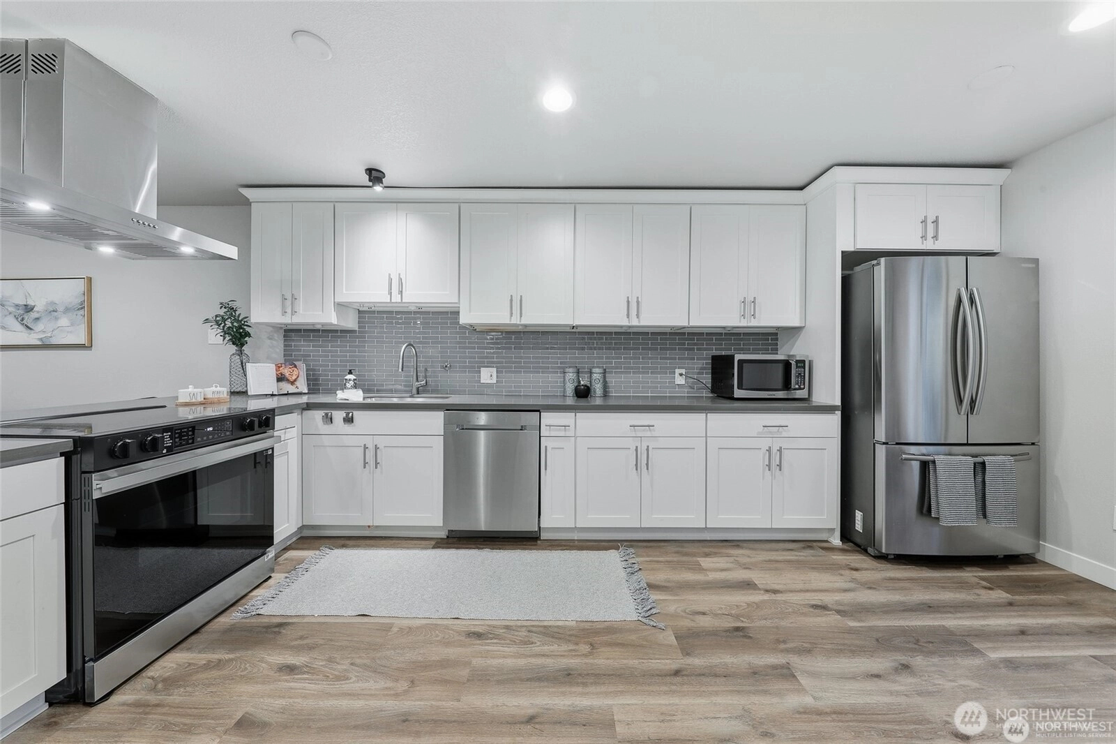 Welcome Home to Your Urban Retreat! Discover a perfect blend of comfort and convenience in this beautifully remodeled 2-bedroom home, ideally located just steps from light rail, shops, dining, and every amenity imaginable. The main floor welcomes you with an open, spacious layout featuring an oversized kitchen, inviting living and dining areas, and a cozy fireplace—perfect for relaxing or entertaining. Step out onto your private balcony and enjoy peaceful greenbelt views, offering a sense of serenity in the heart of the city. Upstairs, unwind in the vaulted primary suite, accompanied by a generous guest bedroom and full bath. All this, just minutes from downtown Seattle and the best of the Pacific Northwest lifestyle.