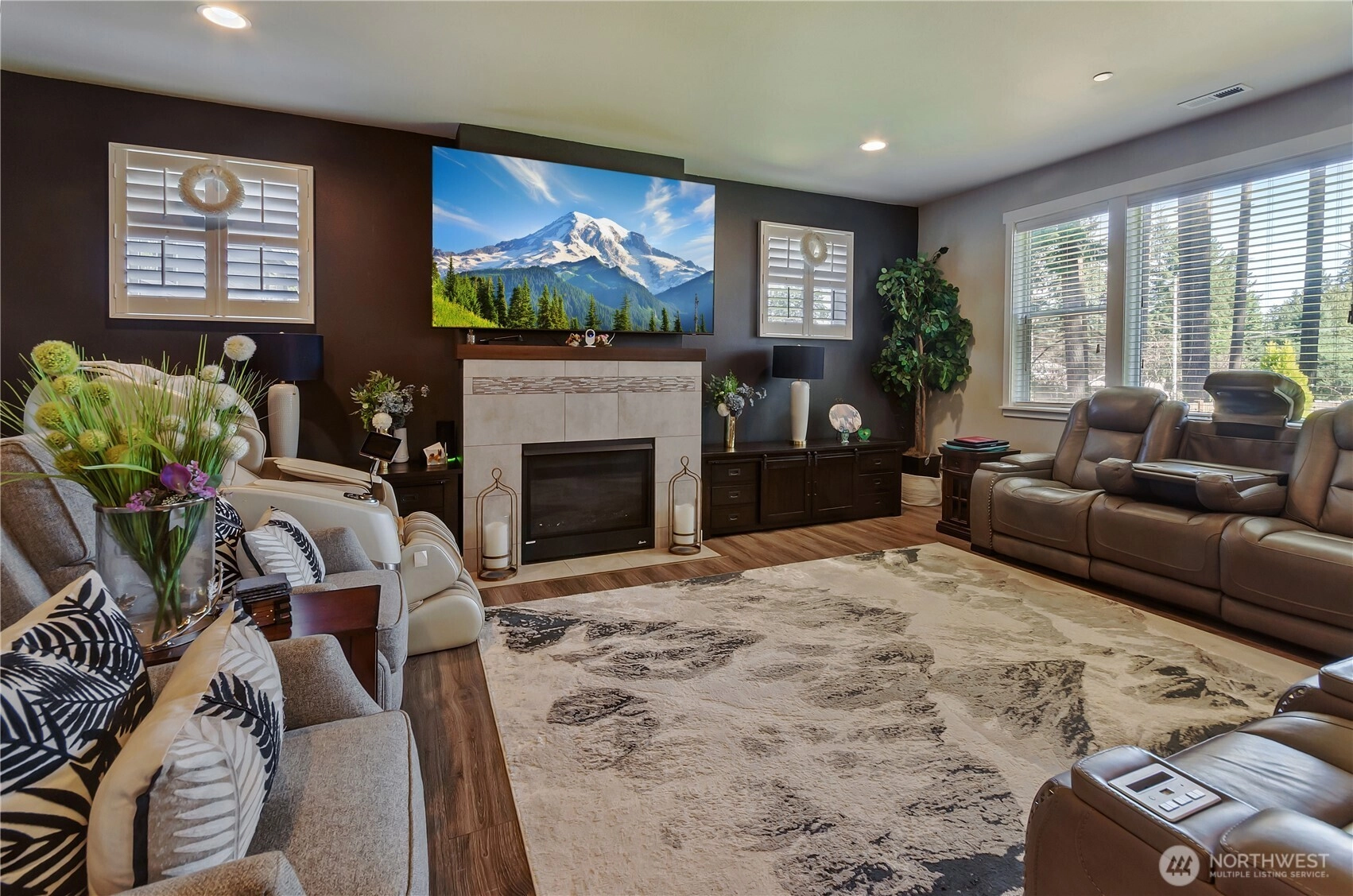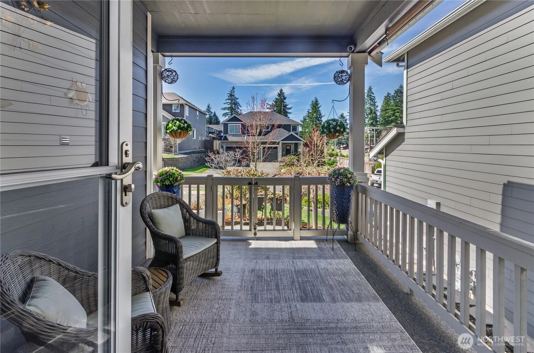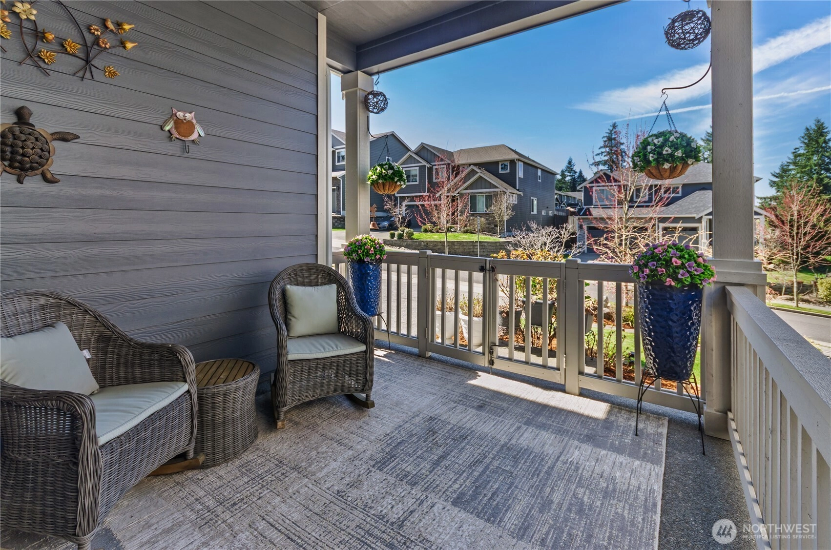 Outstanding home with ample amenities by Award winning Builder of the year- Rush Residential. Starting downstairs there are soaring ceilings, ample windows, gleaming laminate hardwoods, designer paint selections and a kitchen space built for entertaining with stainless appliances, quartz counters and full height tile backsplash. The outdoor living space is covered and includes fireplace, covered hot tub and firepit. There are 4 Bedrooms upstairs and a den/office on the main. One bedroom could be considered a bonus room but also has a closet. The primary bedroom suite is spacious and includes stand alone tub, tile shower with glass surround and tile flooring. To top it off there is a 3 car garage, permanent exterior lighting with every color combination you can imagine and the HOA dues include front yard maintenance.