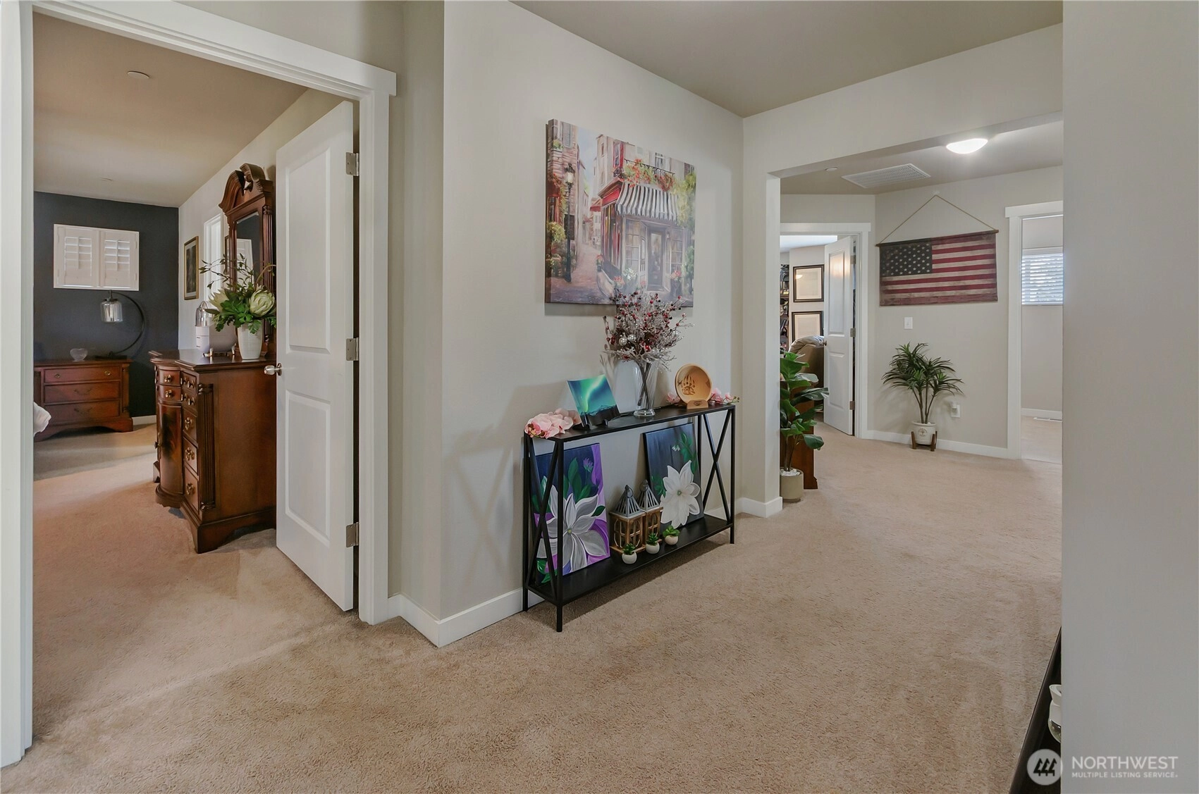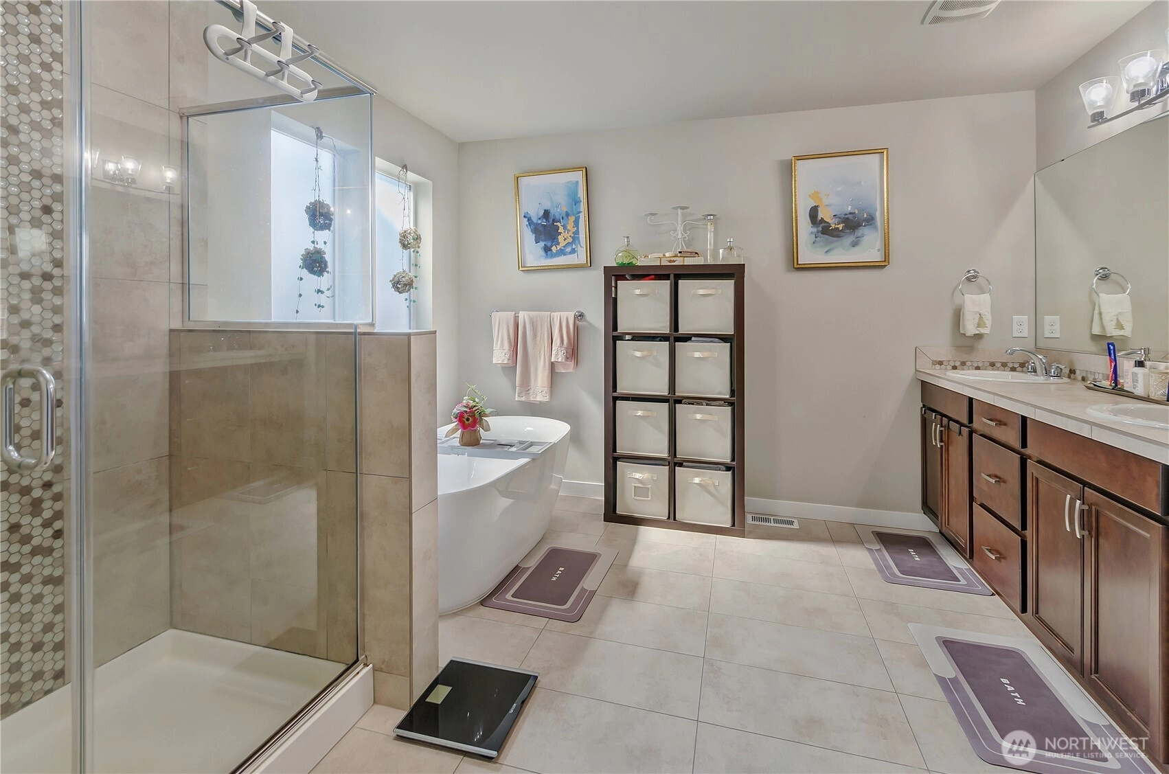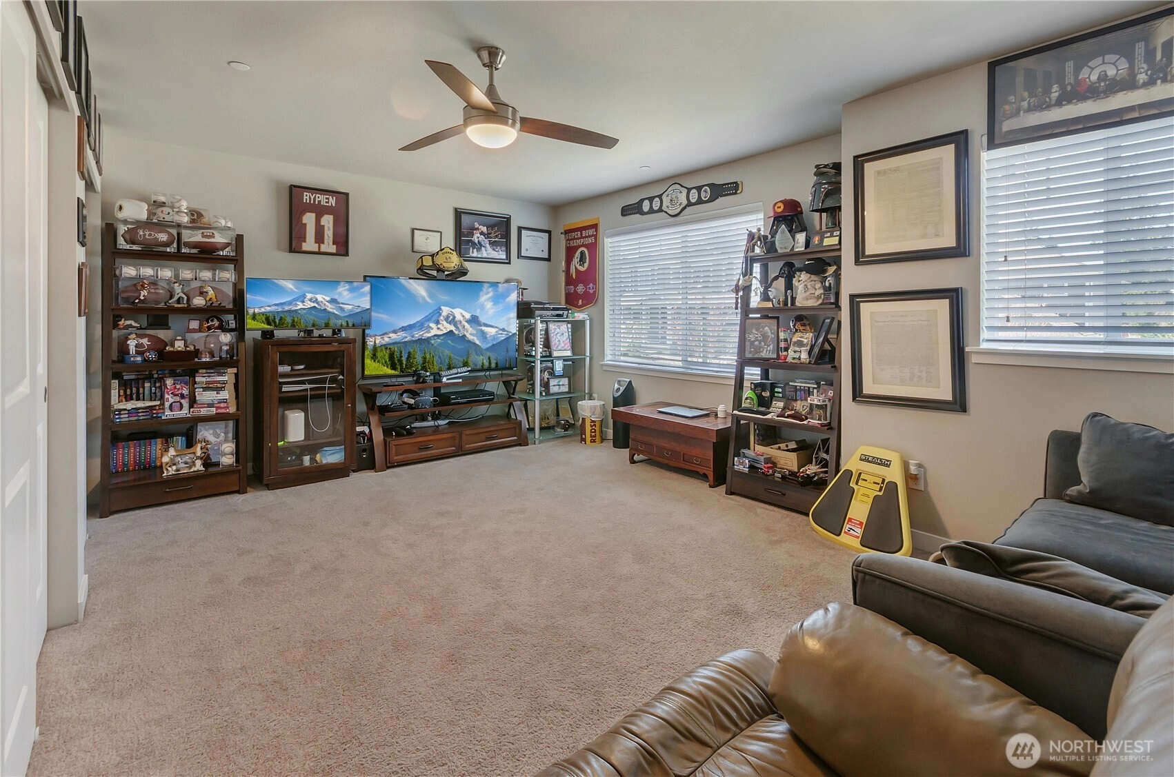 Outstanding home with ample amenities by Award winning Builder of the year- Rush Residential. Starting downstairs there are soaring ceilings, ample windows, gleaming laminate hardwoods, designer paint selections and a kitchen space built for entertaining with stainless appliances, quartz counters and full height tile backsplash. The outdoor living space is covered and includes fireplace, covered hot tub and firepit. There are 4 Bedrooms upstairs and a den/office on the main. One bedroom could be considered a bonus room but also has a closet. The primary bedroom suite is spacious and includes stand alone tub, tile shower with glass surround and tile flooring. To top it off there is a 3 car garage, permanent exterior lighting with every color combination you can imagine and the HOA dues include front yard maintenance.