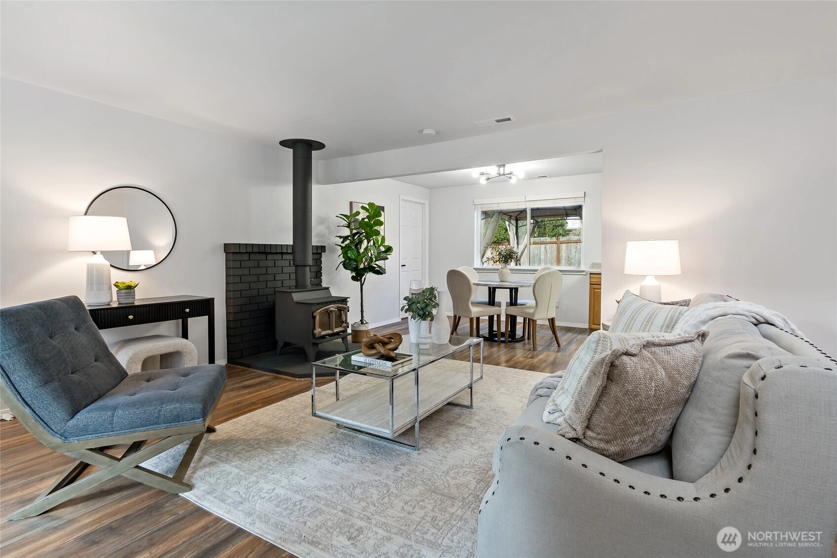 Beautifully updated home in the desirable Lake Forest community, offering residents access to the private Lake Forest neighborhood park—approximately 4.5 acres along the shores of Long Lake. This peaceful setting provides space for recreation, nature walks, and relaxing by the water, creating a unique lifestyle centered around outdoor living.The spacious home features 3 bedrooms and 2.5 bathrooms, including a main-level primary suite with an en-suite bath and walk-in closet for convenient single-level living. The light-filled layout offers flexible spaces on both the main and upper levels—ideal for a home office, hobbies, or guest areas. A cozy wood-burning fireplace adds warmth and comfort to the main living space.Enjoy seamless indoor-outdoor living with a fully fenced yard perfect for entertaining, pets, or gardening. The property also includes an attached 2-car garage and a detached shed, providing ample storage and functionality.Recent improvements include a new roof installed in 2026 with warranty and a new window package with a lifetime transferable warranty. The interior also features fresh paint and laminate flooring throughout, creating a bright and move-in-ready feel.Conveniently located near local amenities, shopping, and commuter routes, this is a fantastic opportunity to own a well-maintained home in the sought-after Lake Forest neighborhood.