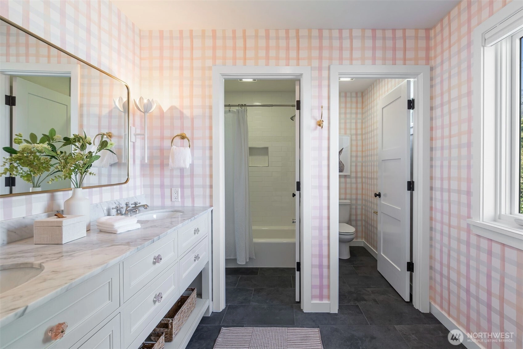 Effectively rebuilt in 2015 with every detail thoughtfully reimagined, this architecturally designed, turnkey Magnolia NW contemporary blends custom craftsmanship with unforgettable views. A dramatic two-story entry and walls of windows frame sweeping vistas of the city, Puget Sound, and Mt. Rainier—evolving from morning light to evening glow. Open-concept living flows seamlessly to a wraparound deck with built-in hot tub, creating a true indoor-outdoor experience ideal for both everyday living and effortless entertaining. The primary suite is a true escape, featuring vaulted ceilings, unobstructed 180° views from Mt. Baker to Mt. Rainier, a spa-inspired ensuite bath, and an oversized walk-in closet. With views from every upstairs bedroom and a private guest suite on the main level, this home offers a rare combination of design and function in one of Magnolia’s most sought-after settings. High-quality construction and designer finishes shine throughout, including fir windows, elegant lighting, curated wallpaper, Carrara marble countertops and tile, Wolf & Miele appliances, A/C, and an EV charger, while a recently completed landscape refresh with bluestone, native plantings, and automated lighting and irrigation is just coming into bloom. An oversized attached two-car garage with Garage Living built-ins and a ten-foot basketball hoop completes a home where thoughtful design, iconic views, and everyday livability come together seamlessly—prepare to be captivated.