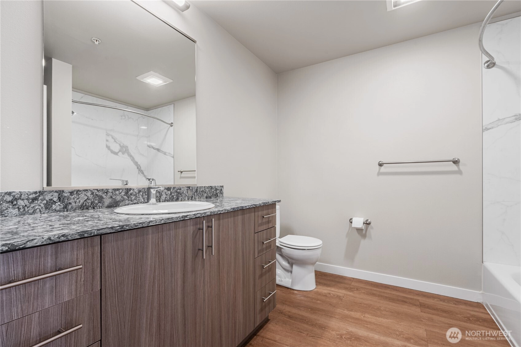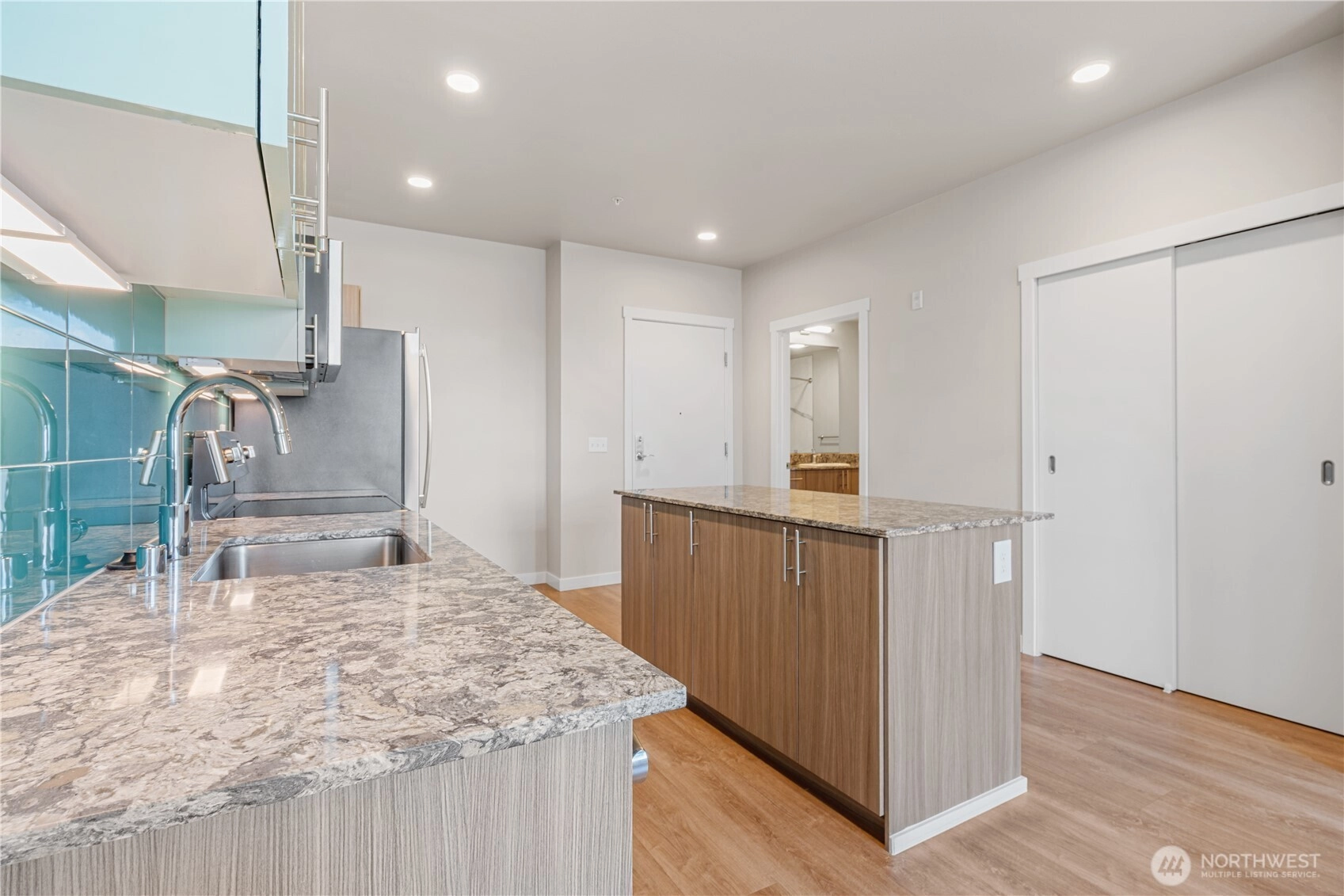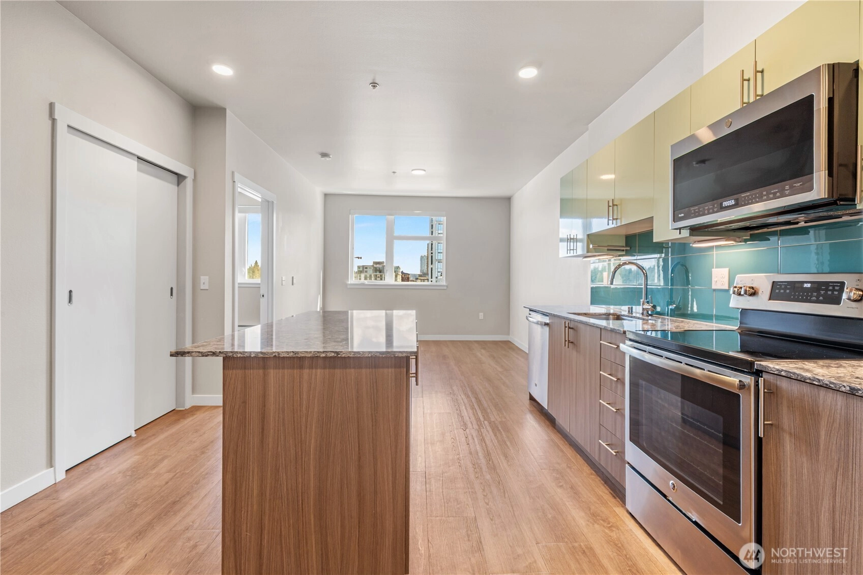 Experience DT Bellevue living at Mira Flats! Unbeatable location. Walking distance for shopping, dining and entertainments. All the best that Bellevue DT offers at your doorstep. The like-new one bedroom unit on top floor features open living space with contemporary cabinetry, quartz countertops and SS appliances, big walk in closet and convenient laundry in the unit. Secured garage parking with EV-charging station. One designated parking spot. Enjoy luxury amenities including concierge service, fully equipped club room, meeting room, free bike storage, dog wash station, courtyard, rooftop deck with fire pit, BBQ, pet relief area. No rental cap. Strong HOA.