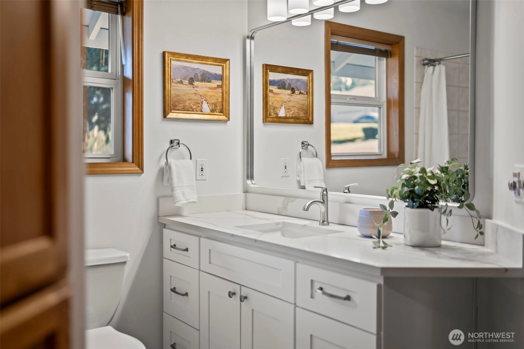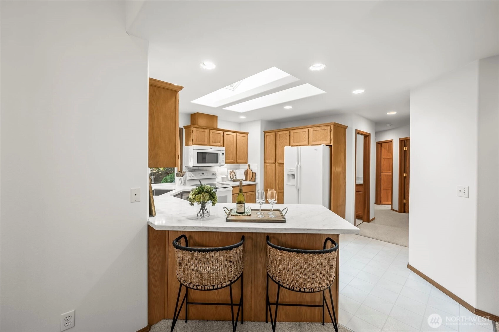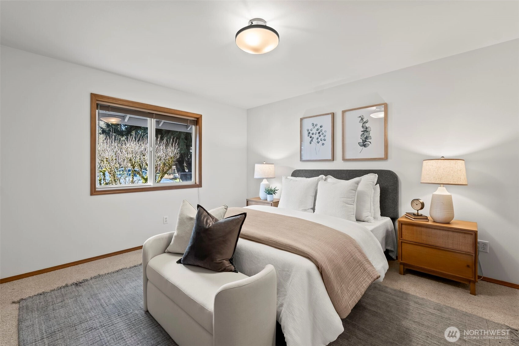 SELLER OFFERING $10,000 CREDIT | Experience the ultimate combination of privacy and convenience in this meticulously maintained, single-level University Place sanctuary. This light-filled, freshly-painted home features vaulted ceilings and new skylights that capture the Pacific Northwest glow during all four seasons. The functional floor plan includes an updated kitchen with quartz counters and a breakfast bar, flowing into sun-drenched living spaces. Relax in a primary suite with a walk-in closet and private ensuite bathroom. Use the versatile second bedroom as a home office or an inviting guest room, which also has a walk-in closet. Your private backyard is a gardener's dream, bordering a lush greenbelt for seclusion. Enjoy two patios - one covered for year-round entertaining and an open terrace for warm mornings or sunny afternoons. Perfectly located near top shops and dining. Low-maintenance comfort meets park-like tranquility.