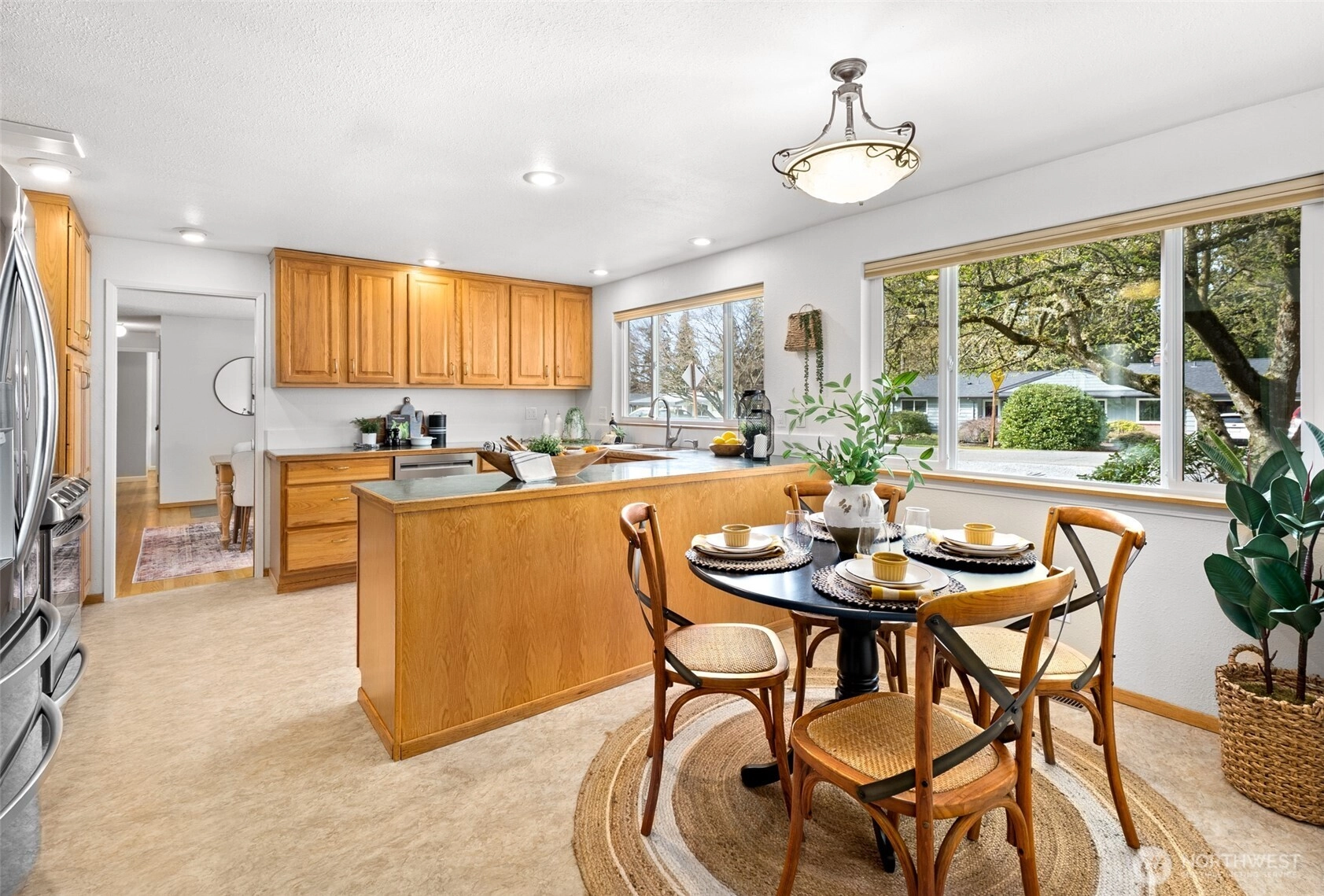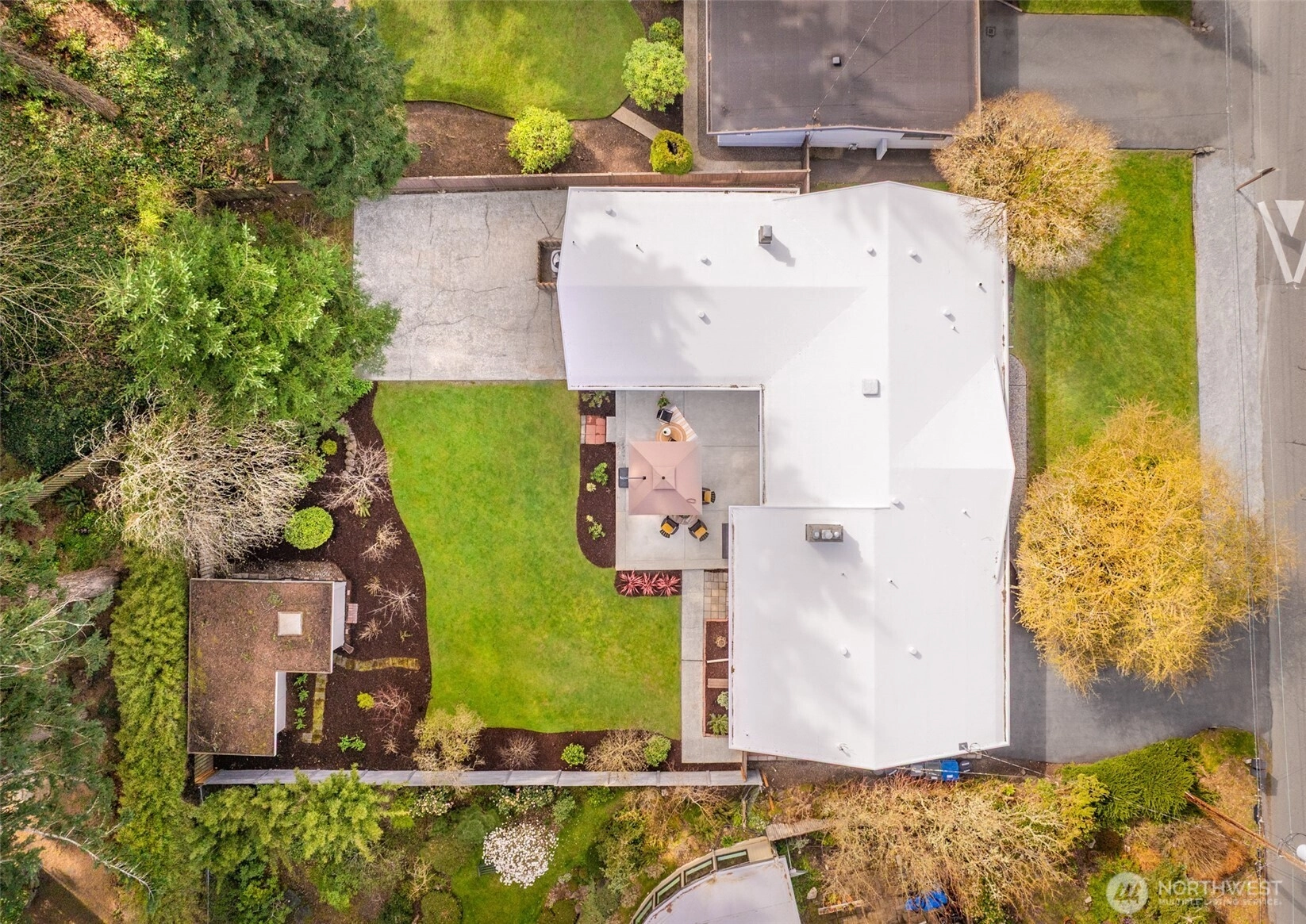 Less than 10 minutes from the Puget Sound beaches and parks and the Edmonds ferry, this location offers easy access to weekend island getaways, everyday shopping, and Highway 99 and I-5 for a smooth daily commute. Step inside this meticulously maintained 1950s rambler, where gleaming original hardwood floors guide you through a bright, open layout. The dining area is ready for gatherings, while the oversized formal living room centers around a cozy fireplace and opens to the outdoor living space. Enjoy a spacious patio ideal for entertaining, a fully fenced yard, and a powered storage shed. Indulge in culinary creations in the spacious kitchen with abundant prep space, ample storage, stainless steel appliances, and space for casual dining. Enjoy relaxing movie nights by the fire in the wood-paneled secondary living room. A nearby powder bath and garage access add to daily conveniences and routines. Down the hall, you’ll find four spacious bedrooms and a well-appointed hall bathroom with dual vanities and extra storage. Tucked at the end, the private primary suite provides a quiet retreat with an updated ensuite and direct access to the back patio.