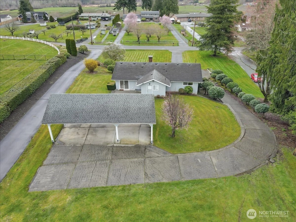 *PRICE IMPROVEMENT* Enjoy peaceful country living on nearly 2 acres of usable land along a quiet dead-end road with beautiful sunrise views across the Stillaguamish Valley — all just 2 miles from downtown Arlington and within walking distance to nearby schools & hospital. This charming 2,254 sq ft split-level home offers 3 bedrooms, 2.5 baths, and a fully finished basement, providing flexible living space that may lend itself to multi-generational living or possible rental potential (buyer to verify), while offering a wonderful opportunity to add your own updates and build equity. The attached garage adds everyday convenience, while the open acreage offers space for gardening, outdoor activities, and a country lifestyle. Preliminary discussion with the county suggests that the pasture land behind the home could possibly be used for ADUs or a Condo situation, rental cash flow? Buyer to verify. Plenty of parking is available with the attached garage and a 3-car carport. A 1,200 sq. ft. barn provides excellent storage for equipment, recreational vehicles, or your four-wheeled toys. Located just minutes from town, this property offers a rare combination of scenic valley views, usable acreage, privacy, and convenience, creating the ideal setting for peaceful country living close to everyday amenities.