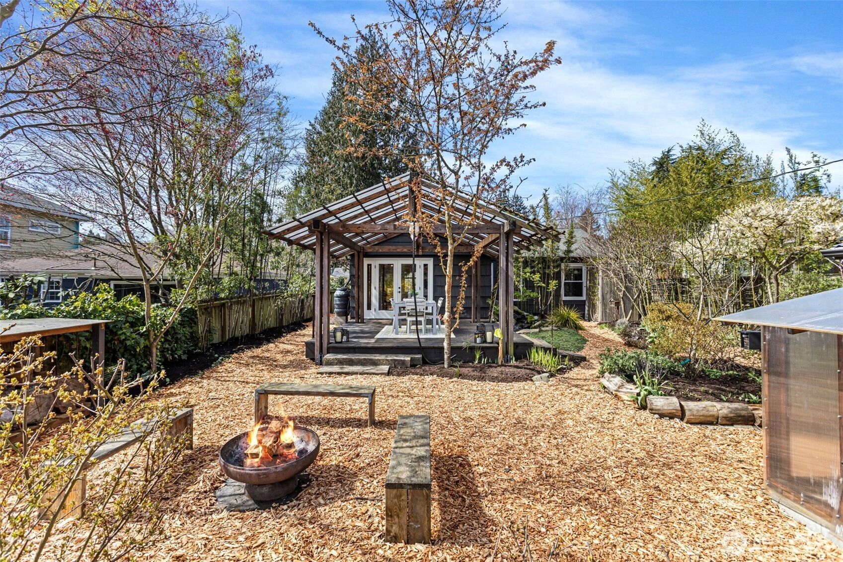 Welcome to your urban oasis nestled in the Genesee neighborhood of West Seattle. This thoughtfully designed home allows you to enjoy tranquil spaces by integrating the interior and exterior with ease and great flow. Open concept chef's kitchen has large counter space with bar seating and beautiful tile work. Custom metal and woodwork shelving and built-ins throughout home provide great storage and use of space. Bathroom has large soaking tub and modern tiles. Fresh interior and exterior paint, refinished hardwoods and double pane windows. French doors open to your large covered deck, great for entertaining and enjoying year round. Private and lush garden with fruit trees, herb garden and ornamental plantings. Separate studio space provides flexibility as a guest room or home office. Greenhouse with calibrated venting is a gardener's dream. Detached 1 car garage with alley access. Heat pump w/AC for added comfort. Close proximity to WS amenities, parks, schools, and transit. This home is truly special and a rare opportunity to own this custom gem. Stop by today!