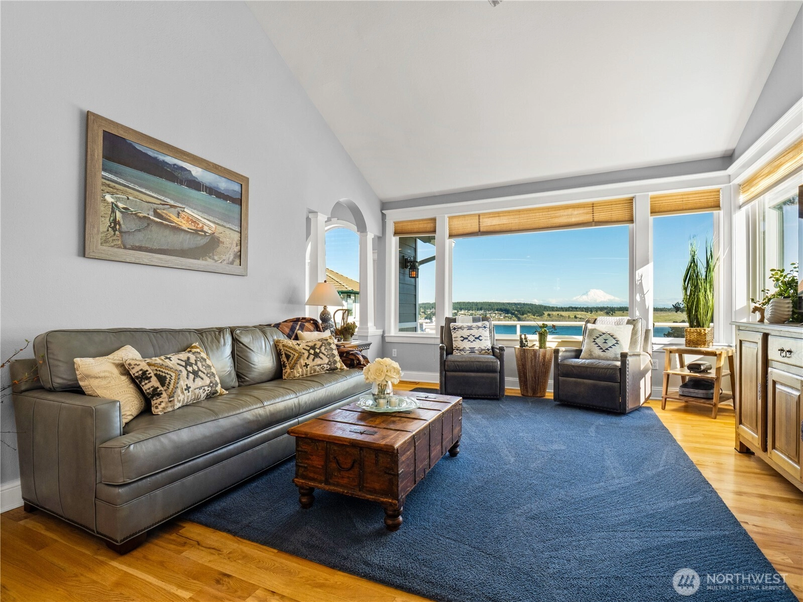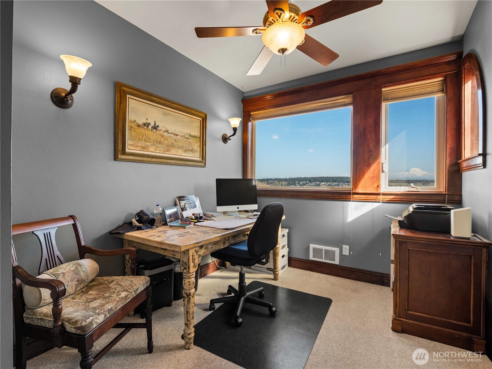 Welcome to the ultimate view property, where breathtaking panoramas of the Sound, majestic Mt. Rainier, and stunning Chambers Bay will leave you awestruck every day. Imagine sipping your morning coffee as eagles soar overhead, or enjoying a glass of wine on your private deck as orcas glide through the waters below. This extraordinary home is a masterpiece of design, blending seamless functionality with upscale living. As you enter, you'll be greeted by the expansive family room, where floor-to-ceiling windows frame the spectacular views. The flow into the spacious kitchen and eating nook is effortless, making this the perfect space for entertainment and everyday living. A formal dining room, conveniently located just off the entry, provides the perfect setting for special occasions. The main floor is complete with a powder room and utility room, while the upstairs retreat offers a serene owner's suite, complete with a spa-inspired bath and private deck – the ultimate sanctuary. Additional features include a second bedroom, office, and 3/4 bath, providing ample space for guests or a home office. The lower level is a haven for relaxation and recreation, cozy media room, third bedroom, and beach-themed 3/4 bath. With plenty of storage throughout, you'll never feel cluttered or confined. Outdoor living is elevated to new heights, with expansive deck, balcony and patio that invite you to soak up the views and fresh air.