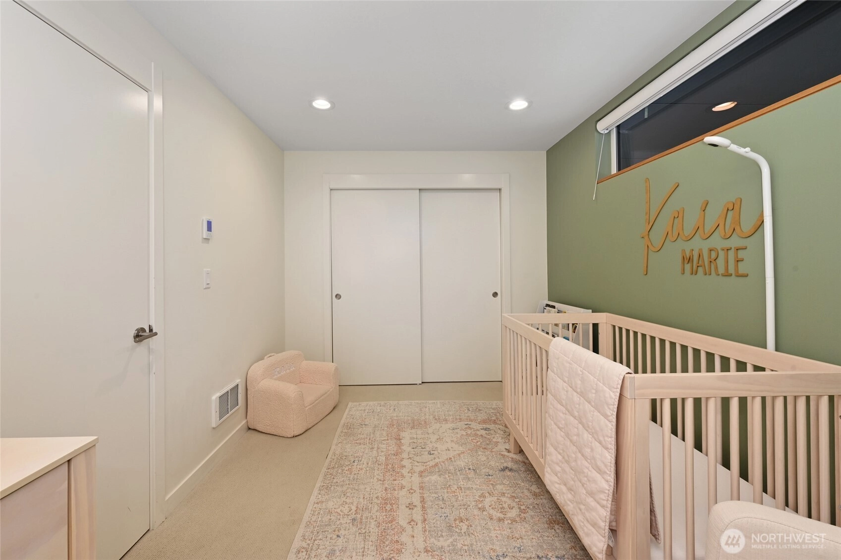 Modern comfort meets Northwest charm in this newer upscale townhouse nestled on a quiet dead-end street in desirable Magnolia. Enjoy peaceful, unobstructed views of protected green space and an unbeatable location just two blocks from Discovery Park, with an easy stroll to the Ballard Locks and Magnolia Village. This thoughtfully designed 3-bedroom, 2-bath, corner unit home features an open-concept main living area ideal for everyday living and entertaining. The stylish kitchen is outfitted with stainless steel appliances, a gas range, and a generous island that flows seamlessly into the dining and living spaces. A gas fireplace adds warmth and ambiance to the inviting living room. The private top-floor primary suite offers a relaxing retreat with a spa-inspired bathroom and walk-in closet. Two additional bedrooms on the first floor share a full bath—perfect for guests, home office space, or flexible living. Distinctive design details including rustic wood accents, rift-sawn oak floors, and striking metal stairway railings give the home a sophisticated yet cozy Northwest aesthetic. Take in expansive evergreen views from the rooftop deck—ideal for morning coffee or sunset gatherings. Assigned parking included, and no HOA dues make this a rare Magnolia opportunity.