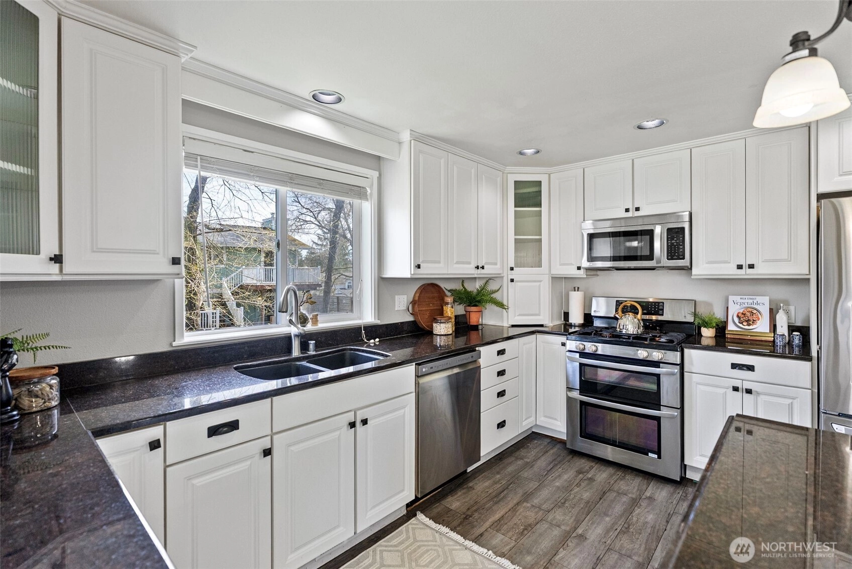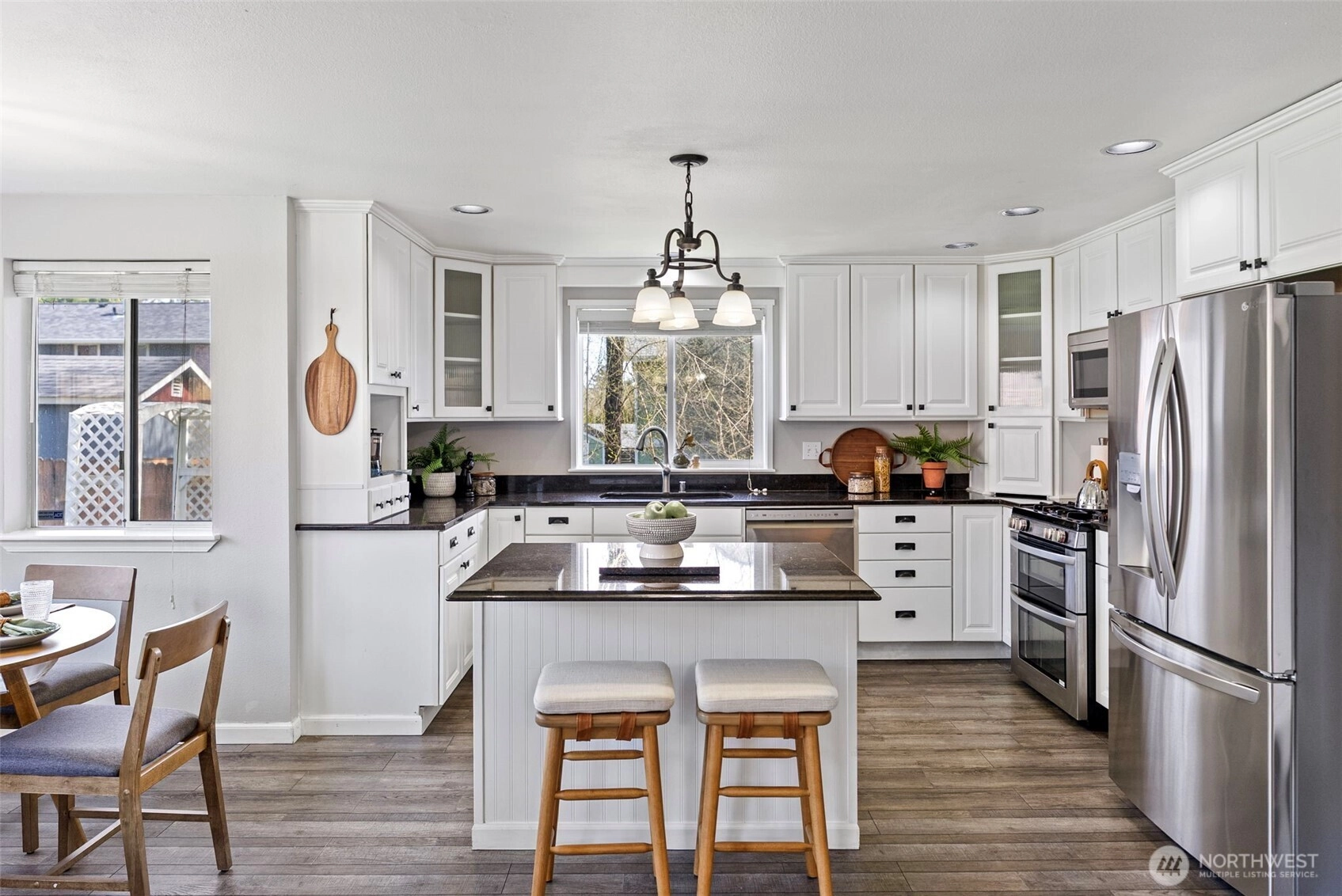 Light filled and well-designed with multiple living spaces, creating flexibility for daily life and entertaining. The kitchen serves as the heart of the home, featuring ample cabinetry, granite countertops, SS appliances and a seamless connection to the dining and living areas. Upstairs, you’ll find generously sized bedrooms including a spacious primary suite with an attached bath, aka a private retreat. Additional bedrooms provide room for guests, work-from-home needs, or space for never ending hobbies. Step outside to a beautifully usable backyard designed for enjoyment, whether it’s summer BBQs, gardening, or simply relaxing in your hot tub. The outdoor space offers a blend of privacy and functionality with room to play, entertain, and unwind. Situated in an established neighborhood on a quiet cul-de-sac, this home offers convenience to local schools, parks, restaurants and commuting routes while still feeling tucked away.