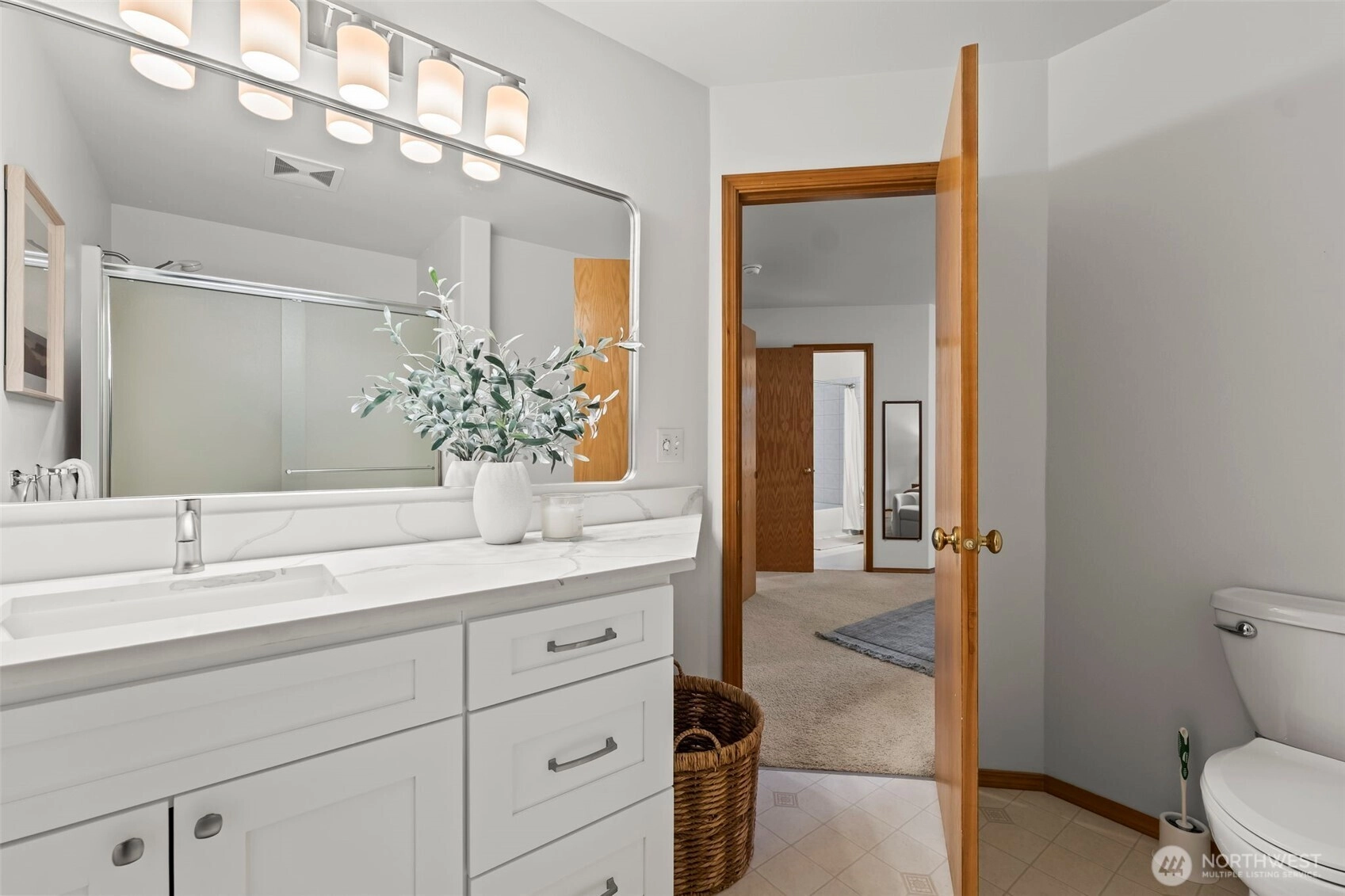 SELLER OFFERING $10,000 CREDIT | Experience the ultimate combination of privacy and convenience in this meticulously maintained, single-level University Place sanctuary. This light-filled, freshly-painted home features vaulted ceilings and new skylights that capture the Pacific Northwest glow during all four seasons. The functional floor plan includes an updated kitchen with quartz counters and a breakfast bar, flowing into sun-drenched living spaces. Relax in a primary suite with a walk-in closet and private ensuite bathroom. Use the versatile second bedroom as a home office or an inviting guest room, which also has a walk-in closet. Your private backyard is a gardener's dream, bordering a lush greenbelt for seclusion. Enjoy two patios - one covered for year-round entertaining and an open terrace for warm mornings or sunny afternoons. Perfectly located near top shops and dining. Low-maintenance comfort meets park-like tranquility.
