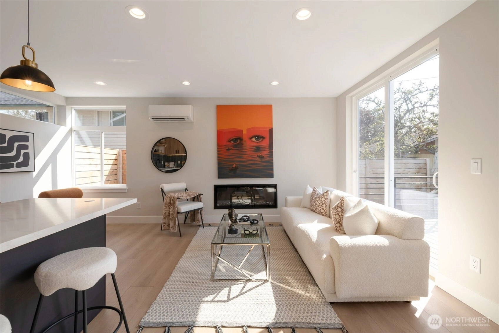 Welcome to Your New Home in Highland Park! Experience the perfect blend of style and function in this stunning, open-concept floor plan. The main level is designed for entertaining, featuring a gourmet island kitchen complete with quartz countertops, pop-up counter outlets, LED lighting, and sleek LG stainless steel appliances. A convenient powder room for guests, while sliding glass doors lead you to fully fenced deck and yard— private oasis for outdoor gatherings. Upstair, the primary suite retreats with vaulted ceilings, walk-in closet, and an en-suite bathroom with dual sinks and a floor-to-ceiling tiled shower. Second bedroom with attached full bath, and dedicated laundry room. LVP flooring throughout, year-round comfort with a high-efficiency mini-split heating & cooling system, and EV-ready parking.