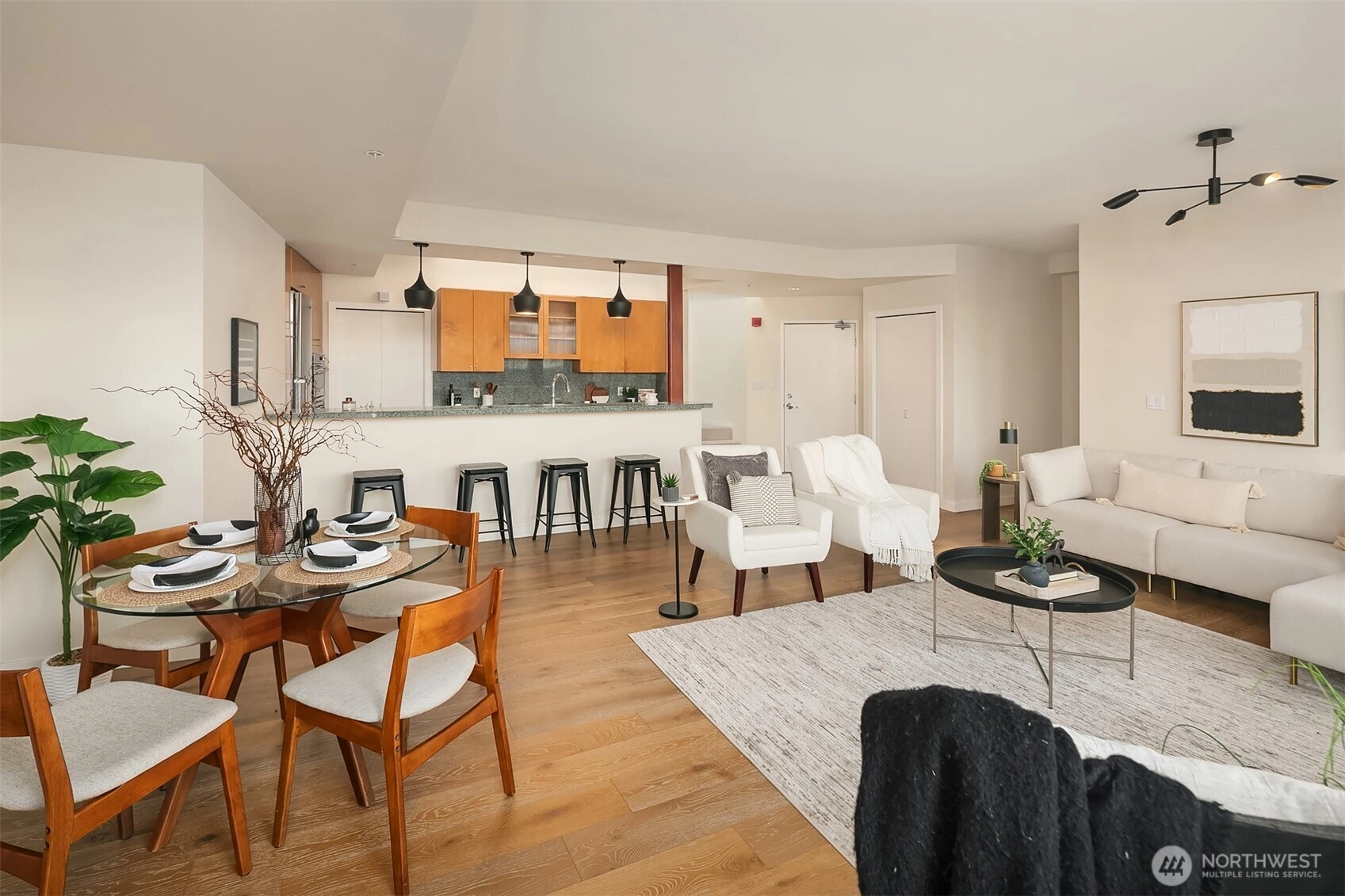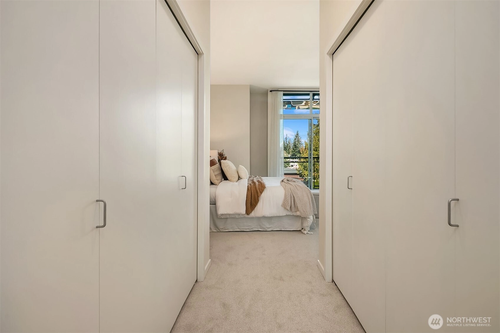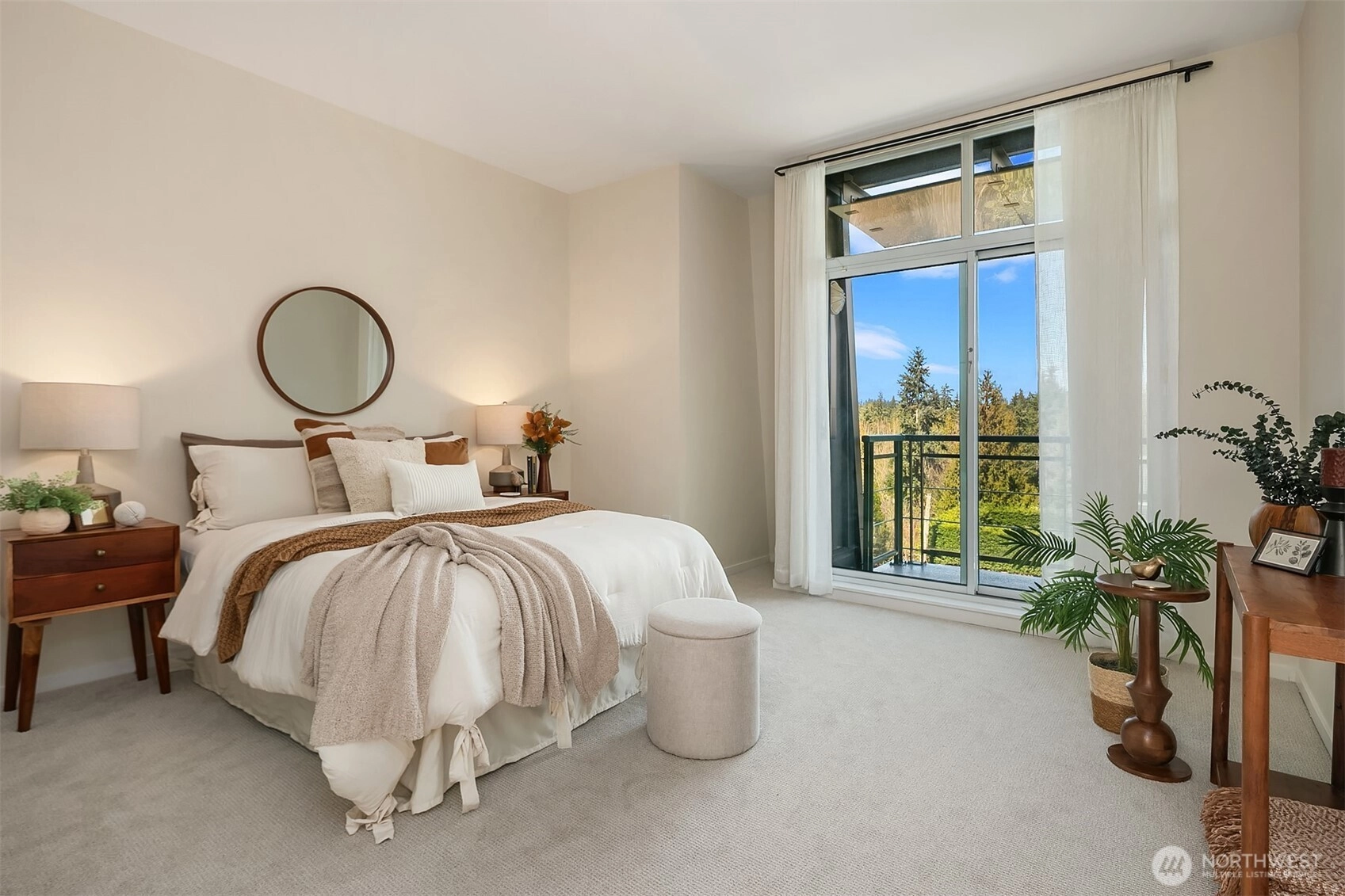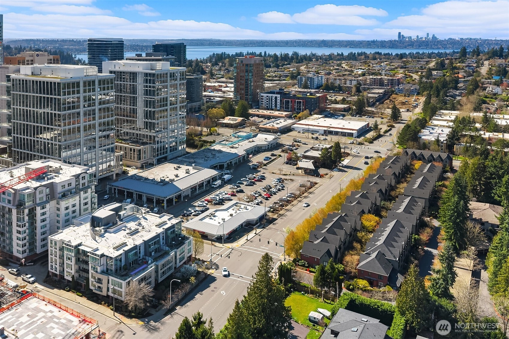 Stunning Palazzo penthouse offering exceptional light, space, and modern comfort. Floor-to-ceiling windows and a dramatic skylight fill the living spaces with abundant natural light. Thoughtfully designed Kitchen with a gas cooktop, built-in oven, granite countertops, and a walk-in pantry. Open concept living w beautiful hardwoods, gas fireplace and opens to an expansive private terrace (approx 400 sq ft) with territorial views is perfect for seamless indoor-outdoor living and entertaining. Conveniently located bathroom off living space. Both bedrooms feature brand new carpet and are situated on the upper level, each offering a private en-suite bathroom, ample closet space and its own balcony. Secure garage with two parking spaces and extra storage. Premium amenities w a full-time concierge, business center, and fitness center. No rental cap. Walking distance to shops, parks, restaurants and everything Downtown Bellevue has to offer!