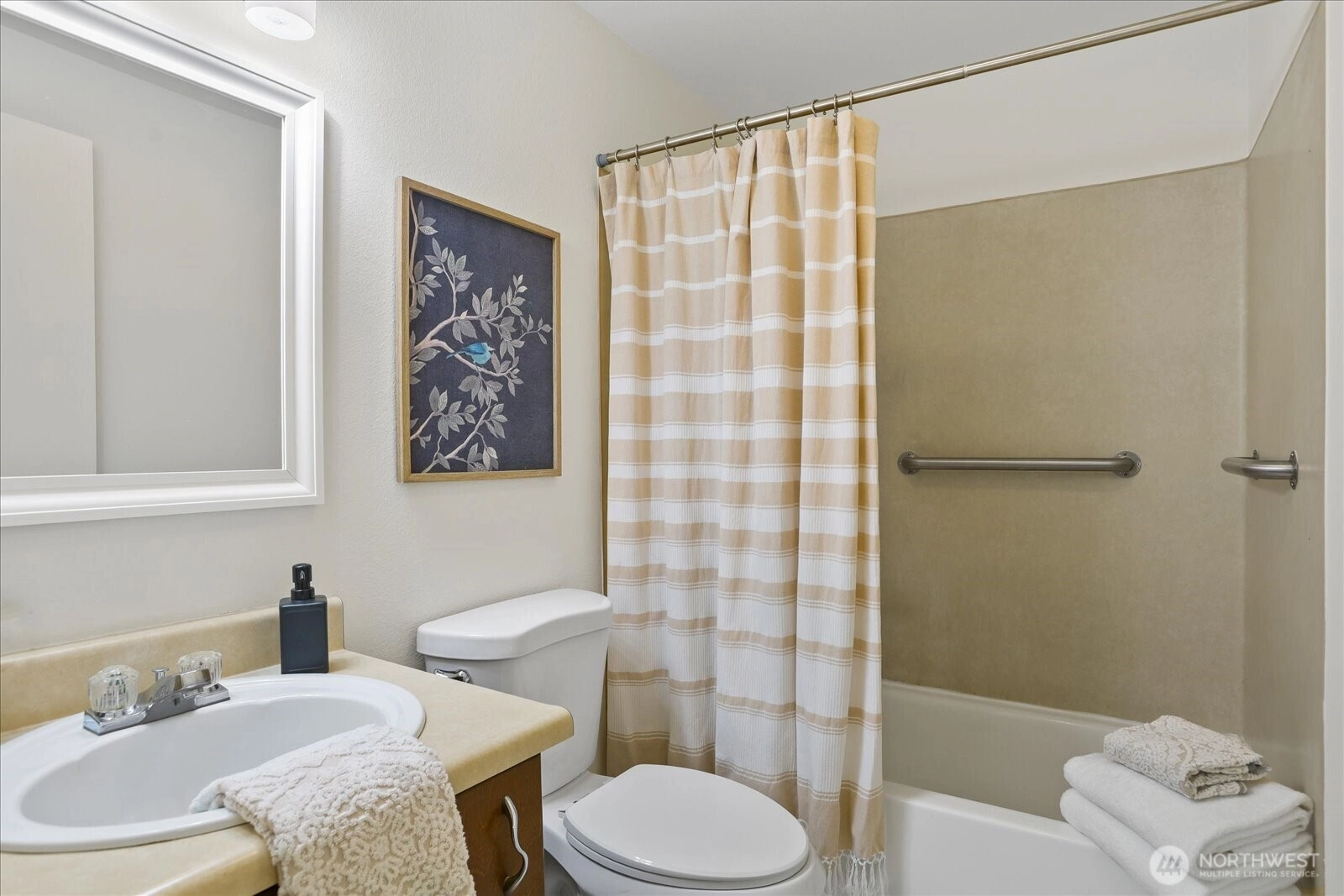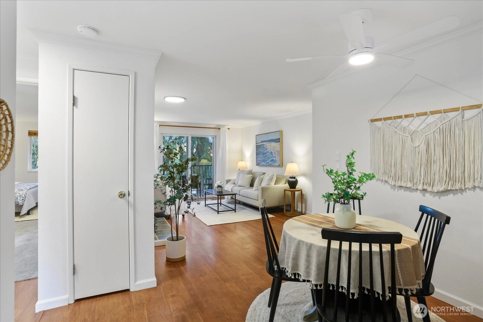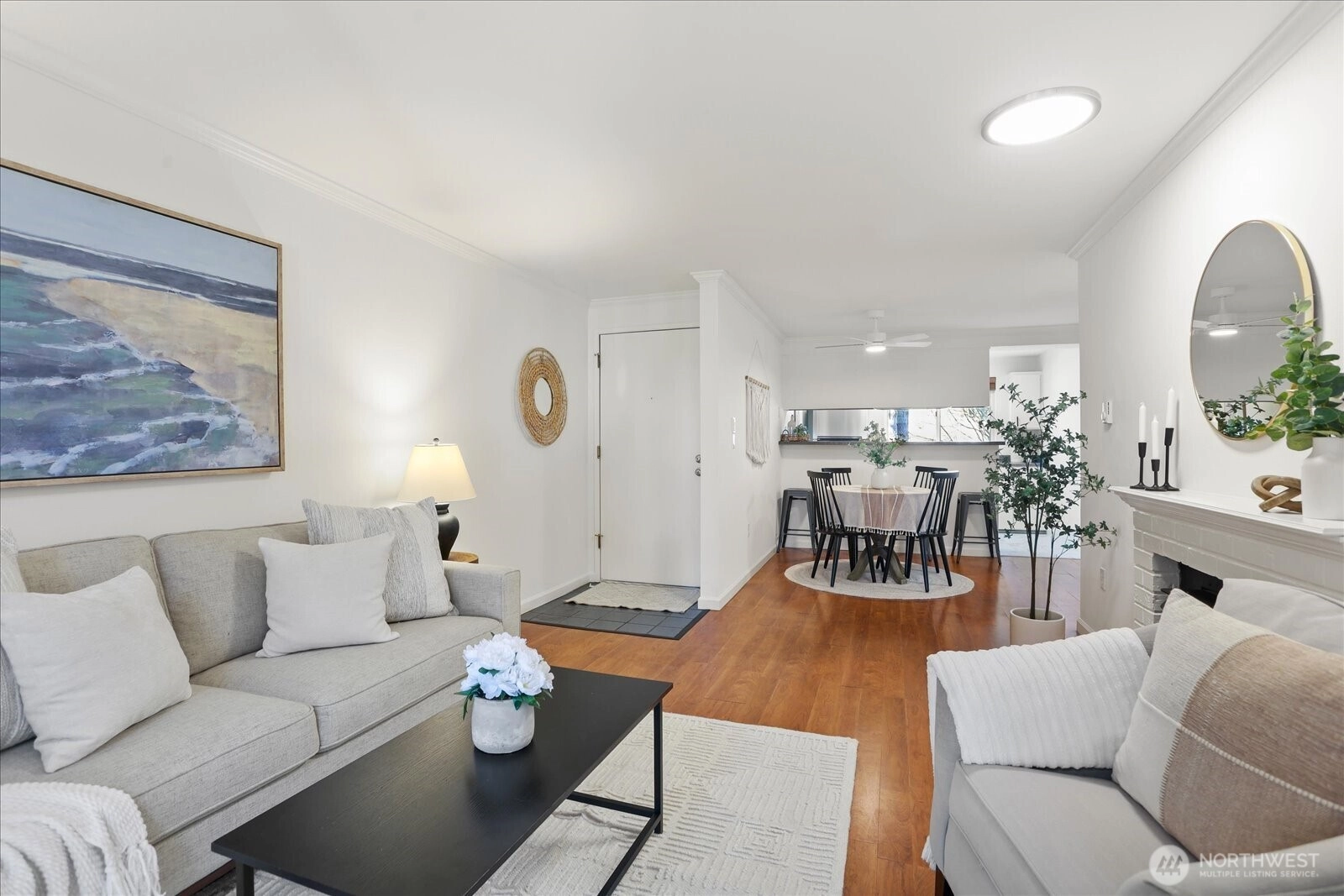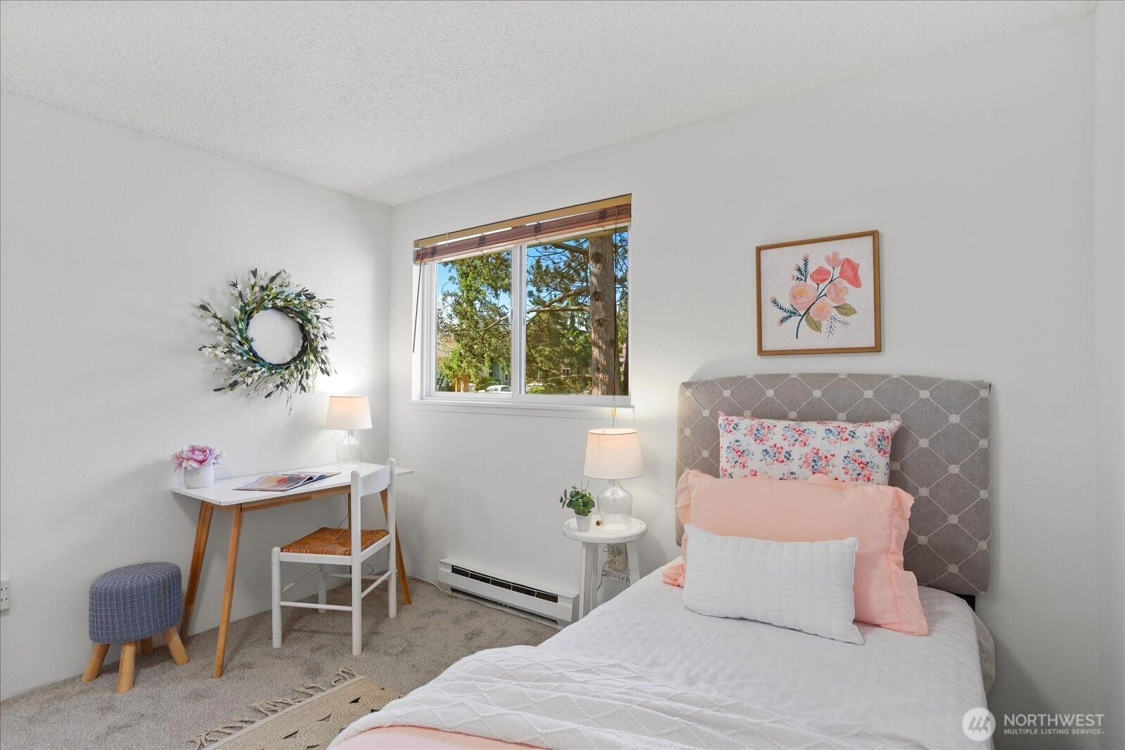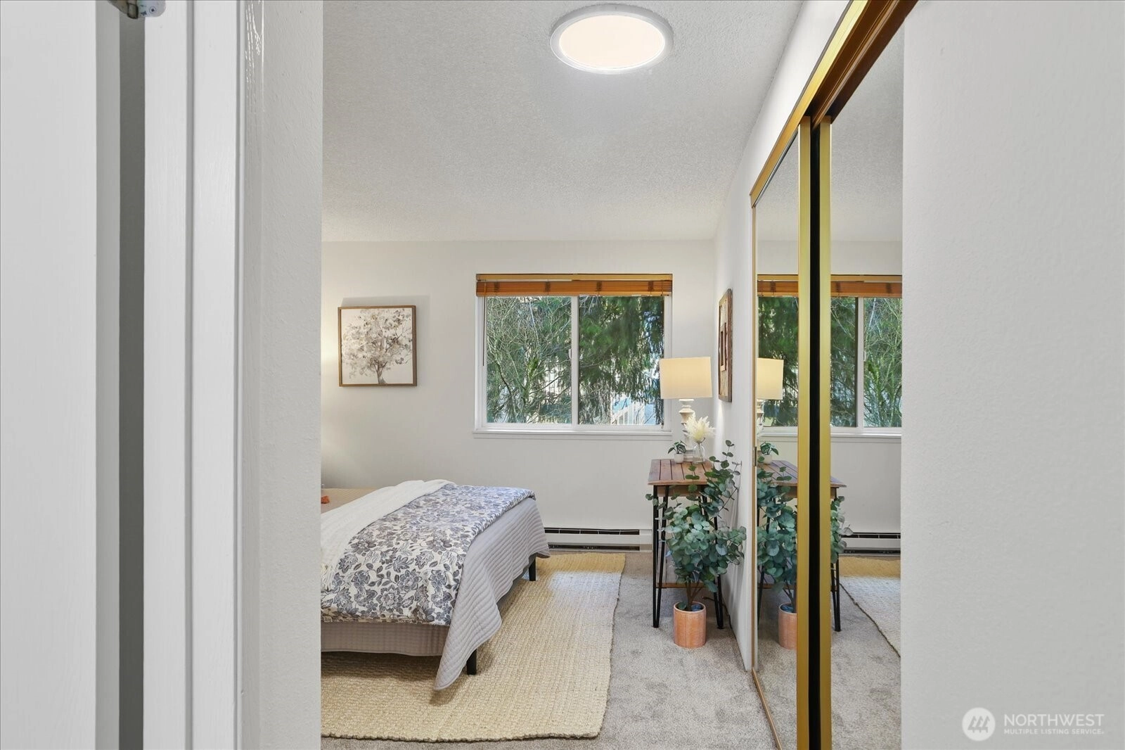 Beautifully refreshed, light filled condo tucked down a quiet drive with LOW monthly dues. Thoughtfully designed layout offering two full bathrooms and two large bedrooms with serene views of the Cascades from the spacious deck. New paint throughout, new LVP flooring in kitchen and bathrooms, new carpet in both bedrooms, new lighting fixtures including ceiling fan with remote, new fridge, new WD, newer water heater and cozy wood burning fireplace. Situated within the highly sought-after Mukilteo School District and just minutes from Boeing and I-5, this location is ideal for both homeowners and investors alike (no rental cap!).Enjoy a nicely maintained community and well-run HOA. Major exterior updates already completed, including new siding, windows, slider doors, roof, and decks. Amenities include heated pool, indoor hot tub, cabana and sports court. One assigned parking space and loads of visitor parking. Pet friendly and close to lots of restaurants, shops, hospital and transit options. Ample storage closet on private deck and VA approved. Welcome Home!