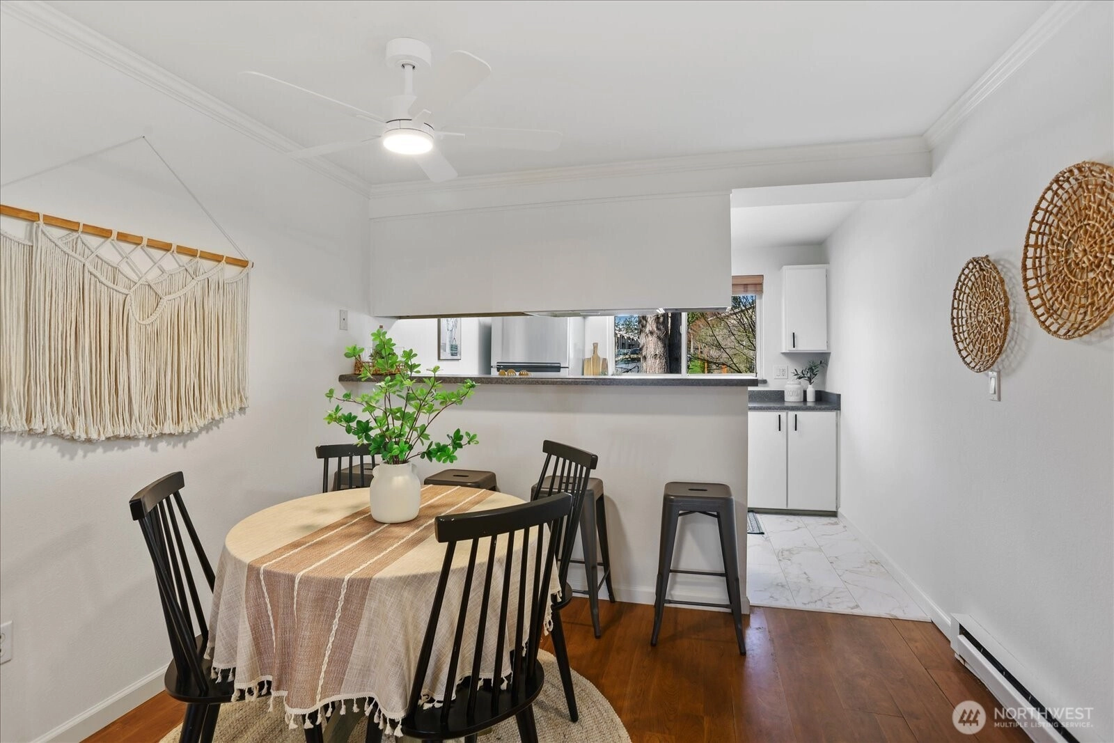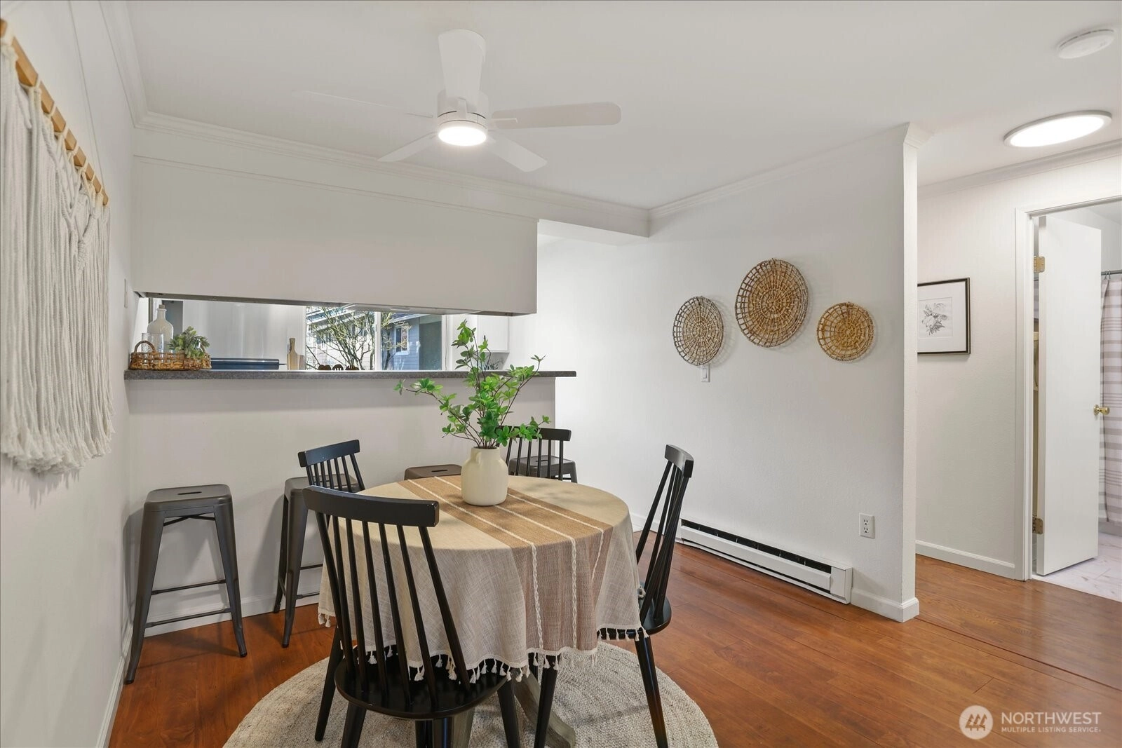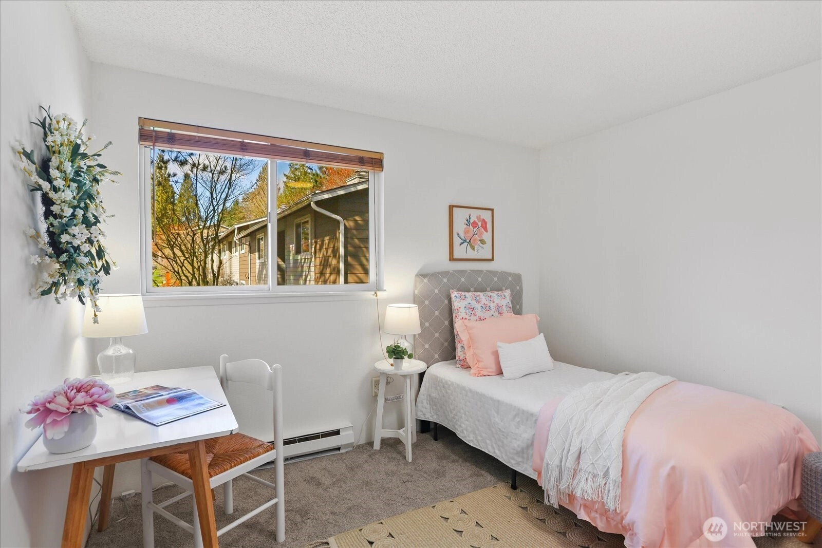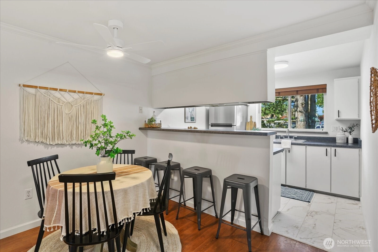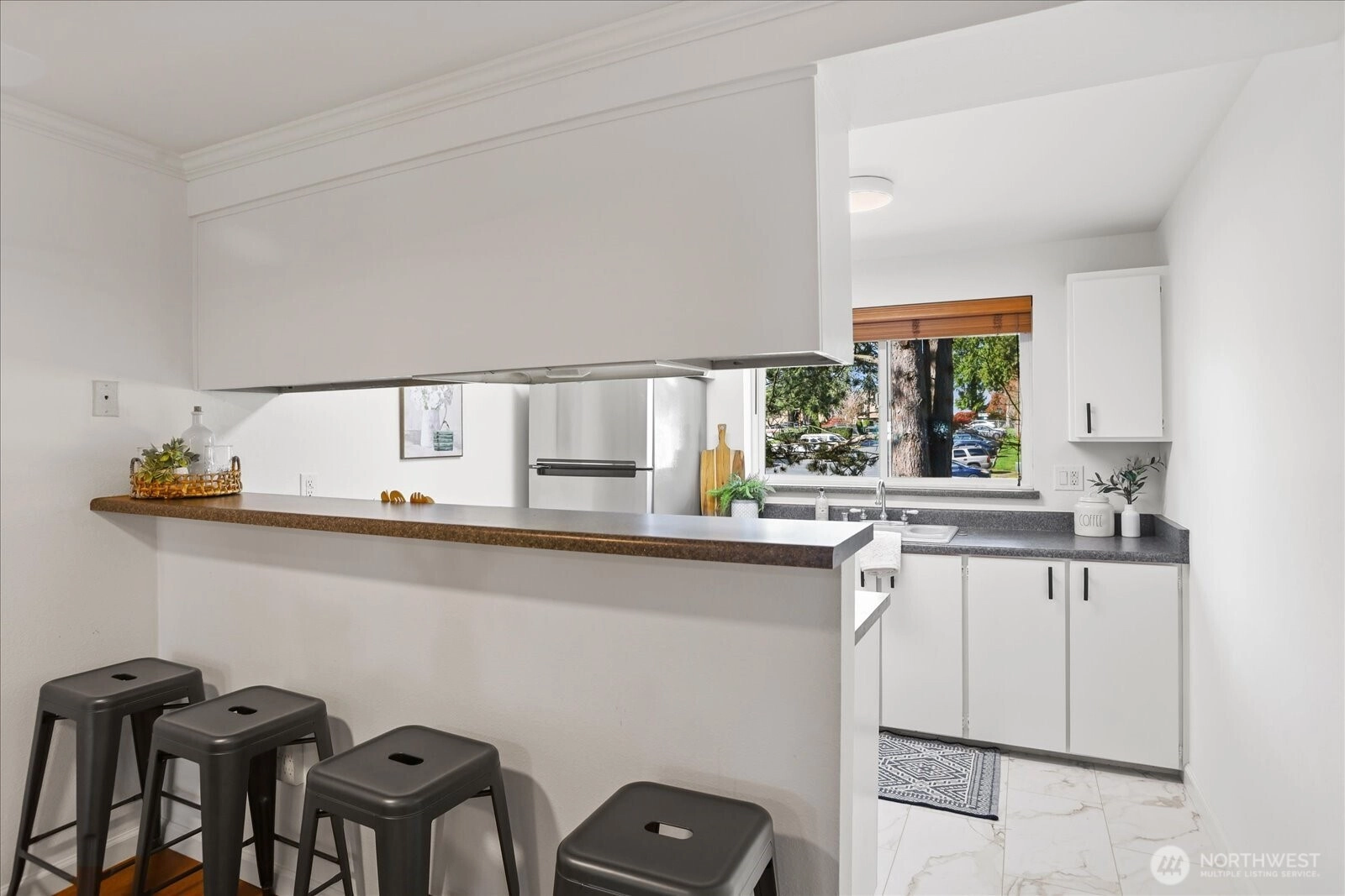 Beautifully refreshed, light filled condo tucked down a quiet drive with LOW monthly dues. Thoughtfully designed layout offering two full bathrooms and two large bedrooms with serene views of the Cascades from the spacious deck. New paint throughout, new LVP flooring in kitchen and bathrooms, new carpet in both bedrooms, new lighting fixtures including ceiling fan with remote, new fridge, new WD, newer water heater and cozy wood burning fireplace. Situated within the highly sought-after Mukilteo School District and just minutes from Boeing and I-5, this location is ideal for both homeowners and investors alike (no rental cap!).Enjoy a nicely maintained community and well-run HOA. Major exterior updates already completed, including new siding, windows, slider doors, roof, and decks. Amenities include heated pool, indoor hot tub, cabana and sports court. One assigned parking space and loads of visitor parking. Pet friendly and close to lots of restaurants, shops, hospital and transit options. Ample storage closet on private deck and VA approved. Welcome Home!