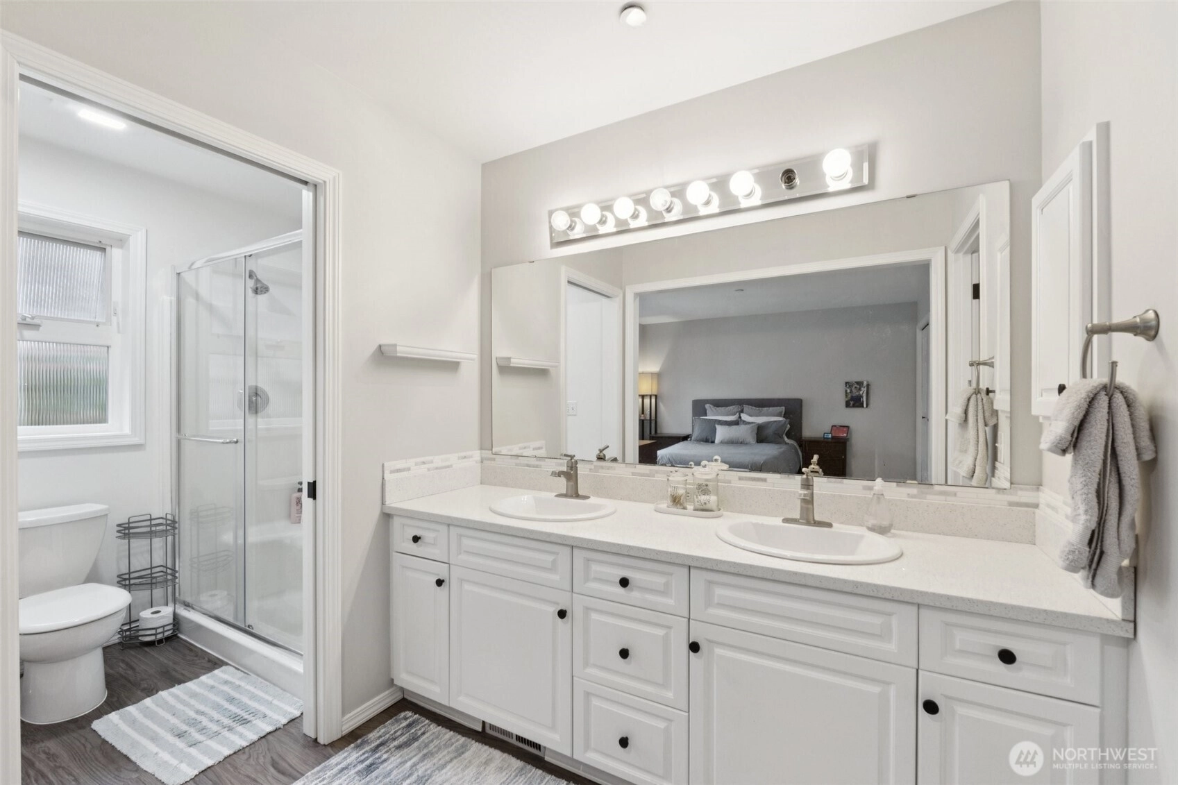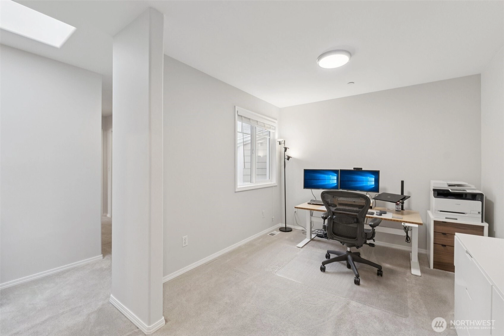 Not your typical townhome! Centrally located near 5 Corners in Edmonds, this 2+ bedroom home lives large with a bonus room upstairs that could easily become a 3rd bedroom, and even a large basement workshop/gym/storage room! The main level is light and bright with fresh paint and lighting, rich engineered hardwood floors, sleek gas fireplace, and custom window treatments. The private patio is embraced by cherry blossom, and the attached 2 car garage is EV ready! The primary suite includes a large bath and luxurious walk-in closet. Moments away from downtown Edmonds, schools, shopping and I-5, this checks all your boxes and more!