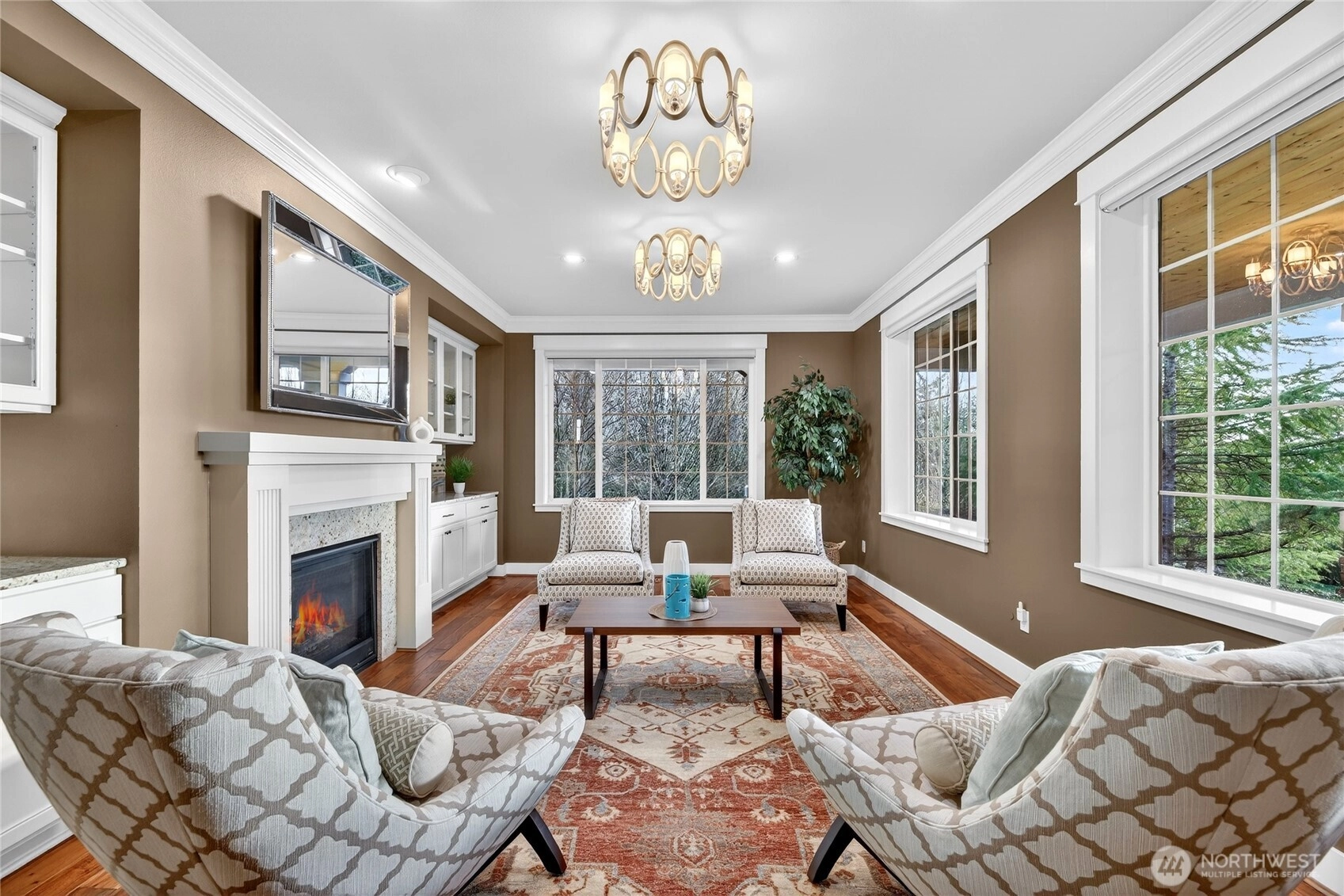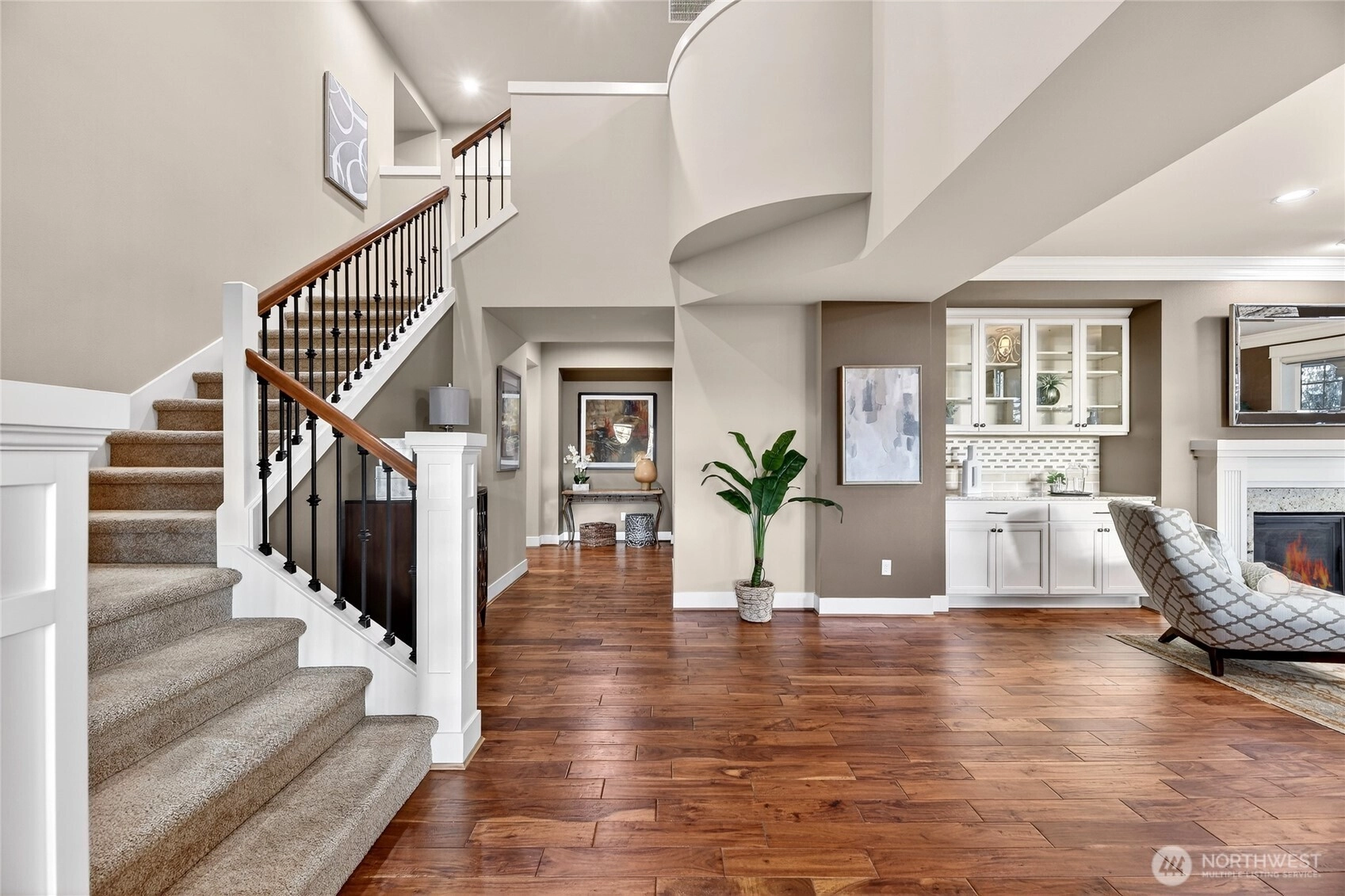 Welcome to this exceptional Lakemont Heights residence, offered for the first time in 14 years and set on a premium lot surrounded by lush green spaces and a beautiful neighborhood park. This home effortlessly blends timeless charm with elevated living, featuring soaring ceilings, a gourmet kitchen, and a stunning formal living area with a cozy fireplace and built-in wine cooler—perfect for entertaining in style. The versatile lower level offers a fully equipped gym or guest suite with a ¾ bath, while upstairs you’ll find four spacious bedrooms, two baths, and a loft designed for modern living. The luxurious primary suite boasts a private balcony with serene mountain views, creating the perfect personal retreat. Thoughtfully updated with air conditioning, a brand new heat pump, refreshed paints and steam cleaned carpets, this home is truly move-in ready. Enjoy year-round gatherings on the beautifully designed patio, ideal for both warm summer evenings and cozy winter nights. Ideally located in Bellevue, just minutes from downtown, I-90/I-405 access, premier dining, shopping, and everyday conveniences, as well as the renowned The Golf Club at Newcastle—this is luxury living at its finest.