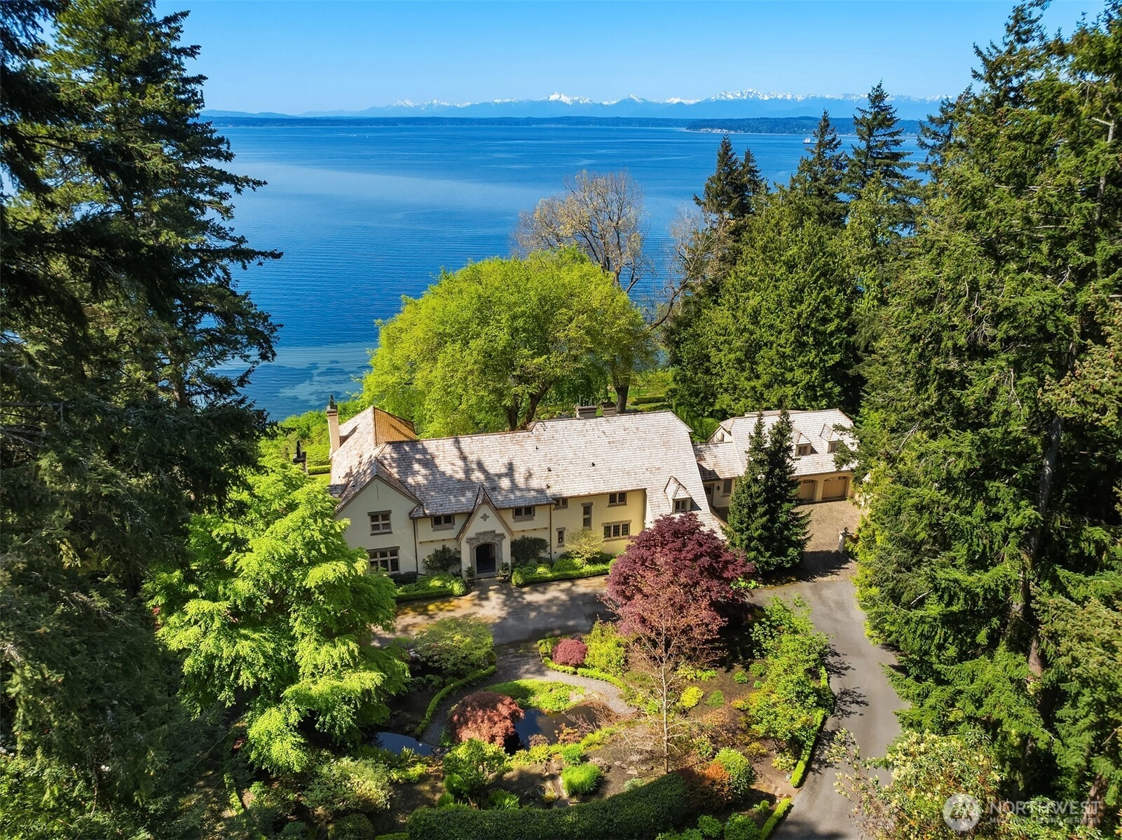 One of Edwin Ivey’s finest estates, located in The Highlands with 3.31 acres and over 250 feet of Southwest-facing frontage above Puget Sound. Enjoy Sound & Olympic views and sunsets paired with timeless European Tudor Revival design. The original 1921 grandeur is intact, but with the benefits of a 2005 complete refit by Schultz Miller. This is luxury living defined. Greet your guests in the formal entry and concert hall, or from the circular driveway with formal gardens, fountains, & auto-court. Explore all 11,000+ square feet of interior or lose yourself in the views from the South lawn and West Terrace. An estate worthy of hosting unforgettable events, yet equally enjoyed sharing with a few friends and a special bottle from the cellar.