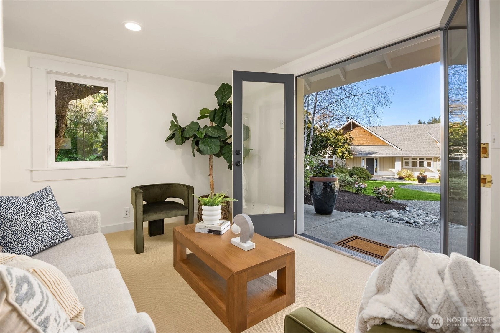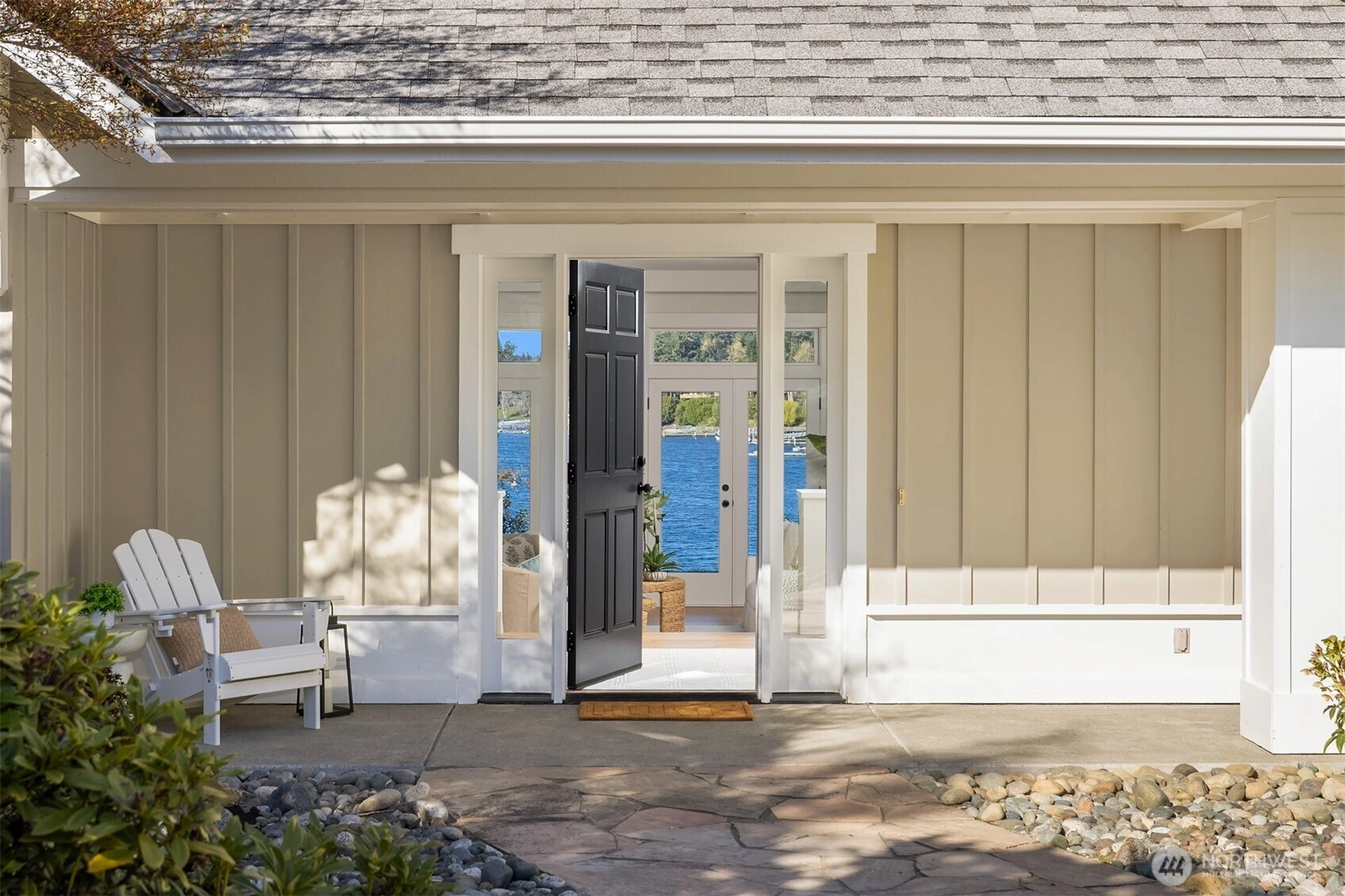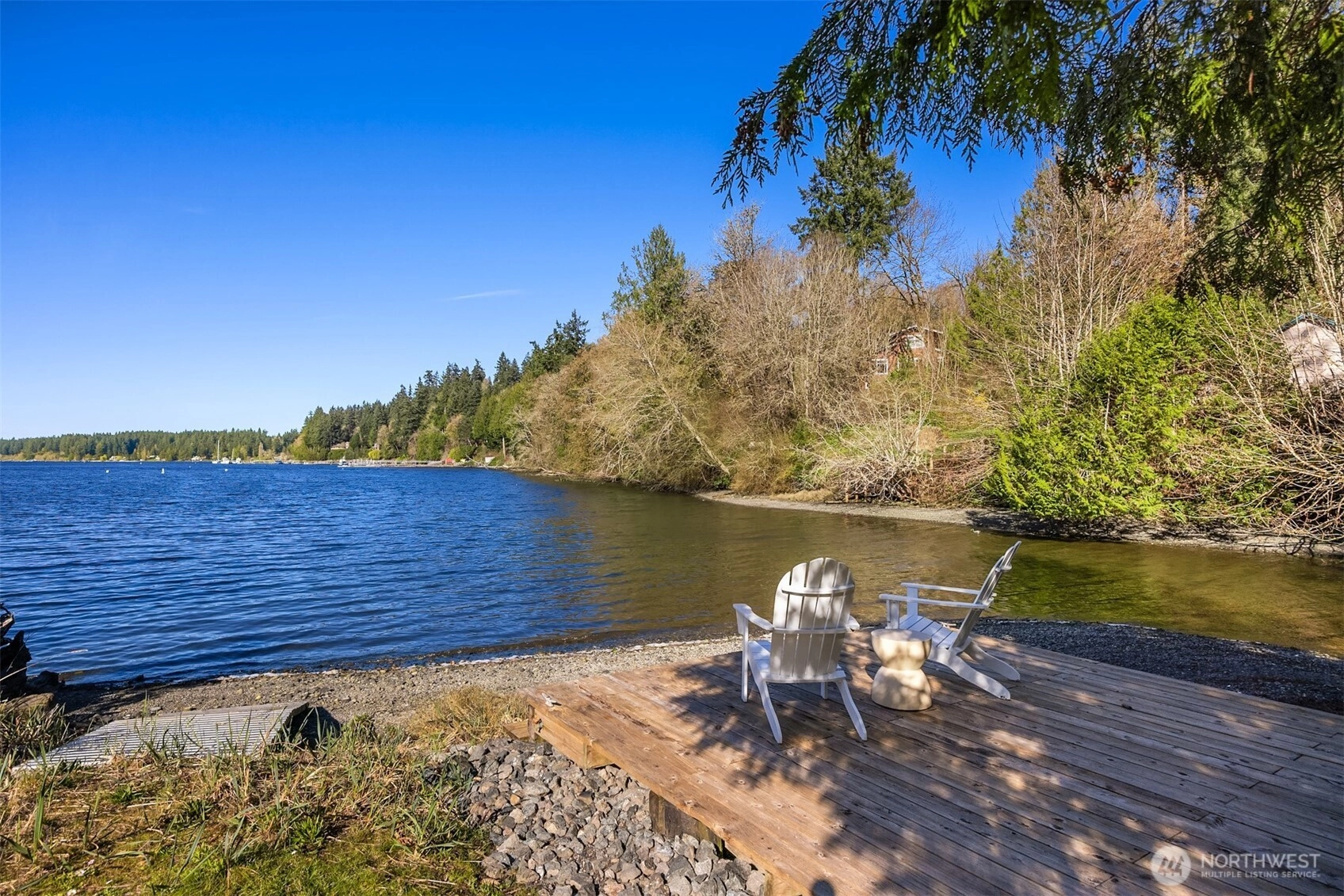 Set along the shores of coveted Manzanita Bay, this beautifully renovated estate captures the essence of peaceful waterfront living. Spanning rare acreage, the setting feels remarkably private; the grounds unfold in rolling lawns and natural landscape, creating a sense of openness and calm seldom found. Mornings drift in slowly as the water comes to life; evenings soften into an ambient glow, the bay reflecting the last light of day; an ever-changing backdrop in one of the islands most treasured settings. Designed in harmony with its surroundings, the home is oriented to the water, where expansive windows frame sweeping views and welcome gentle northern light. Thoughtfully curated enhancements introduce a refined yet inviting aesthetic, with white oak flooring and high-end appliances elevating everyday living. Southern exposure draws sunlight through the home year-round, enhancing its bright, airy presence. Outdoors, the grounds lead gracefully to a private beach. A dock with boat lift and mooring buoy offers an effortless connection to the bay—launch into the morning or return to the quiet rhythm of your own shoreline. A detached garage with a generous heated loft invites creativity, whether for a studio, media retreat, or workshop, while a charming guest house with its own bath provides a private haven for visitors. Just moments away, Battle Point Park offers trails, open fields and recreation, enriching the ease and beauty of life in this extraordinary waterfront setting