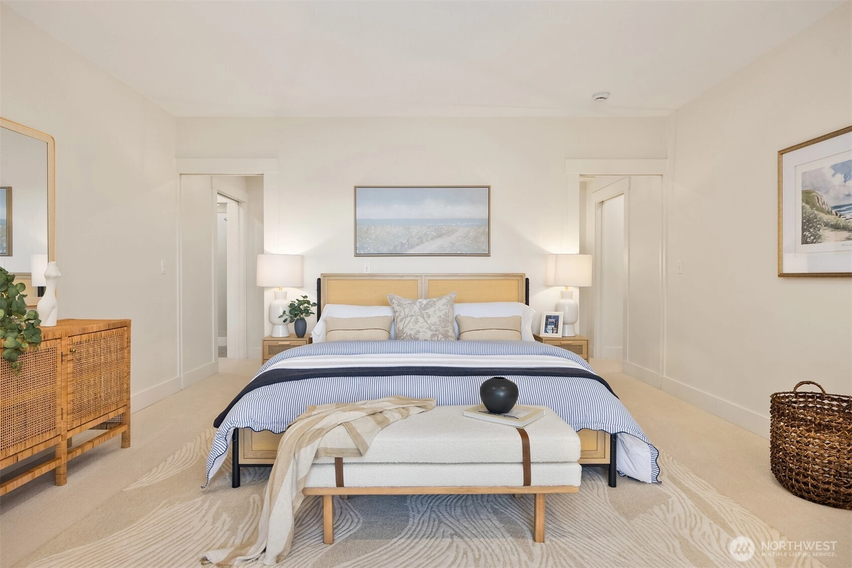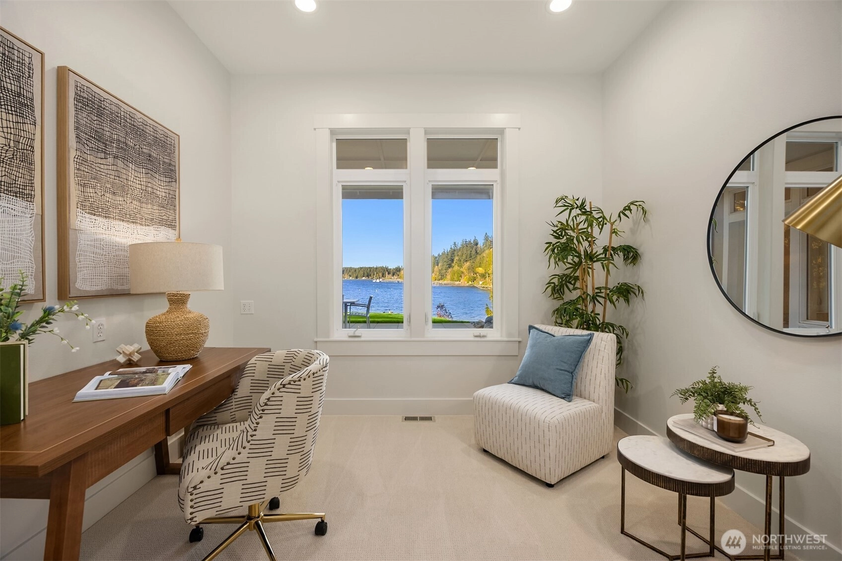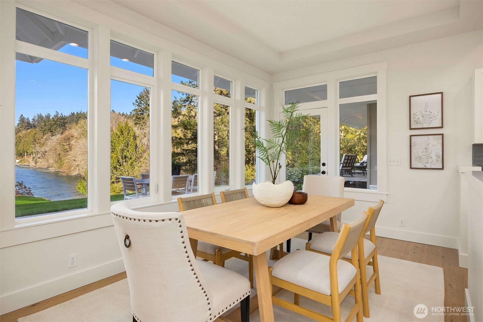 Set along the shores of coveted Manzanita Bay, this beautifully renovated estate captures the essence of peaceful waterfront living. Spanning rare acreage, the setting feels remarkably private; the grounds unfold in rolling lawns and natural landscape, creating a sense of openness and calm seldom found. Mornings drift in slowly as the water comes to life; evenings soften into an ambient glow, the bay reflecting the last light of day; an ever-changing backdrop in one of the islands most treasured settings. Designed in harmony with its surroundings, the home is oriented to the water, where expansive windows frame sweeping views and welcome gentle northern light. Thoughtfully curated enhancements introduce a refined yet inviting aesthetic, with white oak flooring and high-end appliances elevating everyday living. Southern exposure draws sunlight through the home year-round, enhancing its bright, airy presence. Outdoors, the grounds lead gracefully to a private beach. A dock with boat lift and mooring buoy offers an effortless connection to the bay—launch into the morning or return to the quiet rhythm of your own shoreline. A detached garage with a generous heated loft invites creativity, whether for a studio, media retreat, or workshop, while a charming guest house with its own bath provides a private haven for visitors. Just moments away, Battle Point Park offers trails, open fields and recreation, enriching the ease and beauty of life in this extraordinary waterfront setting