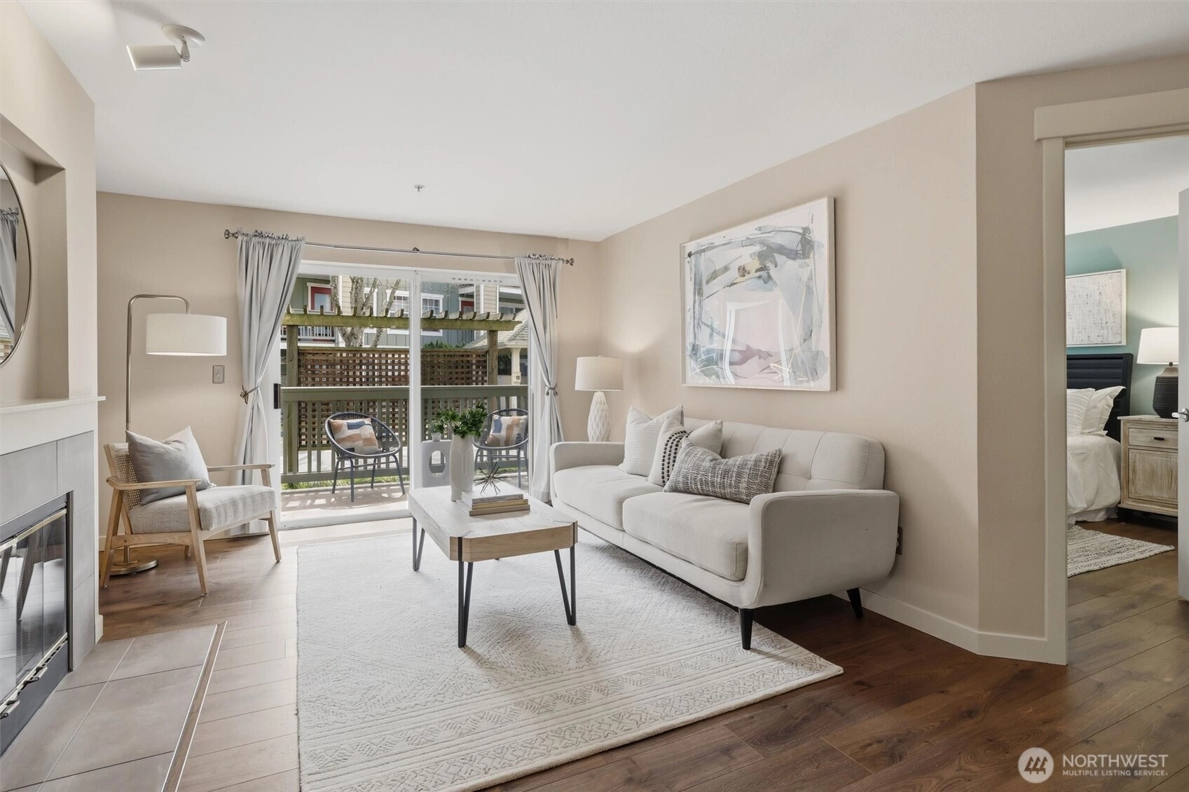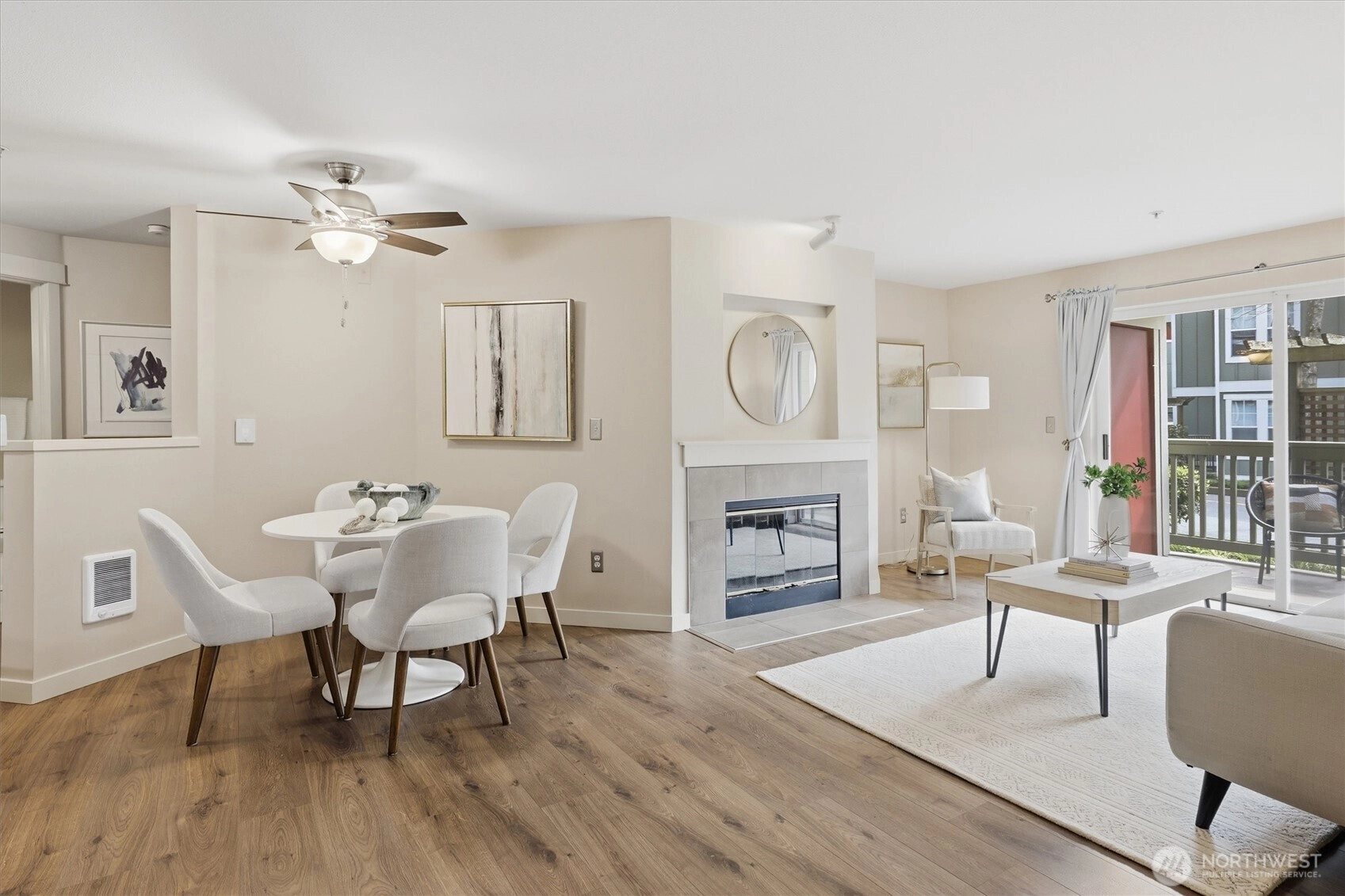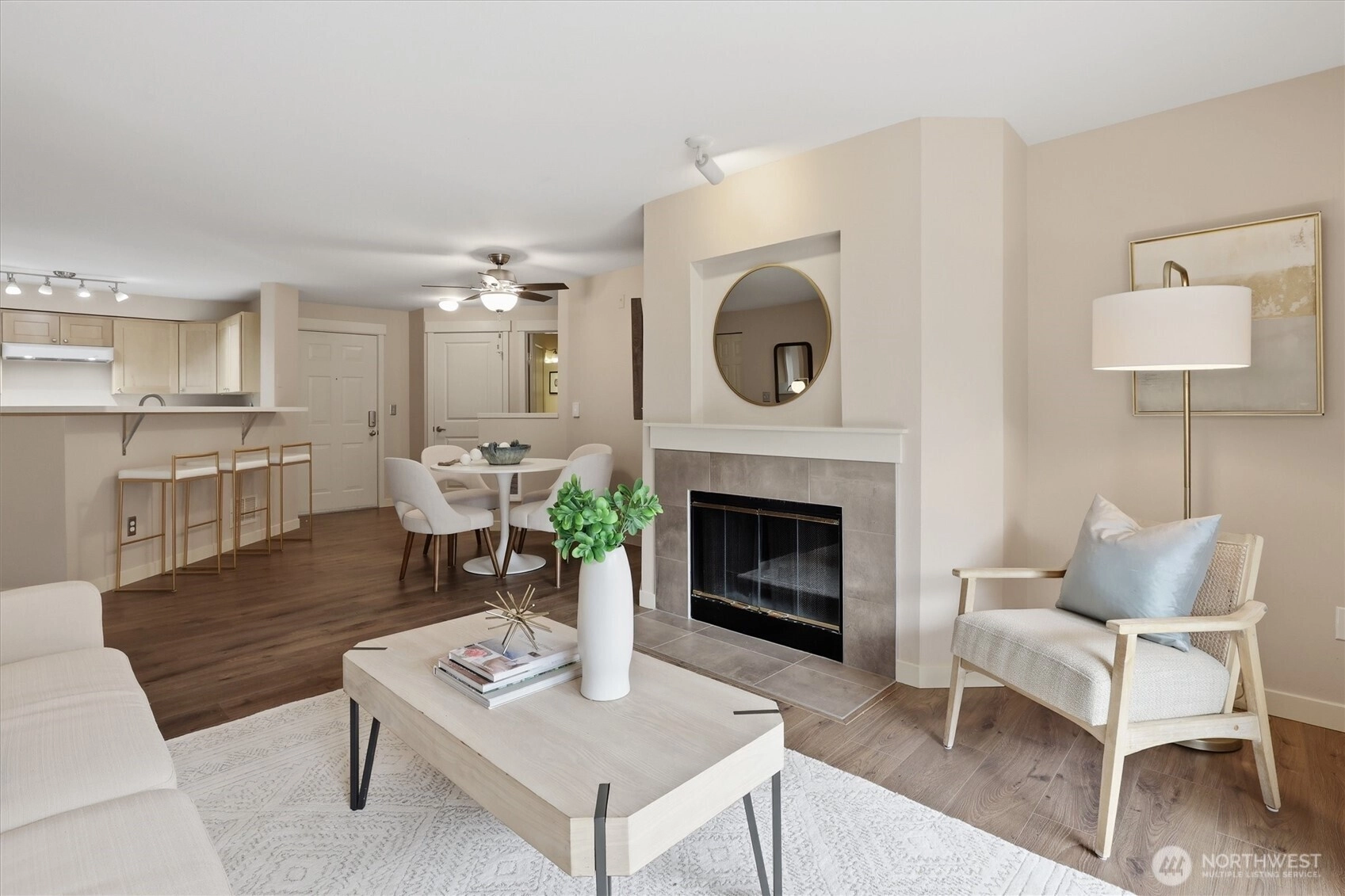 Your gateway to an active lifestyle starts with this comfortable 2 bedroom, 2 bathroom home. Rare and desirable no-step entry and interior. Open floor plan with kitchen, dining and living room at the heart. Primary bedroom suite includes generous ensuite with walk-in shower, two closets and patio access. Secondary bedroom with walk-in closet and adjacent full bath. The home has been updated with newer shaker cabinets, quartz countertops, and newer white appliances. Luxury vinyl floors throughout make cleaning a breeze. Full size laundry machines conveniently located inside the condo. Wood-burning fireplace and ceiling fan keeps it cozy or cool. Large storage closet off of patio. Rock solid HOA with impressive reserves and onsite maintenance. Private, secured, covered parking spot in garage. Community features pool, spa, fitness, garden space and clubhouse. Two pets per unit. Rental cap not met. Enjoy the nearby Kenmore paddle park on Lake WA and tons of trails. Quick to Burke-Gilman, breweries, cafes and shops. Easy commute to UW Bothel and beyond with nearby park n' ride.