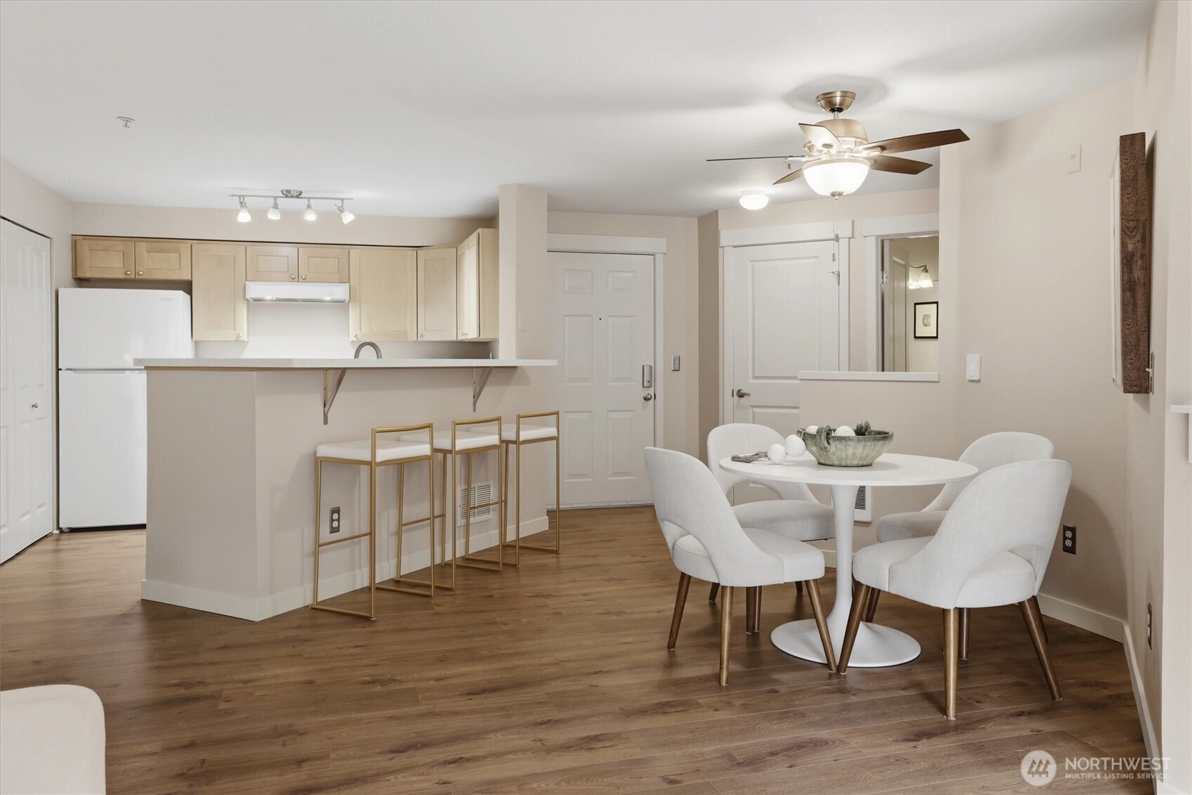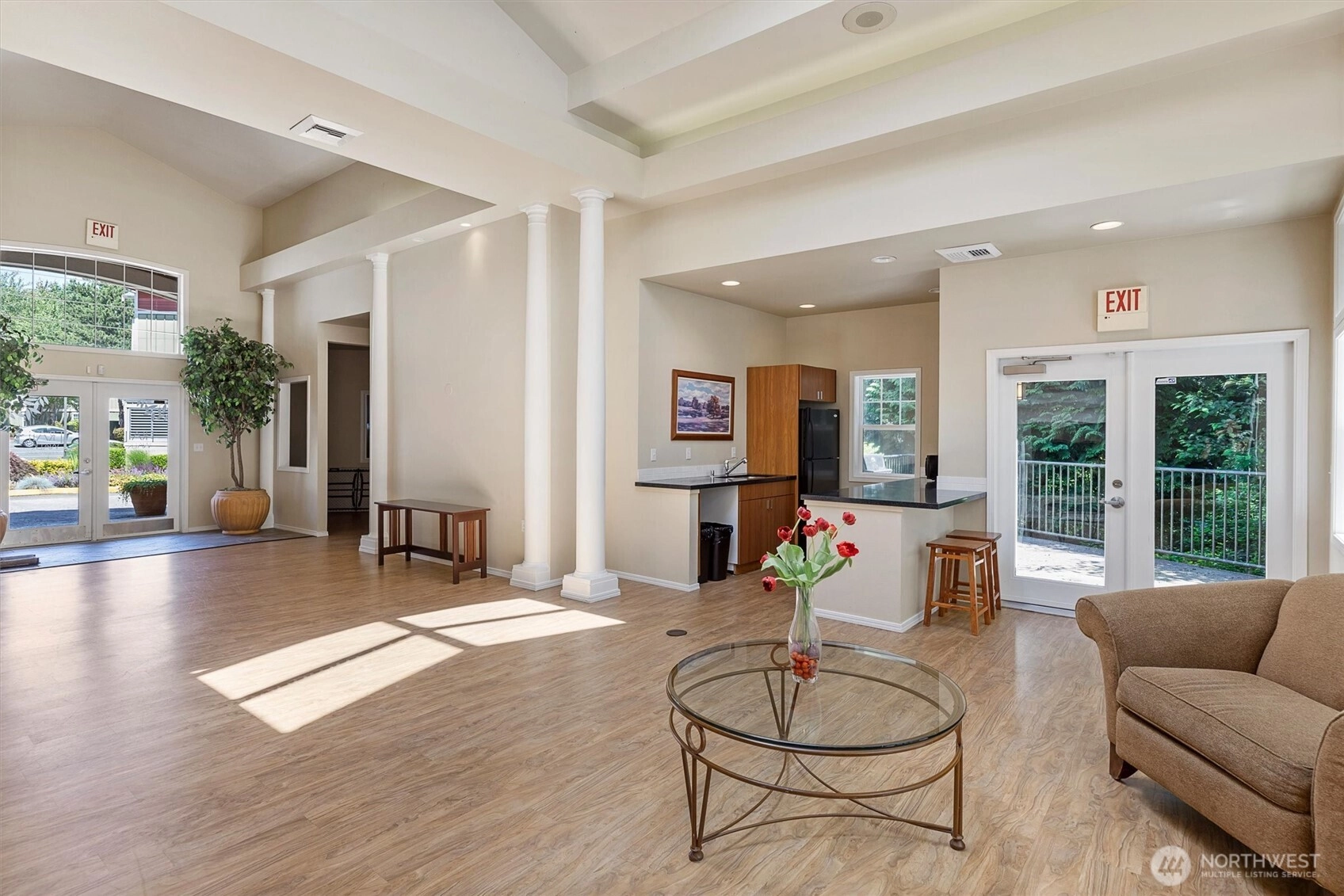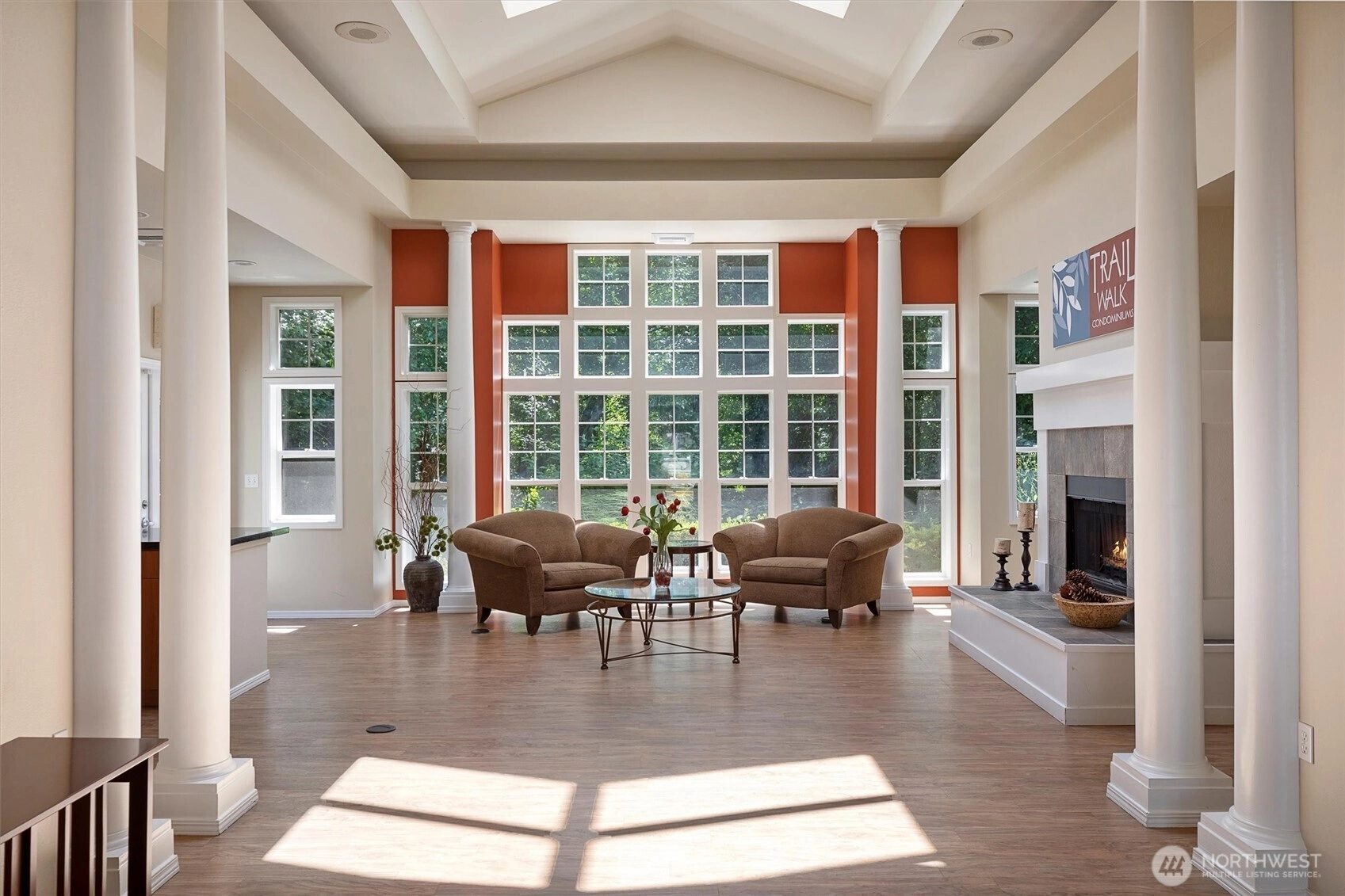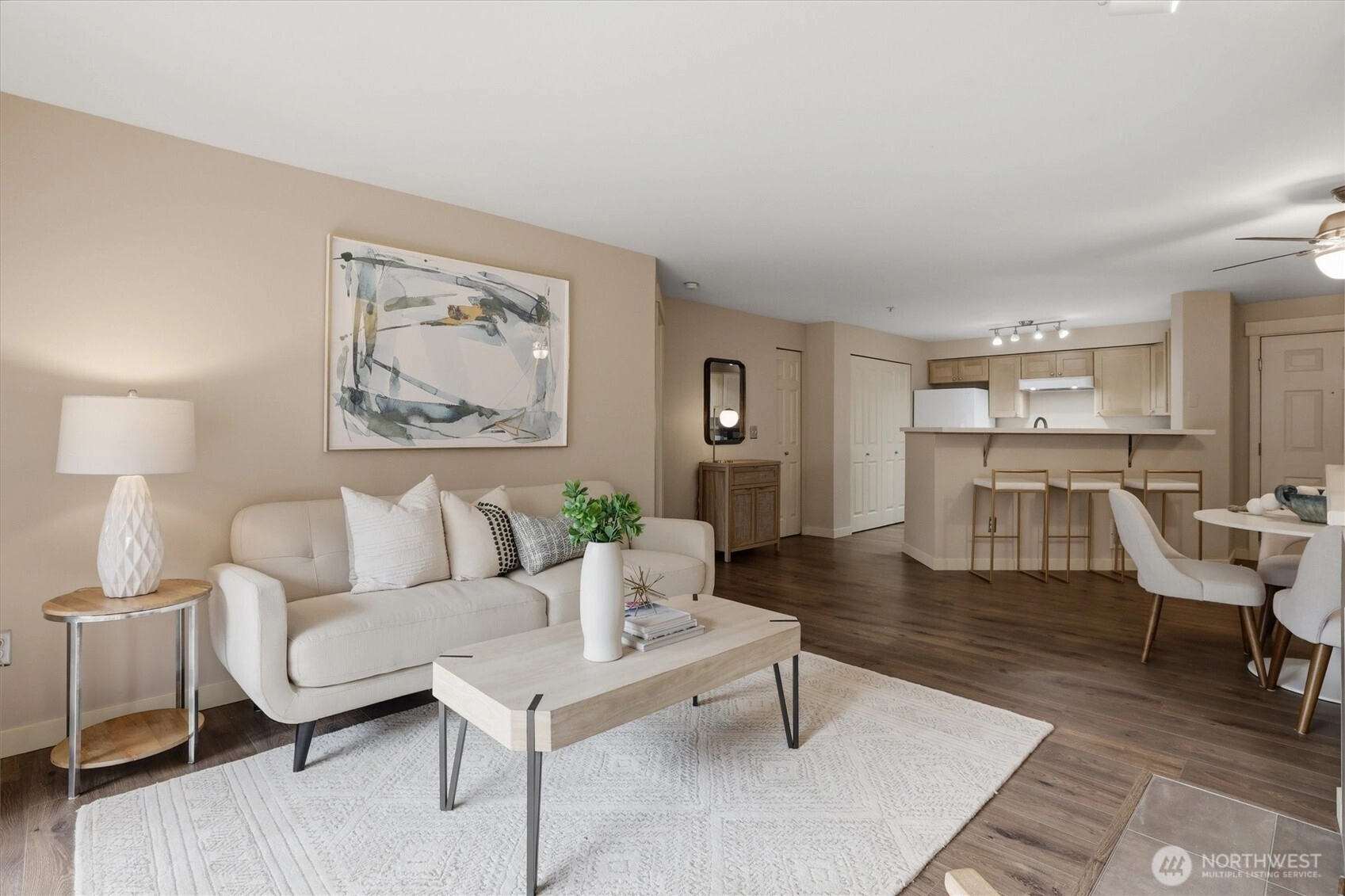 Your gateway to an active lifestyle starts with this comfortable 2 bedroom, 2 bathroom home. Rare and desirable no-step entry and interior. Open floor plan with kitchen, dining and living room at the heart. Primary bedroom suite includes generous ensuite with walk-in shower, two closets and patio access. Secondary bedroom with walk-in closet and adjacent full bath. The home has been updated with newer shaker cabinets, quartz countertops, and newer white appliances. Luxury vinyl floors throughout make cleaning a breeze. Full size laundry machines conveniently located inside the condo. Wood-burning fireplace and ceiling fan keeps it cozy or cool. Large storage closet off of patio. Rock solid HOA with impressive reserves and onsite maintenance. Private, secured, covered parking spot in garage. Community features pool, spa, fitness, garden space and clubhouse. Two pets per unit. Rental cap not met. Enjoy the nearby Kenmore paddle park on Lake WA and tons of trails. Quick to Burke-Gilman, breweries, cafes and shops. Easy commute to UW Bothel and beyond with nearby park n' ride.