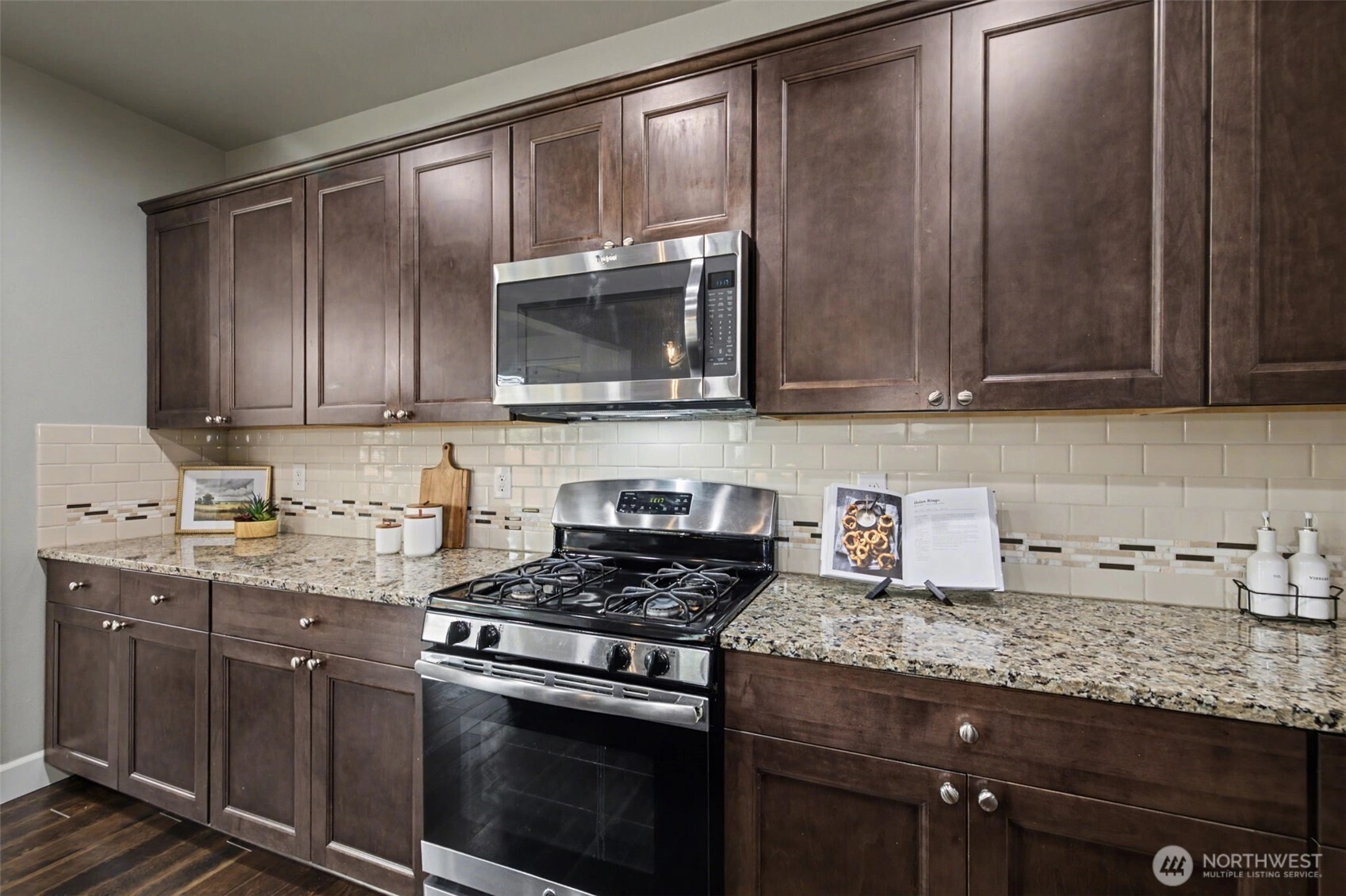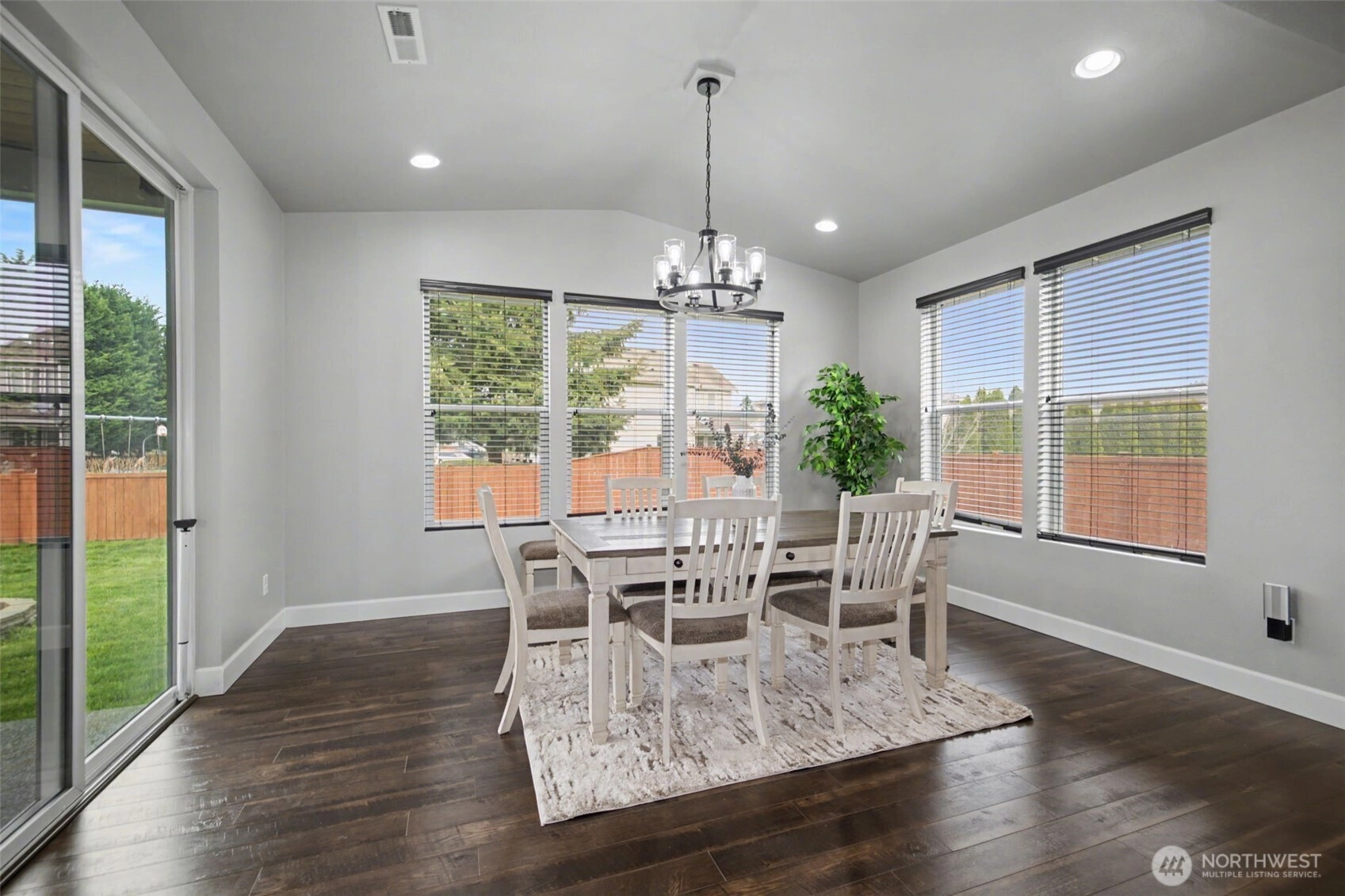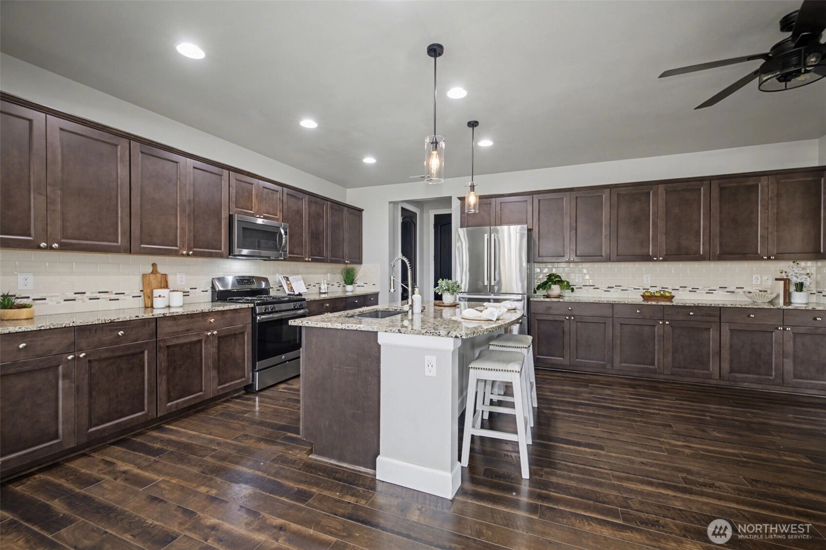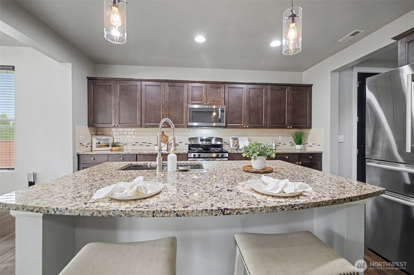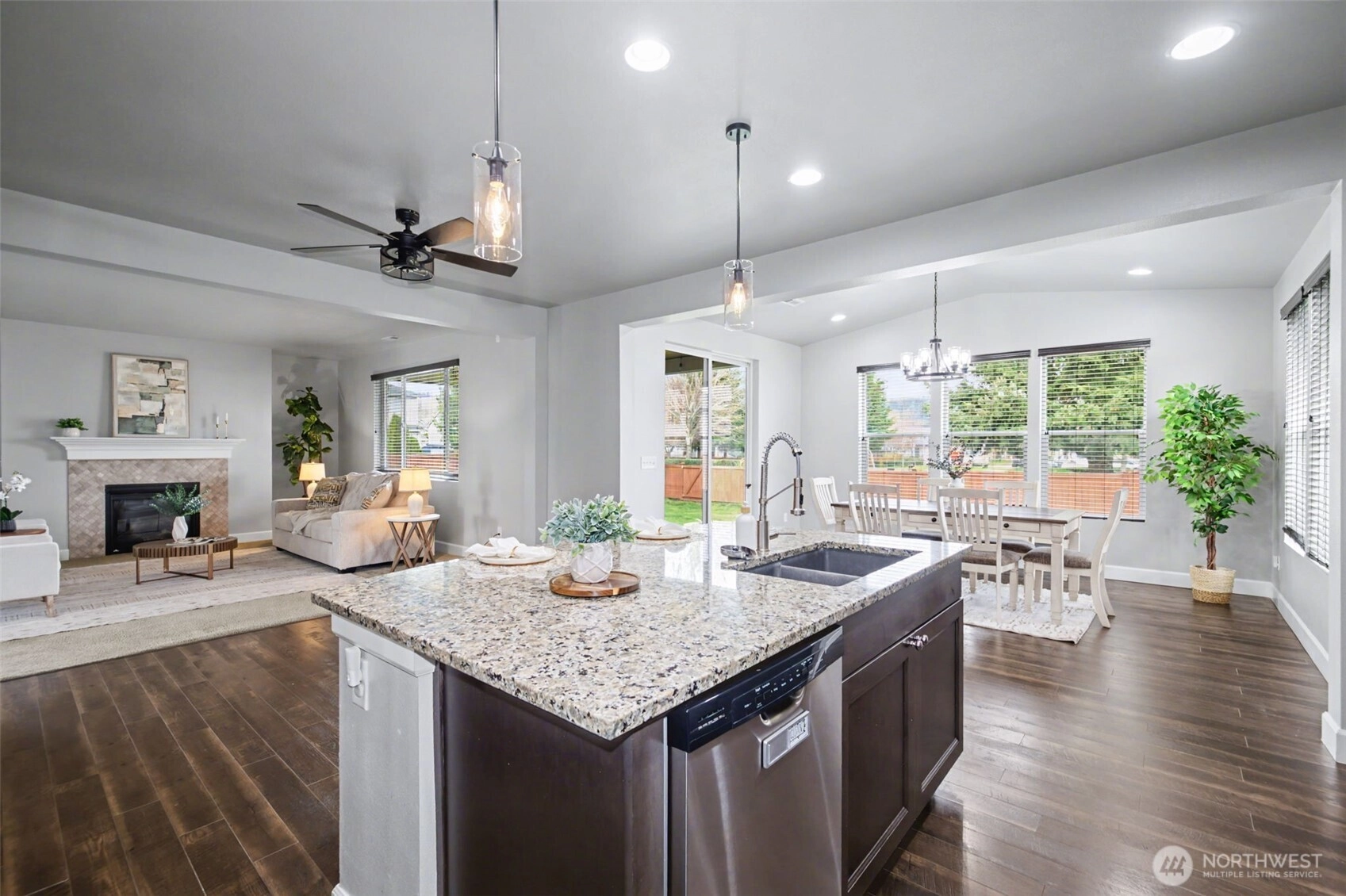 Welcome to this beautifully maintained Richmond American resale in a fantastic Orting location, offering the perfect blend of space, comfort, and flexibility. The open-concept layout is ideal for everyday living and entertaining, centered around a Stunning Kitchen with extra cabinetry, granite countertops, SS appliances, a large island, and walk-in pantry—all flowing seamlessly into the spacious Living room and bright Dining area filled with tons of natural light. The main floor also features a private office, perfect for working from home. Upstairs you’ll find a versatile loft, convenient laundry room, and a spacious primary suite with an oversized walk-in closet and relaxing 5-piece bath, plus three additional bedrooms. Enjoy laminate hardwood flooring, updated LED lighting, a 30-amp garage plug, and RV hookup for extra convenience. Step outside to the oversized covered patio—perfect for year-round entertaining—with a private gate leading directly to the neighborhood park with open grassy fields and basketball courts. Extra side parking and dedicated RV space make this home even more practical and hard to find. A truly exceptional home that combines space, light, and lifestyle—Welcome Home.