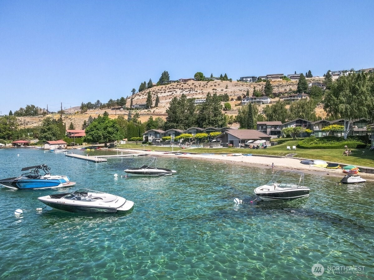 Don’t miss this charming lake-view studio in the highly desirable Spader Bay community. Experience the perfect blend of convenience and relaxation—where you can enjoy lake living without the hassle of exterior maintenance. Tucked away for a more private, intimate feel, yet just steps from the water, this location truly offers the best of both worlds. The kitchen is thoughtfully equipped with a cooktop, dishwasher, microwave, and refrigerator, making it both functional and efficient. The spacious living area offers flexibility to create an additional sleeping space alongside the built-in Murphy bed, maximizing comfort and usability. Unwind on your private deck as you take in the peaceful surroundings and watch the sun shimmer across the lake. When it’s time for fun, the sandy private beach is just outside your door. Community amenities elevate the experience even further, featuring a swimming pool, hot tubs, sport courts, playgrounds, laundry facilities, boat dock and buoys, as well as convenient boat trailer parking. Enjoy scenic public walking trails that lead you into town, all just a short stroll away. Short-term rentals are permitted, and the presence of an on-site manager and security provides added peace of mind—making this an ideal getaway, or investment.
