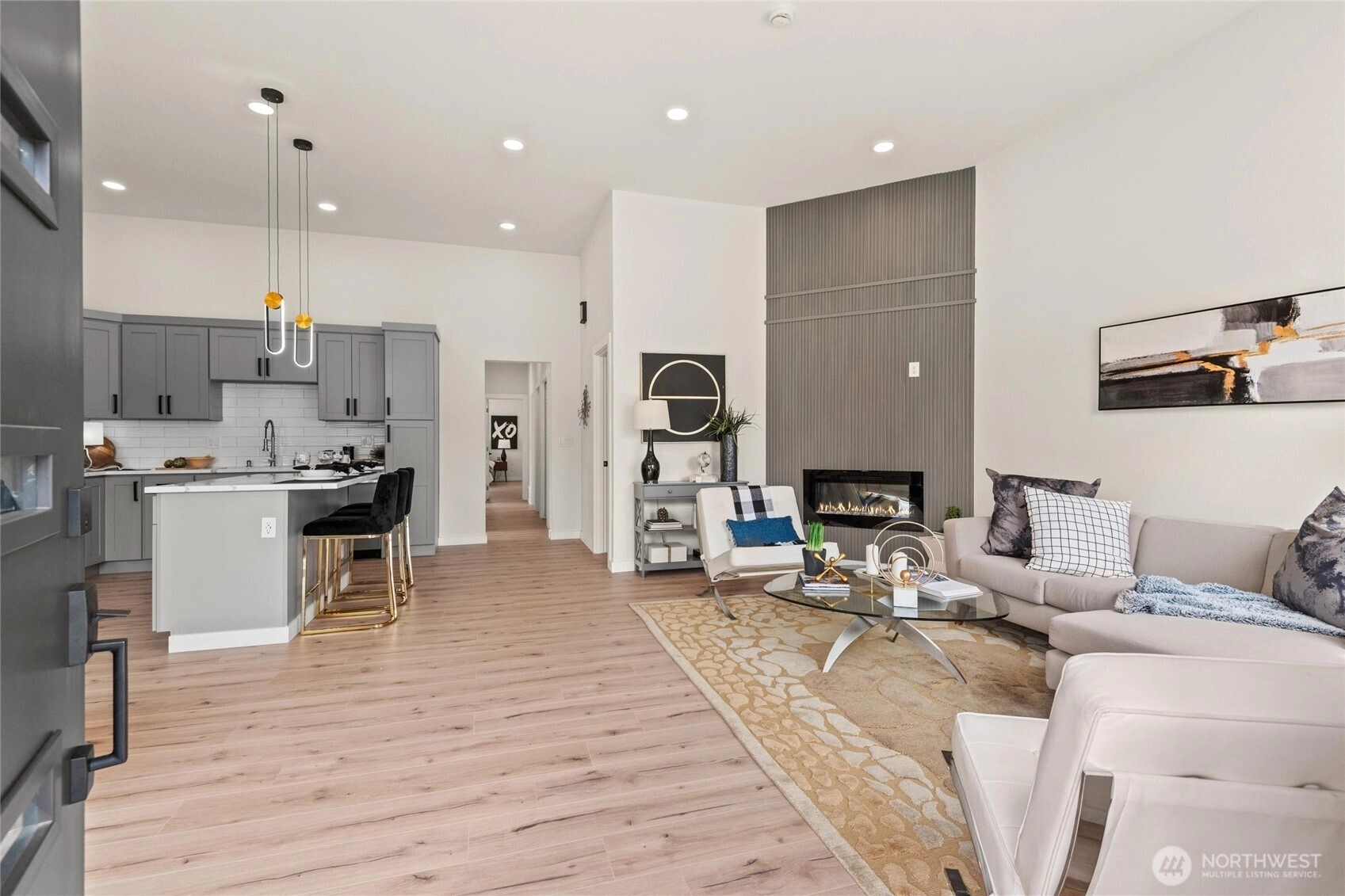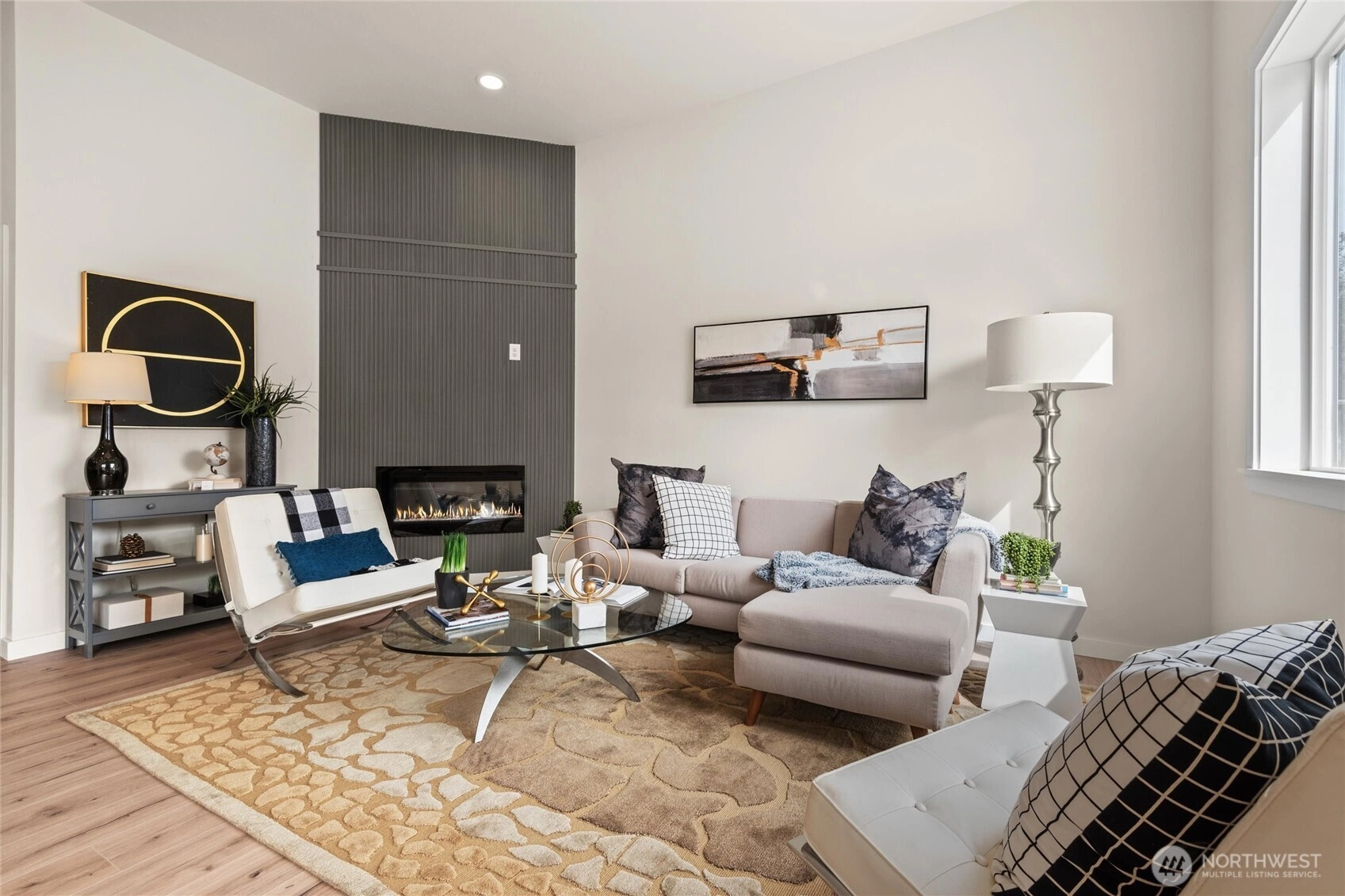 IMAGINE! Turnkey Perfection! Discover Modern-inspired with style and comfort. Newly constructed, effectively built in Nov/2024, nestled in the University Place, renowned for its award-winning schools and Chamber Creek GCC. Seamlessly blends a bright, most popular ONE-level floor plan and soaring 12-foot ceilings throughout. Step inside to a wide-open floor plan promote an easy-living lifestyle. You'll find warm, neutral-colored wood flooring throughout, a comfortable living area perfect for unwinding after a long day, large windows that let natural light fill the space, and a cozy gas fireplace to relax. Sunlight-drenched Chef 's-inspired kitchen with quartz countertops and a prep-island for your convenience. Enjoy your morning coffee in the cozy dining area. All this will lead you to a luxurious primary suite. The additional three bedrooms, plus a flex room, complete with balance and flexibility. Step outside to your private new deck for end-of-day relaxation in the serene surroundings. A western-facing backyard is perfect for a culinary garden and for play. Experience the perfect blend of comfort and atmosphere that makes this residence truly Exceptional Value. Call today to see and imagine it!