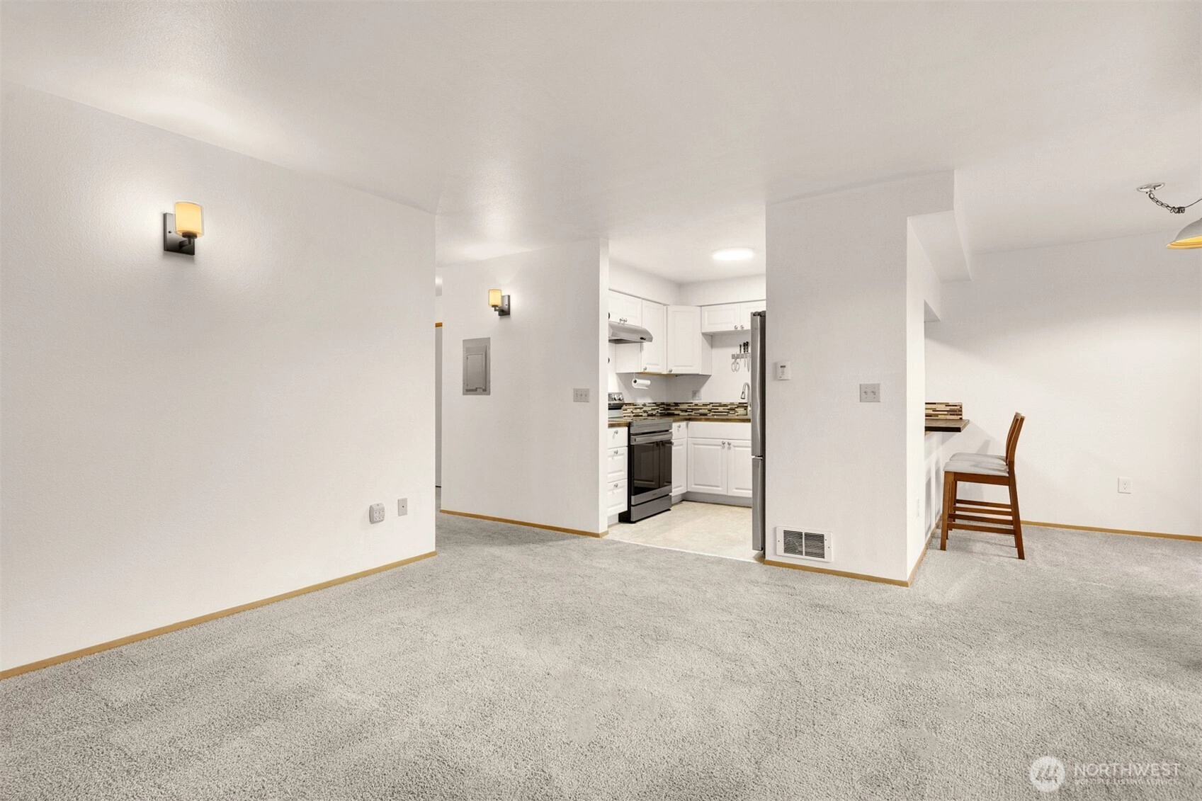 Rare ground-floor condo (no stairs) in desirable Kenmore, located in the Northshore School District! This 857 square foot unit features fresh interior paint and an updated modern kitchen with breakfast bar. Thoughtfully designed with accessibility in mind, including a spacious renovated bathroom with dual shower heads. Enjoy in-unit W/D, generous closet space, and oversized deck with additional storage. Dedicated wide parking space in front of the unit for easy access. Community amenities include onsite gym, bike storage, plenty of guest parking, and pet-friendly living. HOA dues cover garbage, sewer, and water. Situated in a prime central location backing to a serene greenbelt, this home offers close proximity to shopping, dining, golfing, the Kenmore Library, Park & Ride, I-405, Hwy 522, Lake Washington, and the Burke-Gilman Trail, with abundant nearby outdoor recreation. Pre-Inspected, No rental cap & FHA approved!
