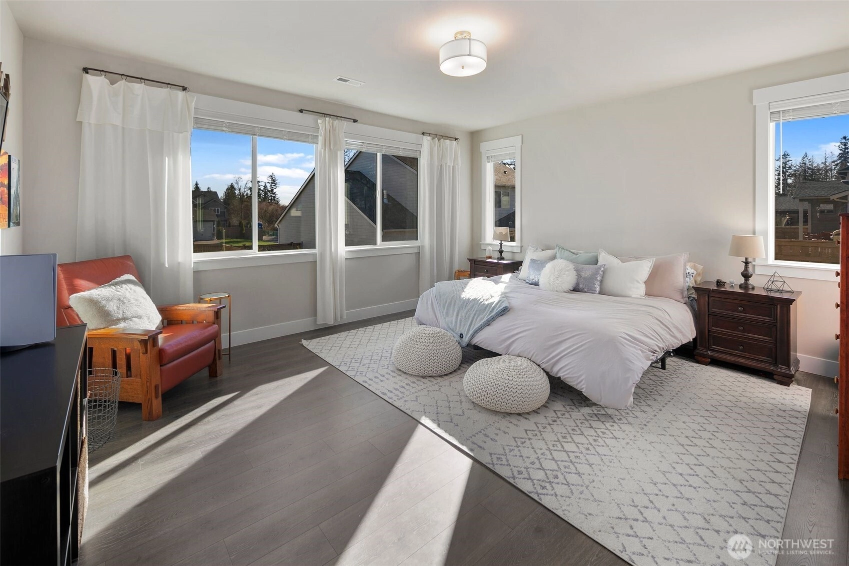 Well-maintained Ainsworth floorplan in Chinook Meadows offering 2,571 sq ft of primarily single-level living. Open-concept design with vaulted ceilings, engineered hardwood flooring, and a spacious great room centered around a gas fireplace. Kitchen features quartz countertops, shaker-style soft-close cabinetry, full-height tile backsplash, stainless steel appliances, and 5-burner gas range. Primary suite includes walk-in closet and ensuite bath. Additional bedrooms plus upper-level bonus space ideal for office, media, or guest use. Situated on an 8,000 sq ft lot with fully fenced yard, covered patio, and irrigation system. 3-car attached garage with EV charging capability plus dedicated RV and boat parking. Equipped with central A/C, HEPA air filtration, tankless water heater, and wired for generator. Located in Chinook Meadows with HOA-managed common areas. 0.2 mi to Chinook Elementary, 2.5 mi to downtown Buckley, and convenient access to Hwy 410.