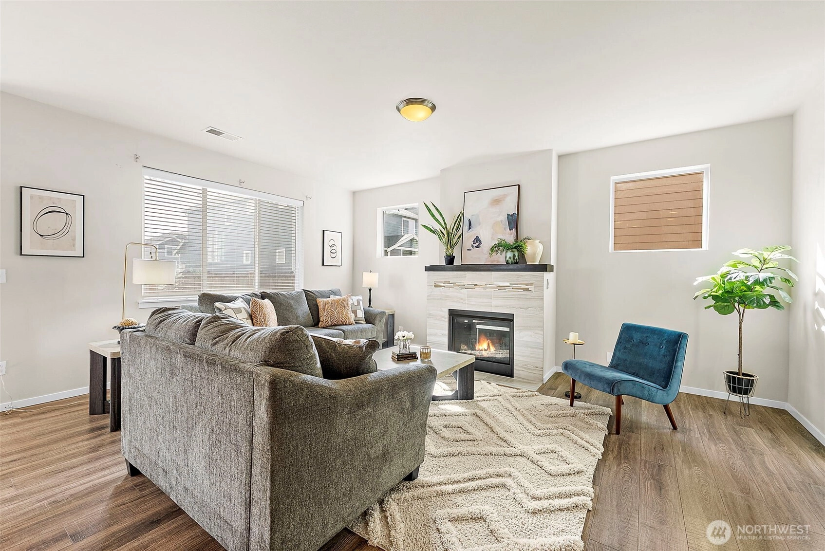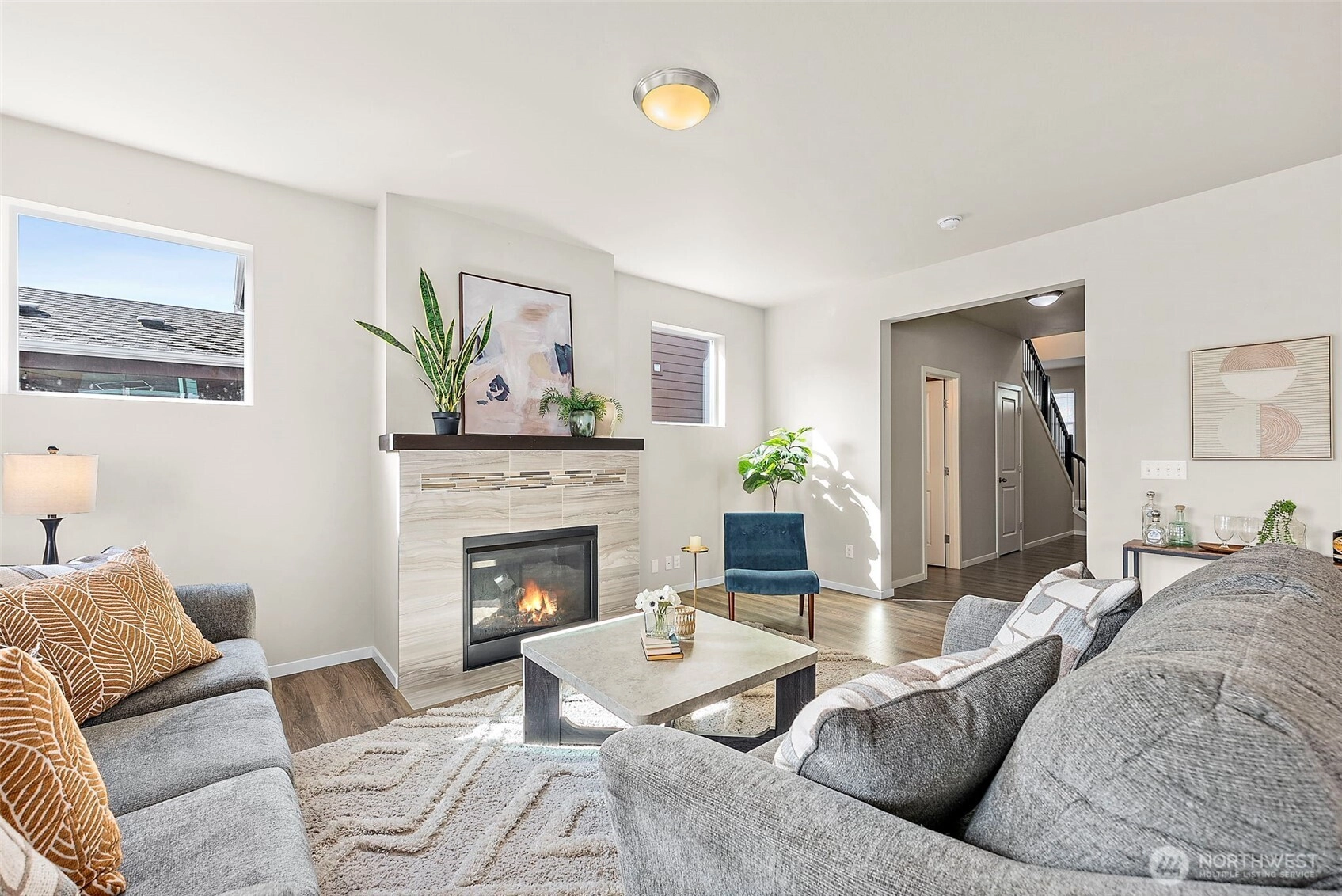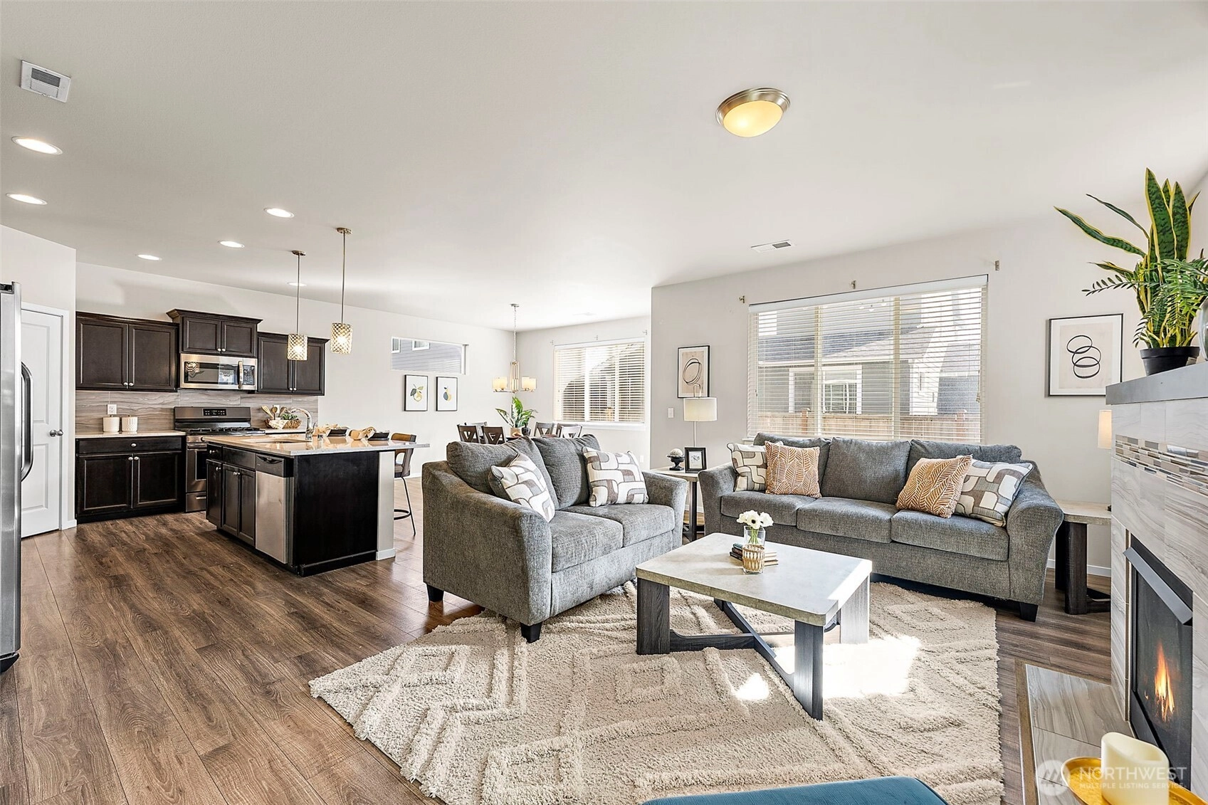 Welcome Home to this beautiful 3-bedroom + upstairs bonus space, 2.5 bath home located in the small Mountainside neighborhood. Seller is offering $3500 toward interest rate buy down! Instantly inviting with beautiful landscaping and a covered front porch for full curb appeal. Three car garage, large open kitchen and living space with walk in pantry plus loads of storage space will make you want to call it your own. Gorgeous wood mantel over fireplace makes this home warm and inviting. Enjoy the fully fenced backyard, perfect for entertaining or outdoor living. Unwind in your expansive primary bedroom, complete with an oversized walk-in closet & 5-piece en-suite bath. Upstairs laundry, two additional bedrooms and a generous loft provide flexibility for a home office or second living area. AC to keep you nice and cool on warmer days. Close to shopping, dining, parks, schools & JBLM. This home is 100% ready for you.