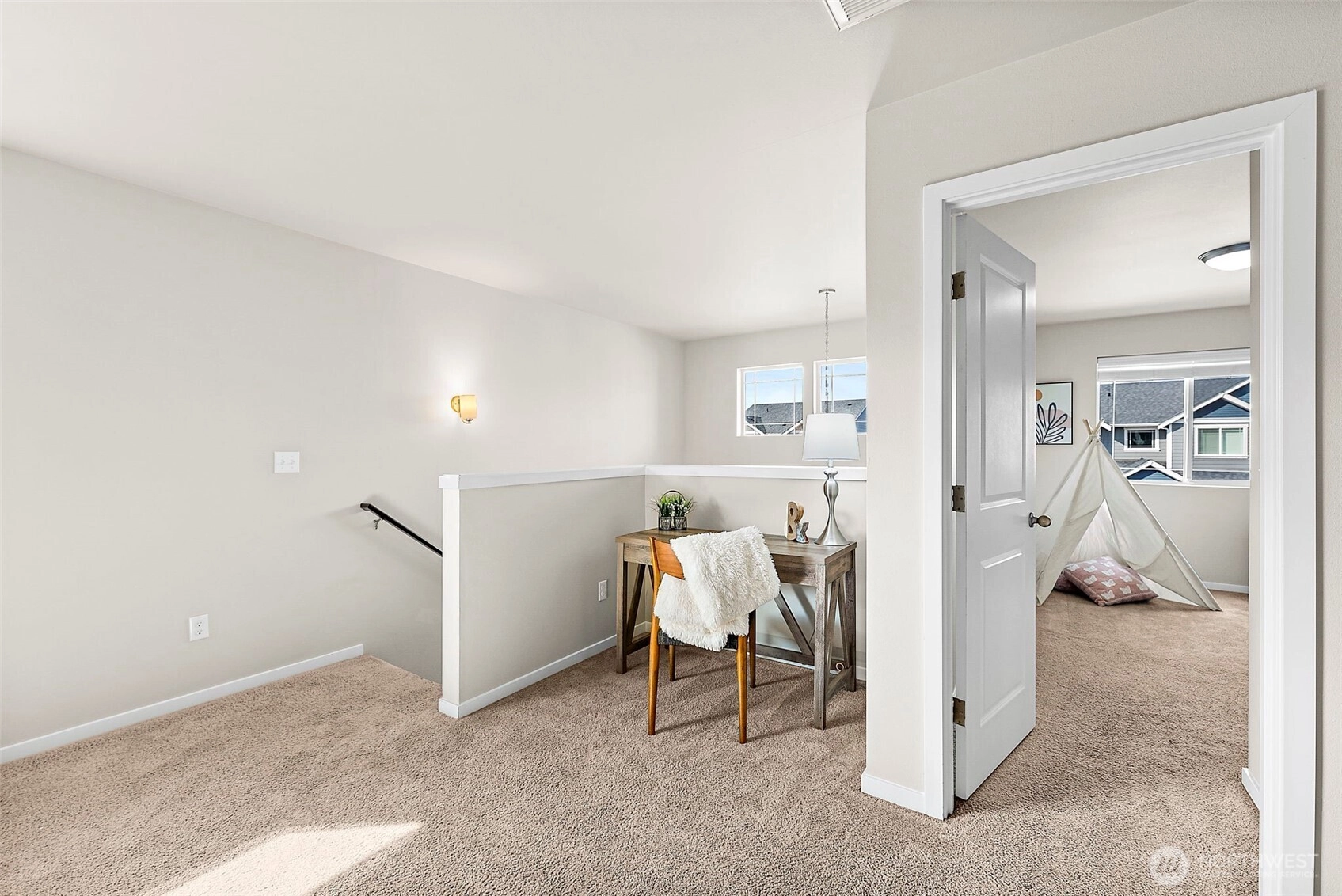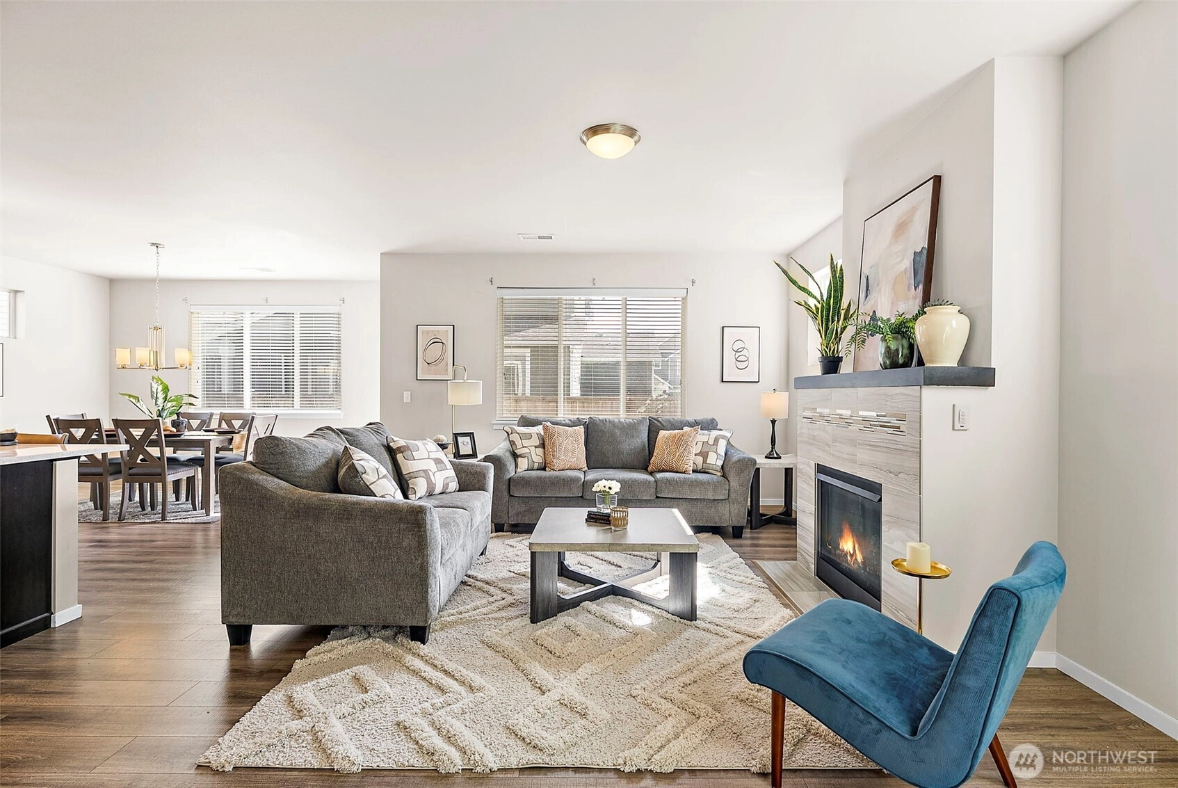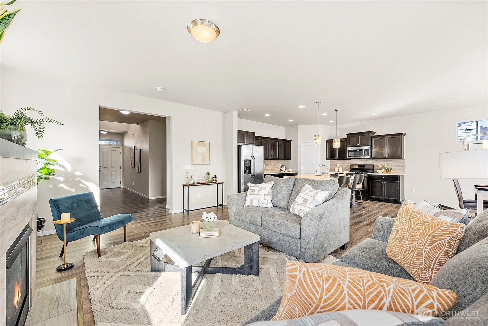 Welcome Home to this beautiful 3-bedroom + upstairs bonus space, 2.5 bath home located in the small Mountainside neighborhood. Seller is offering $3500 toward interest rate buy down! Instantly inviting with beautiful landscaping and a covered front porch for full curb appeal. Three car garage, large open kitchen and living space with walk in pantry plus loads of storage space will make you want to call it your own. Gorgeous wood mantel over fireplace makes this home warm and inviting. Enjoy the fully fenced backyard, perfect for entertaining or outdoor living. Unwind in your expansive primary bedroom, complete with an oversized walk-in closet & 5-piece en-suite bath. Upstairs laundry, two additional bedrooms and a generous loft provide flexibility for a home office or second living area. AC to keep you nice and cool on warmer days. Close to shopping, dining, parks, schools & JBLM. This home is 100% ready for you.