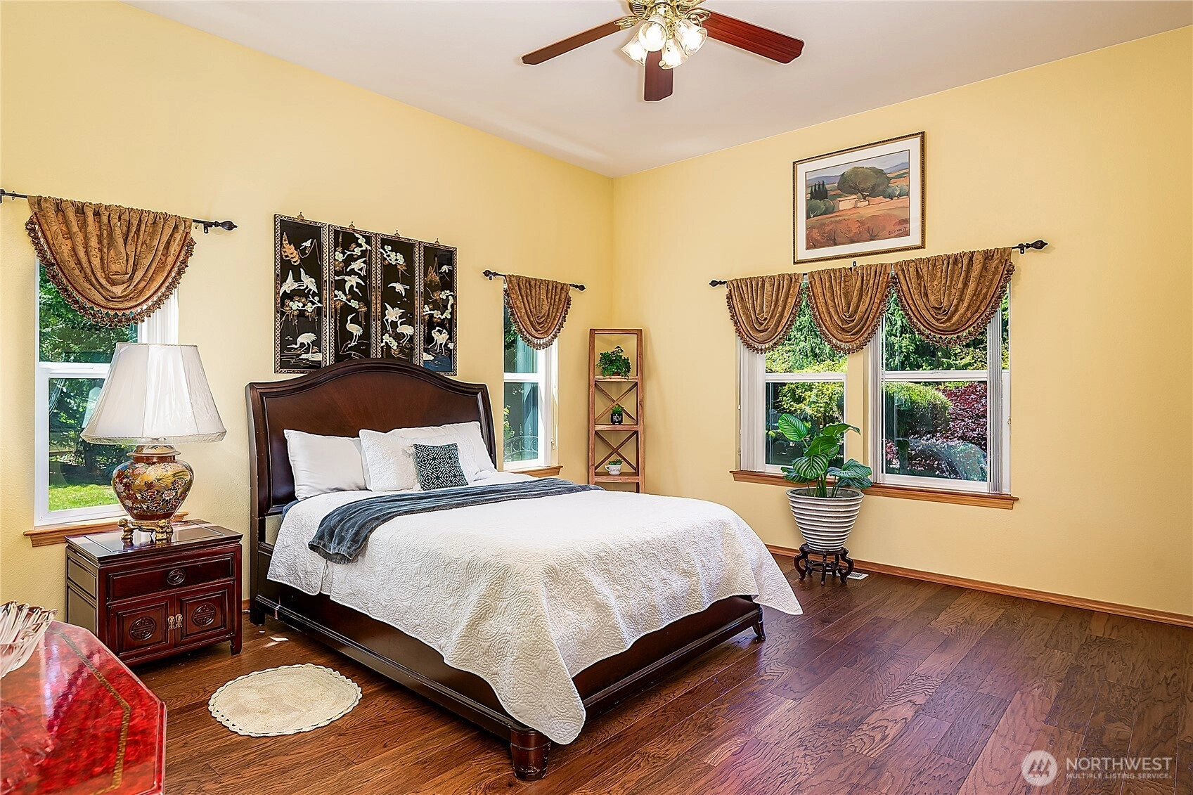 Discover the finest in Pacific Northwest living at the end of a peaceful cul de sac opening to a private retreat across nearly two and a half acres. This fully updated estate offers a sophisticated blend of luxury and flexibility featuring a refined main residence and a detached guesthouse. The interior is designed with care featuring crisp paint, rich wood and custom tile flooring plus granite countertops throughout the thoughtful layout. For the hobbyist or professional a finished and heated studio provides a versatile escape for a home gym art studio or quiet executive office. Beyond the main house the guesthouse stands as a turnkey opportunity for multigenerational living or a high end rental featuring its own secluded yard private patios independent air conditioning and a new septic system. The grounds are a nature lover's paradise filled with mature fruit trees and garden paths that wind through the lush landscape. Entertainers will delight in the magnificent backyard which features a custom tiled fire pit and a picturesque gazebo offering the perfect backdrop for summer gatherings or evenings under the stars. Positioned just minutes from downtown Silverdale major military bases and ferries this property offers a secluded forest haven with unmatched access to local amenities. This is a rare chance to own a versatile park like compound that captures the timeless spirit of the Sound and provides the space you need to grow and thrive in a truly beautiful and unique setting