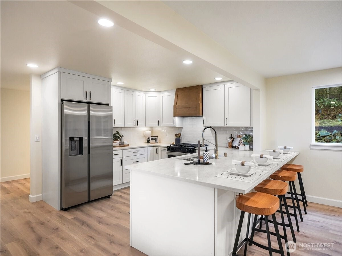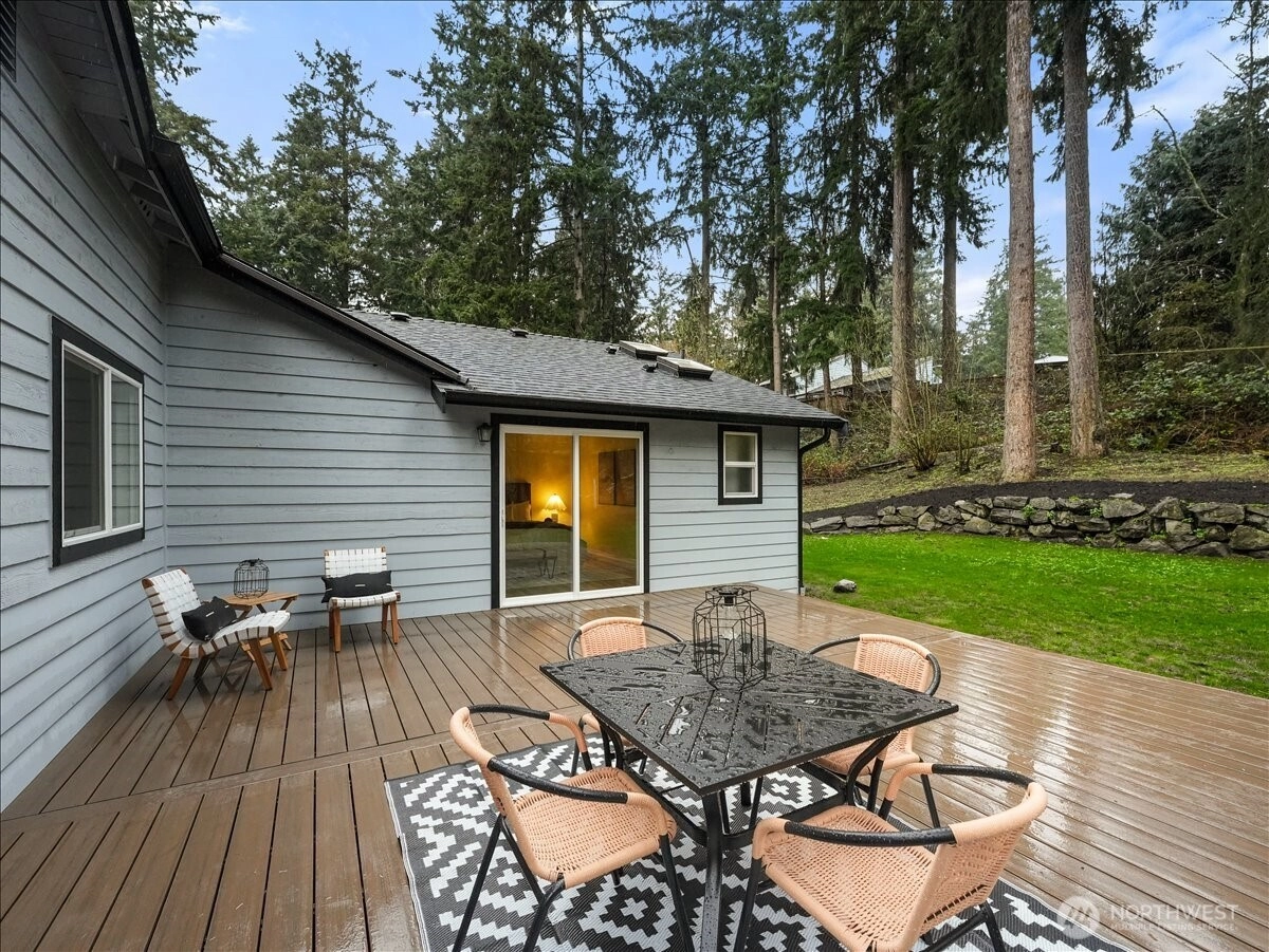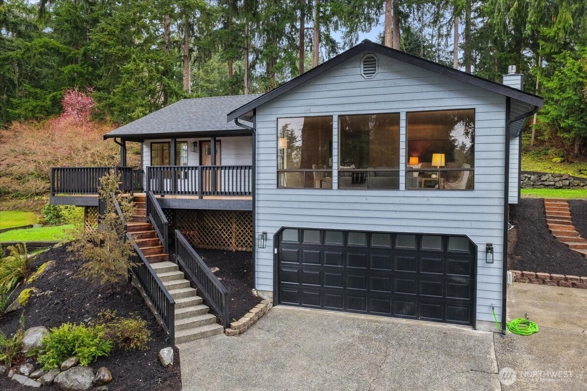 Stunning fully reimagined Mukilteo home on an expansive 16,553 sq ft lot in one of the area’s most sought-after communities. This 3 bed, 2 bath, 1,730 sq ft residence offers a light-filled, functional layout with modern design and high-end finishes throughout. The beautifully updated kitchen features premium appliances, custom cabinetry, quality finishes, and a gorgeous coffee bar, flowing seamlessly into a huge living room off the front of the home with abundant natural light and territorial views. Gas fireplace anchors the dining or bonus living room with a striking feature wall. Enjoy decks off both the front and back, creating space to entertain inside and outside, with a dedicated office and a spacious primary bedroom with ensuite. This home has been extensively upgraded with a new roof, new high efficiency furnace, commercial-grade tankless water heater, new electrical panel, new garage door, new kitchen, new insulation throughout, new composite deck in back, LVP flooring throughout, tiled shower, dedicated laundry room, all new doors, trim, hardware and lighting. With fresh paint on the interior and exterior this truly brand new throughout. Plenty of parking including space for RV or toys, with room to enjoy your yard and outdoors peacefully. Located near top-rated schools, parks, beaches, and convenient commuter routes, this home offers an exceptional combination of quality, comfort, and location, this home is fully turnkey, ready to move in and enjoy!