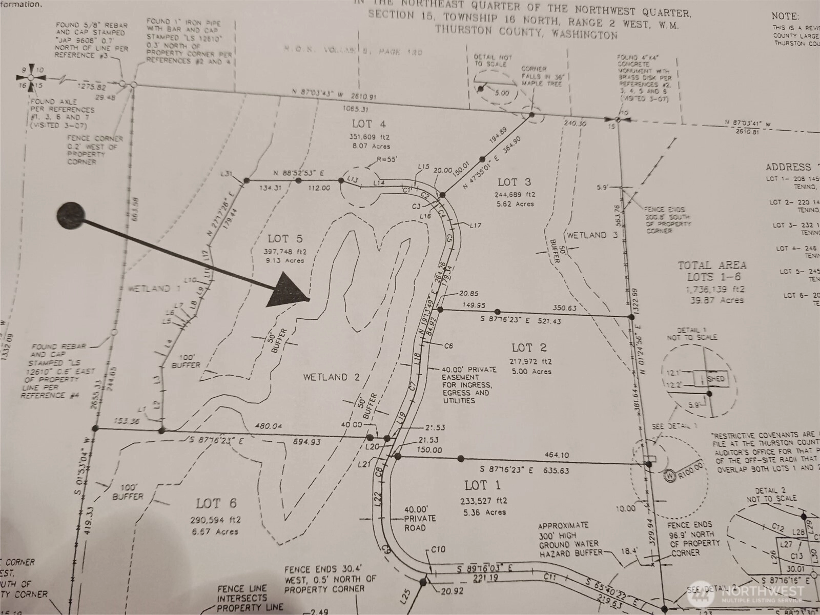***Property is mostly wetlands and wetland buffers cover the remainder of the property***This is a beautiful property that would need someone that has the time and energy to try and get a special use variance in order to build because of the wetlands and wetland buffers. No guarantees on getting it approved. Beautiful 9.13 acres at the end of a paved road. A small cleared area provides a beautiful parklike setting. Power is already available on the property, adding convenience and value. The majority of the parcel includes wetlands and buffer areas, creating a serene, wildlife-rich environment and added privacy. White outline on overhead maps do not depict property lines. Just shows approximately where the lot is from the overview. Ideal for buyers looking for a secluded retreat, nature escape, or long-term investment opportunity. Enjoy the quiet rural lifestyle while still being within reach of nearby amenities. Buyer to verify all building and land use possibilities with Thurston County.