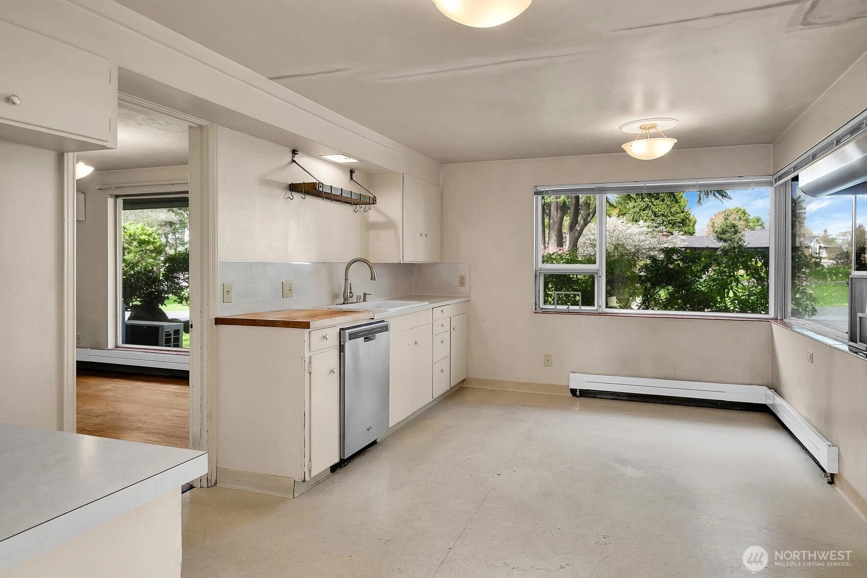 Excellent opportunity to customize or renovate this spacious residence in the Sand Point Country Club. Enter to a large living and dining room area with an adjacent wing that currently houses 2 large bedrooms and a full bathroom. An additional main level den/office and 3/4 bathroom can serve as a guest suite. The kitchen is centrally located and can open to the formal living & dining rooms, as well as to a great room that overlooks the private back yard and patio. The upper level features a lofted family room area with vaulted ceilings and a balcony overlooking the back yard. Also in the upper level is bonus room with vaulted ceilings (potential Primary Suite?), 2 bedrooms and a full bathroom. A partial basement offers a rec room space, as well as the boiler room where the radiant heating system is located. Private location across from one of the corner parks in the community. Bring your architect and contractor to unlock the potential and create a new vision for the future in one of NE Seattle's most coveted neighborhoods!