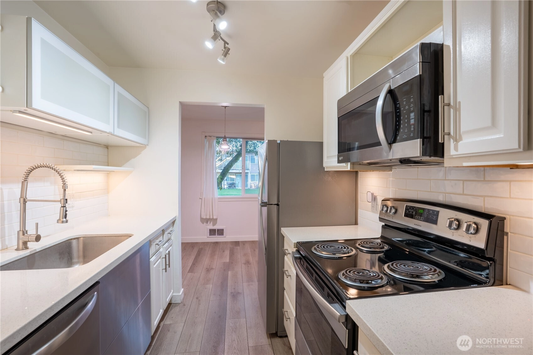 This ground-level Newport Hills condo offers comfortable, thoughtfully refreshed living in a highly desirable Bellevue location. The home features 1 bedroom and 1 bathroom, LVP flooring, and fresh new interior paint, creating a bright and inviting interior. A rare highlight is the in-unit washer and dryer, an uncommon convenience for homes of this era, along with extensive storage. Enjoy easy outdoor living with a covered patio, opening directly to a spacious, well-maintained grassy area, ideal for relaxing, entertaining, or enjoying everyday green space just outside your patio. Built with solid construction, and the recent update of the building with great maintenance over time, reflecting pride of ownership and long-term care. The community is supported by a well-managed HOA, known for its strong oversight and excellent maintenance of common areas, athletic courts, playground, dog area, and Plenty of guest parking, offering residents peace of mind and low-maintenance living. Located within a highly regarded Bellevue school district, the home enjoys easy access to shopping, dining, parks, and major commute routes, including I-405 and I-90. No Rental cap allows you to use with flexibility, as homeowners or investor.