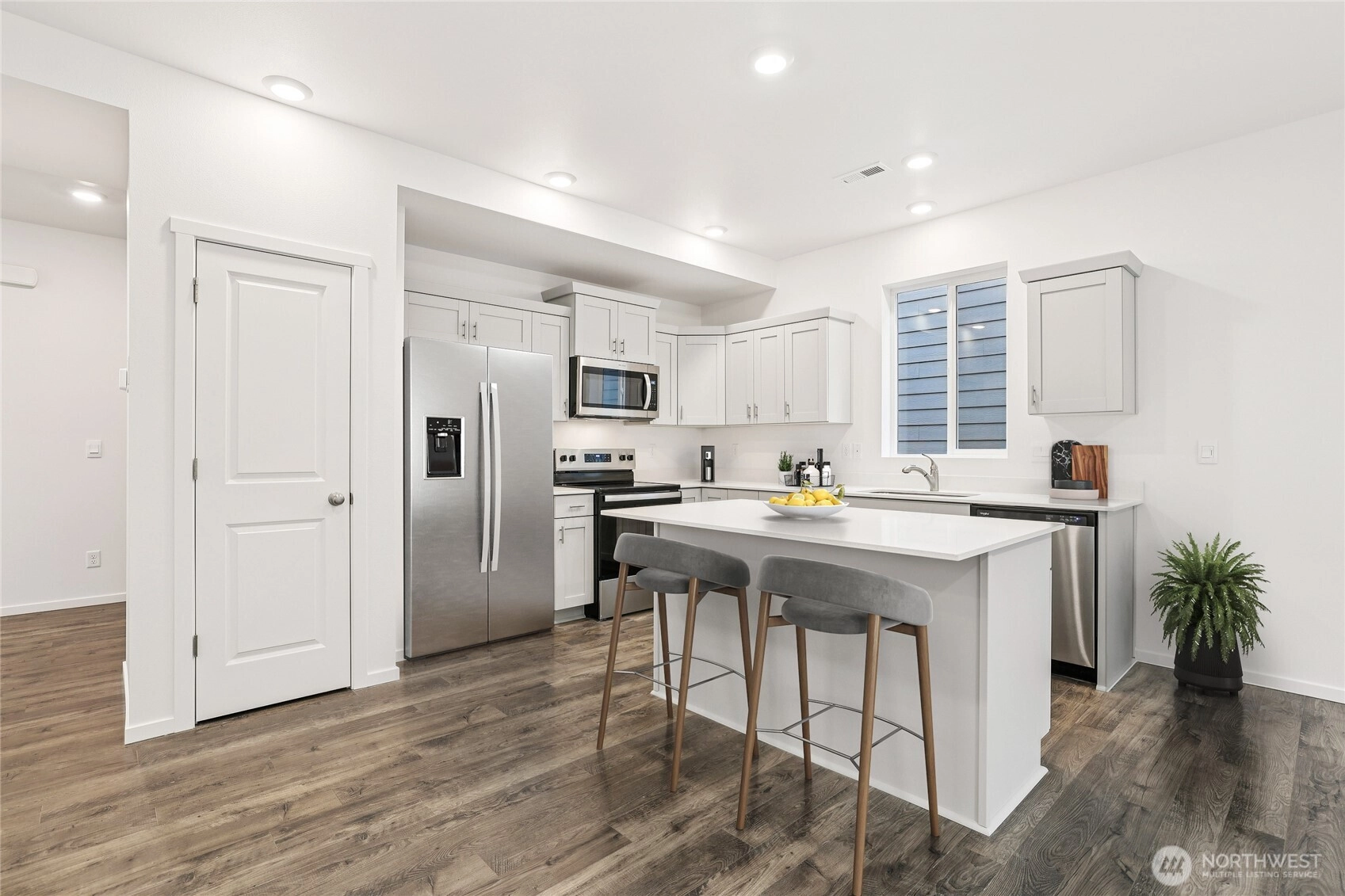 Welcome to the Lupine plan by D.R. Horton at Rainier Ridge in Puyallup! This thoughtfully designed home features an open-concept main floor with a spacious great room flowing into the dining area and kitchen complete with a large center island, generous counter space, pantry, and whirlpool appliances. A powder bath, coat closet, and under-stair storage add everyday practicality to the main level. Upstairs, find four bedrooms and a full bath conveniently accessible to all. The primary suite includes a private bath and large walk-in closet. Laundry is conveniently located on the upper level near all bedrooms. Smart Home technology and A/C come standard. Energy-efficient features include an electric heat pump, low-E windows, LED lighting throughout, and electric vehicle charger ready. 1-2-10 year home warranty included. Served by Bethel School District, Expedition Elementary, Frontier Middle, and Graham-Kapowsin High School. Conveniently located near South Hill Mall, Costco, and everyday shopping with easy access to Highway 512 and SR-167. Ask about our special interest rate plus $8,000 buyer bonus through our preferred lender for qualified buyers. Buyers must register their brokers on the first visit, including open houses!