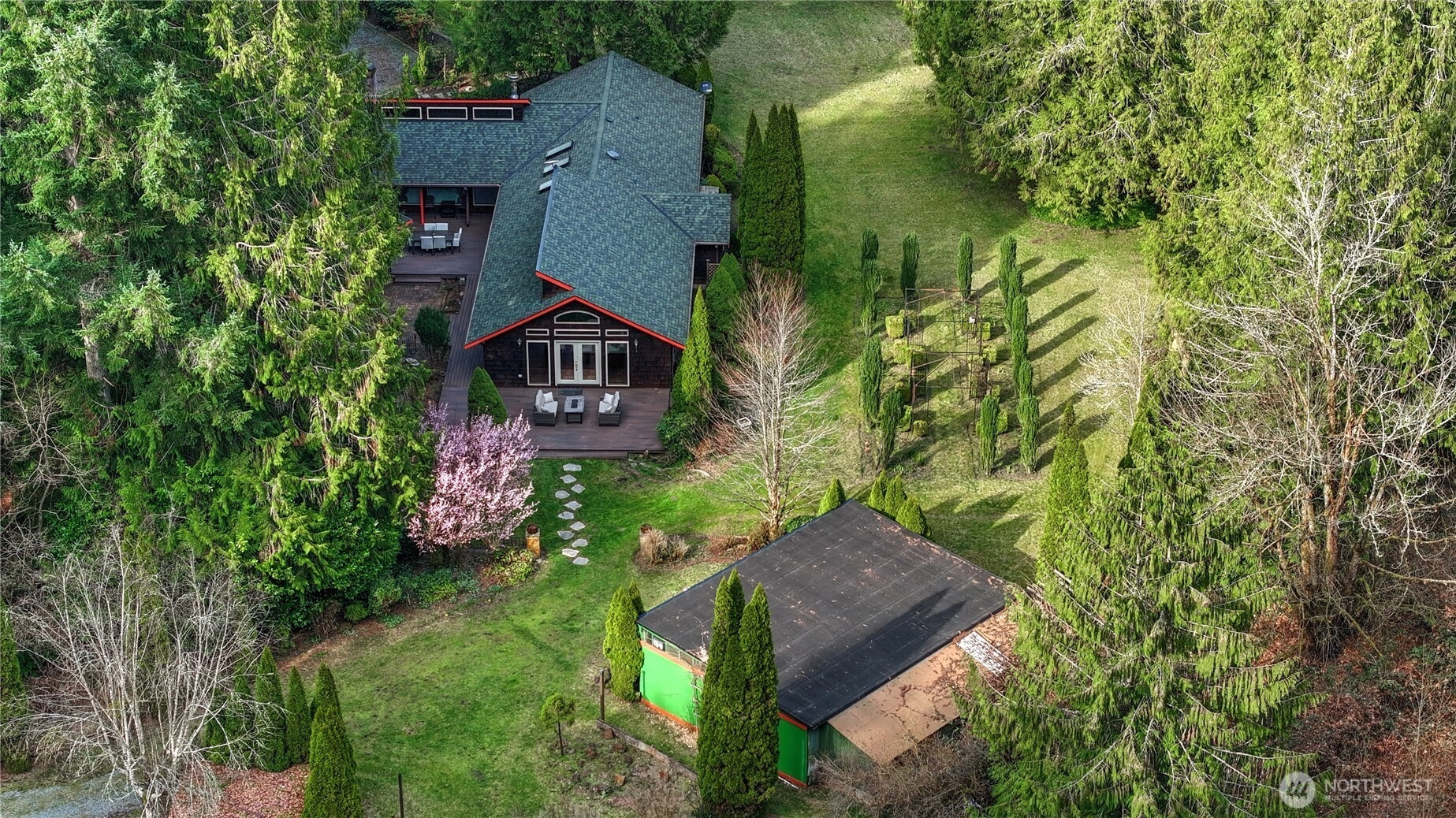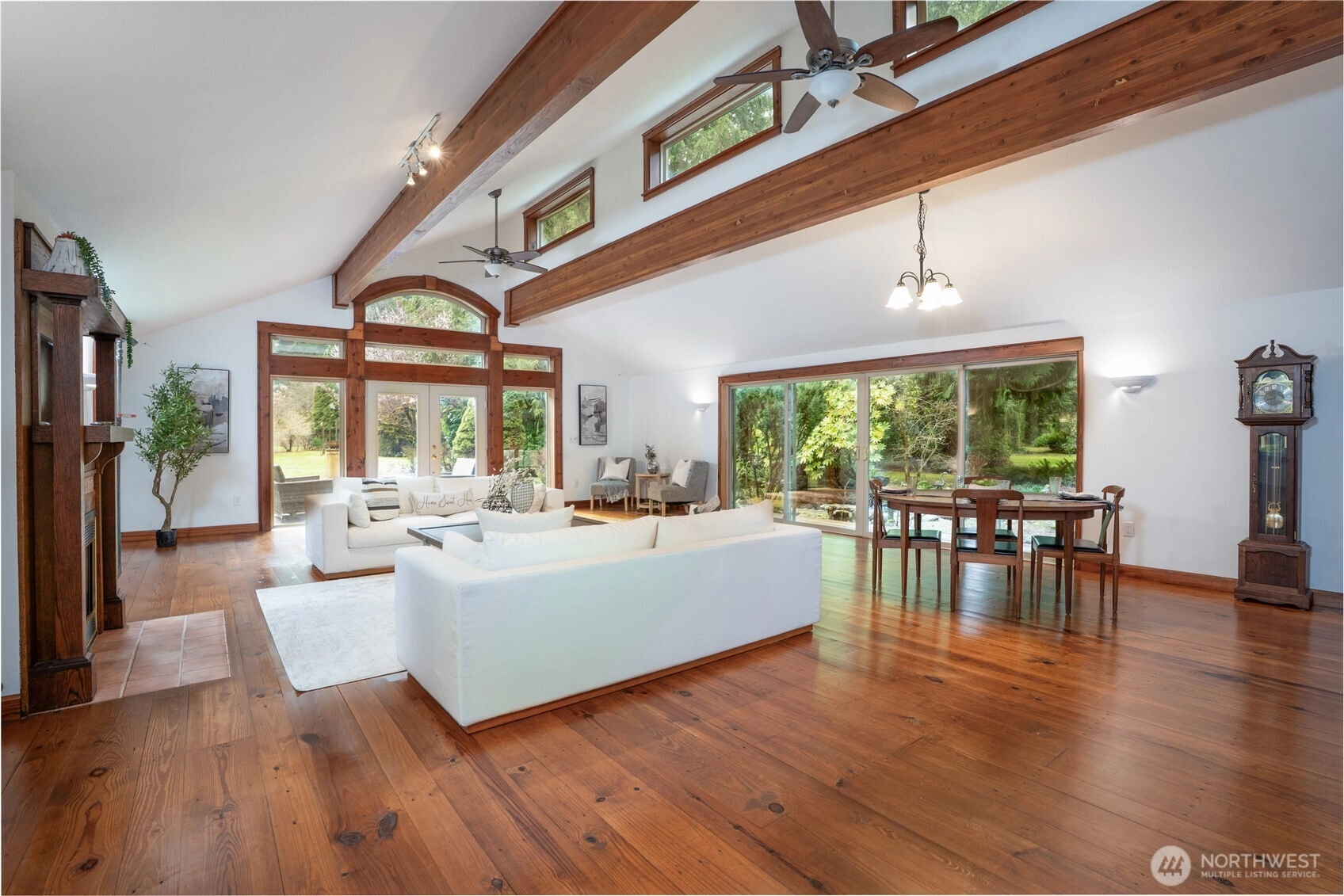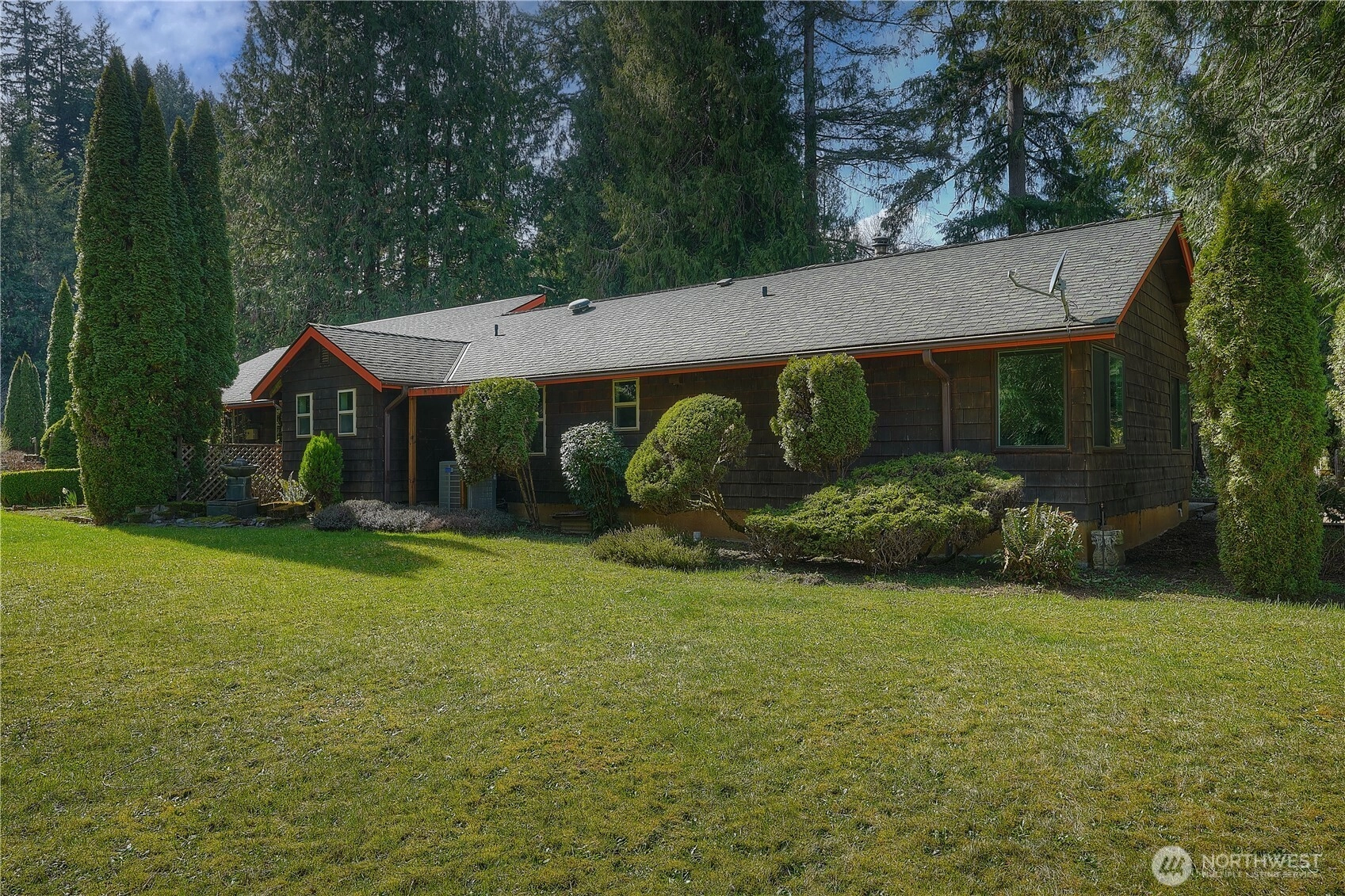 Welcome home to this stunning Northwest retreat offering main-level living, a large shop, and a private setting just minutes from downtown Orting. New wall-to-wall carpeting and updated appliances make this a truly turnkey home ready for its next owner. Inside, you’ll find an impressive 24x32 great room with soaring 15-foot open beam ceilings, abundant natural light, and one of three fireplaces, creating a warm and inviting space for both everyday living and entertaining. The custom kitchen with vaulted ceilings provides an ideal space for cooking and gathering, flowing seamlessly into the main living areas. Situated on a beautifully landscaped property with mature trees, fruit trees, garden space, and thoughtfully designed outdoor areas, this home captures the essence of Pacific Northwest living. Enjoy outdoor entertaining, summer barbecues, and peaceful privacy with multiple areas to relax and unwind. The grounds offer potential for hosting events or creating your own private venue-style setting. A large, detached shop adds versatility for storage or hobbies. Conveniently located near downtown Orting, parks, schools, and commuter routes, this property combines privacy, function, and lifestyle in one exceptional opportunity.